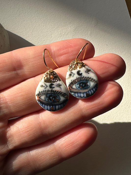 ‘The Protective Eye’ small Porcelain Earrings With Gold Detail