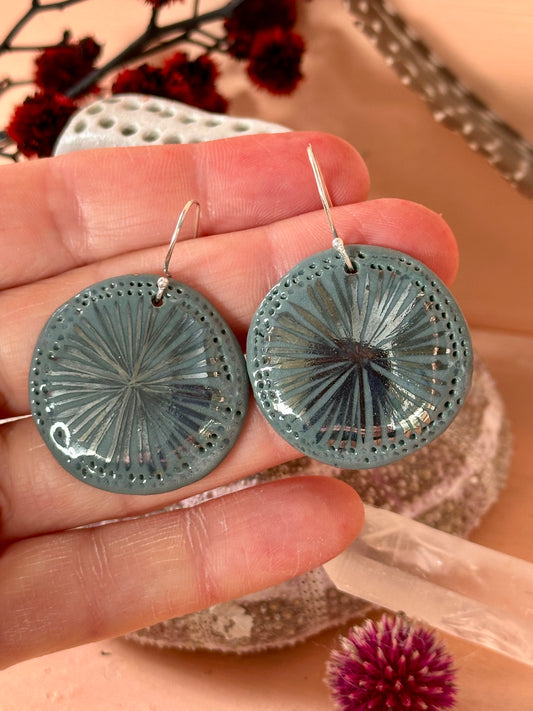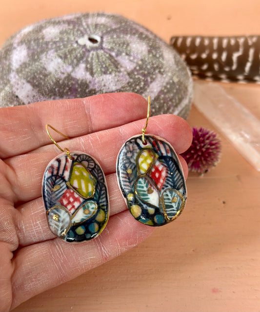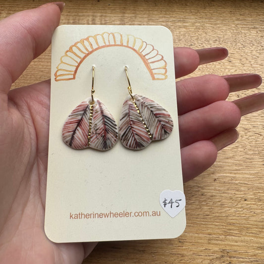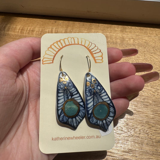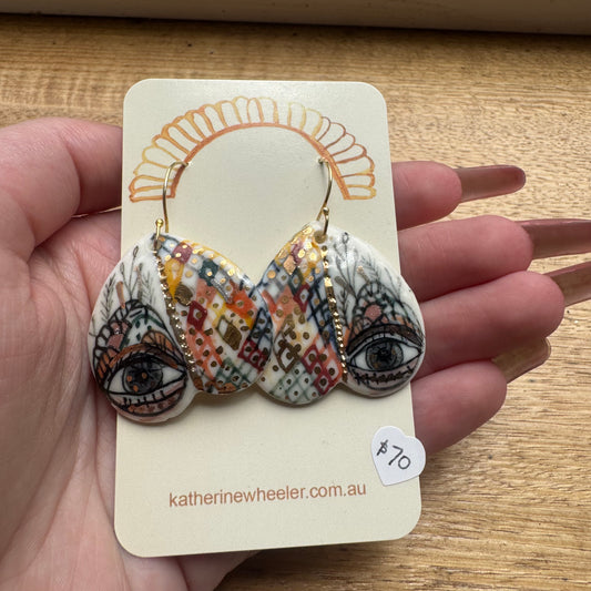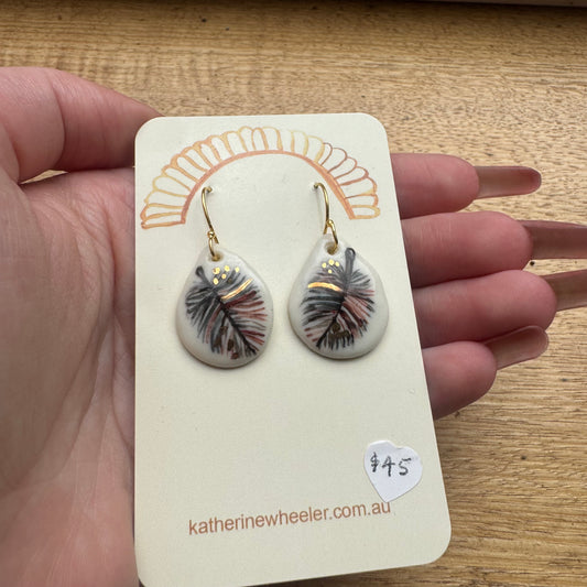 Hand crafted porcelain earrings, hand made by Katherine Wheeler. All earrings are unique artist designs, hand painted and hand textured individually in Katherine's Castlemaine studio.