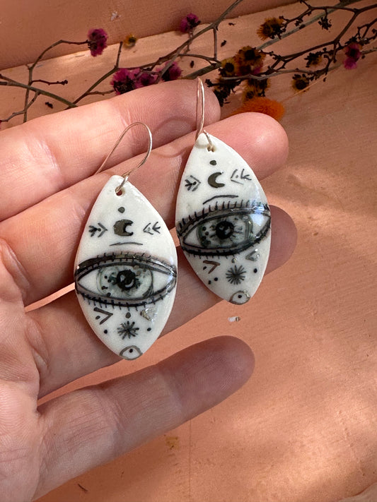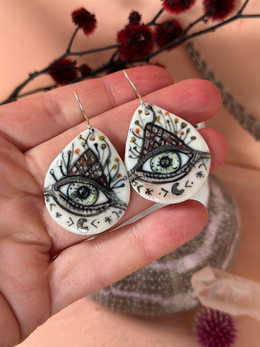 Hand Painted Porcelain ‘Wings’ Protective Eye Earrings