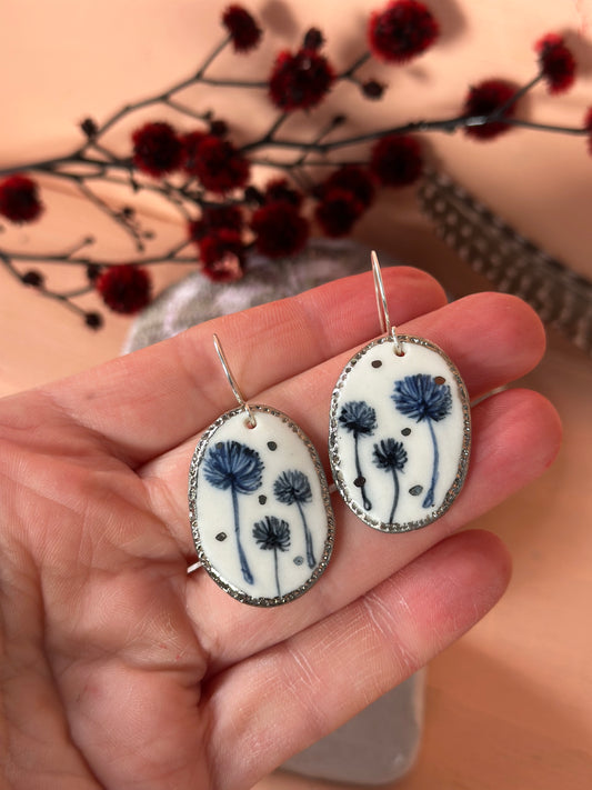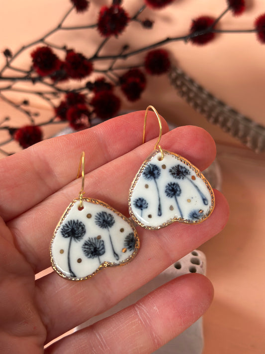 Hand Painted Dandelion Porcelain Earrings with gold dots