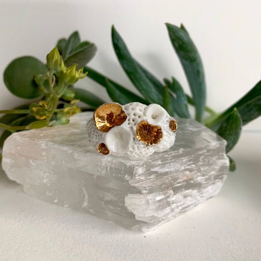One gold lustre with Blue/ pink / purple tones ‘rock coral’ porcelain ring