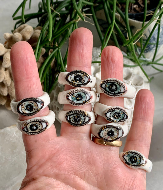 Hand painted porcelain ‘the protective eye’ ring, choose a size