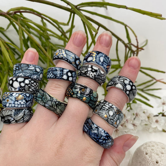 Hand Detailed Porcelain Rings ~ Choose Your Size