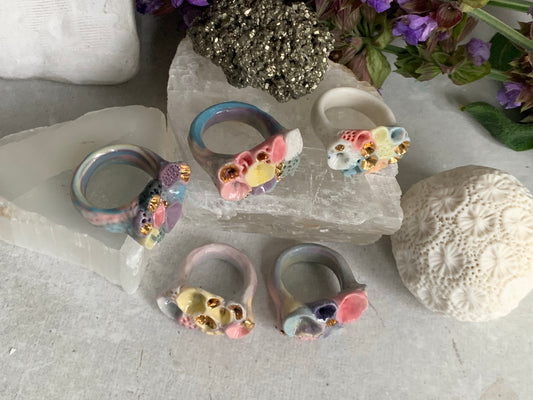 Choose a size, one watercolour porcelain ‘rock coral’ ring