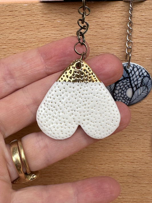 Porcelain ‘charms’ that can be added to your keys or bag ✨ these are made up of earrings or ceramic pieces that have come through to the final step and do not have their pair or it has been damaged somehow during the firing/ making process. They are too nice to sit in a box in the studio!