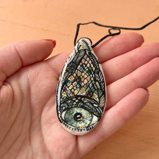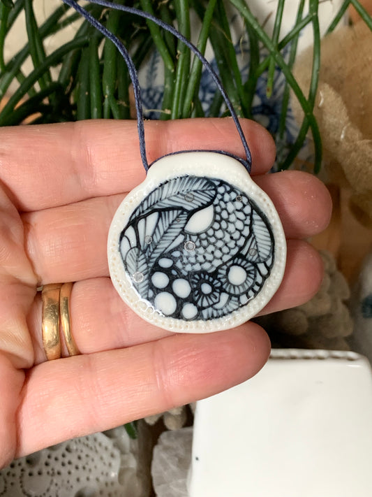 Crescent Porcelain Hand Painted ‘Seafoam’ pendant