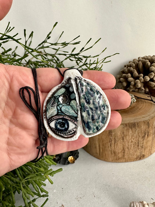 Hand Painted ‘Wings- Protective Eye’ Pendant