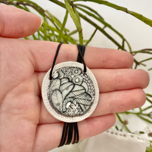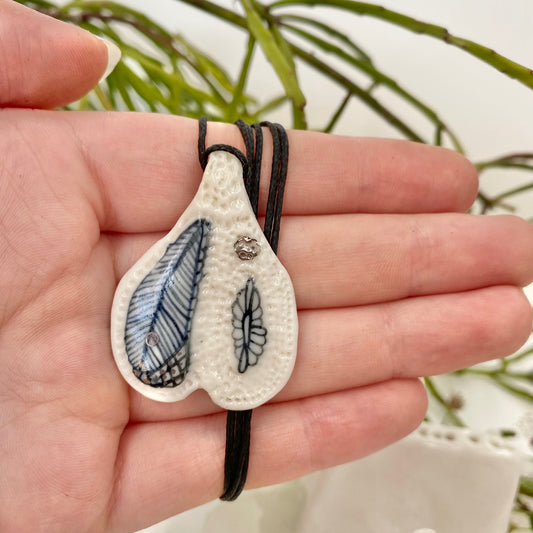 Hand crafted porcelain and ceramic pendants and necklaces, all made individually by Katherine Wheeler.