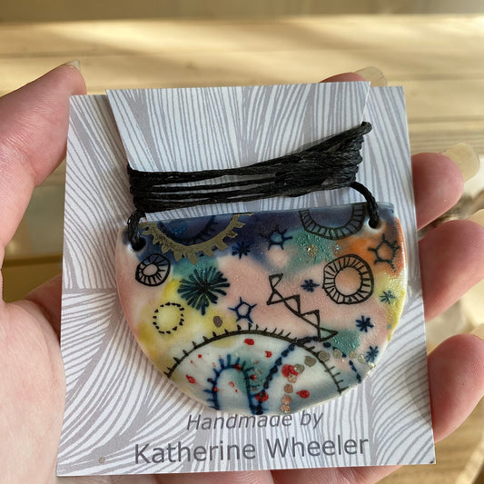 Hand Painted ‘stars and cells’ Porcelain Pendant