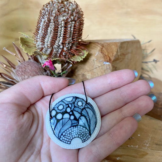 All pendants are like mini art wearable works, with their own unique designs, hand painted and hand textured individually in Katherine's Castlemaine studio.