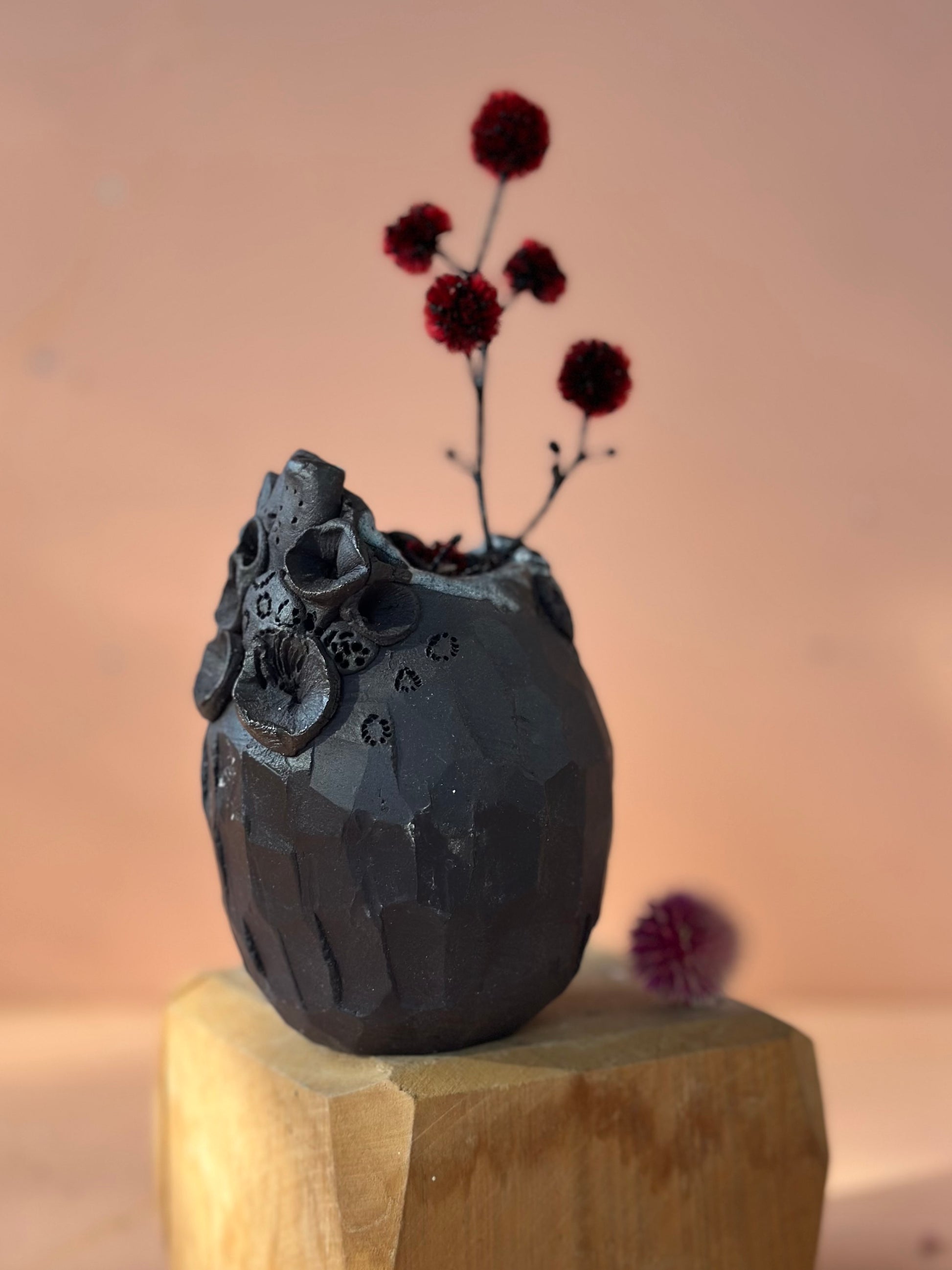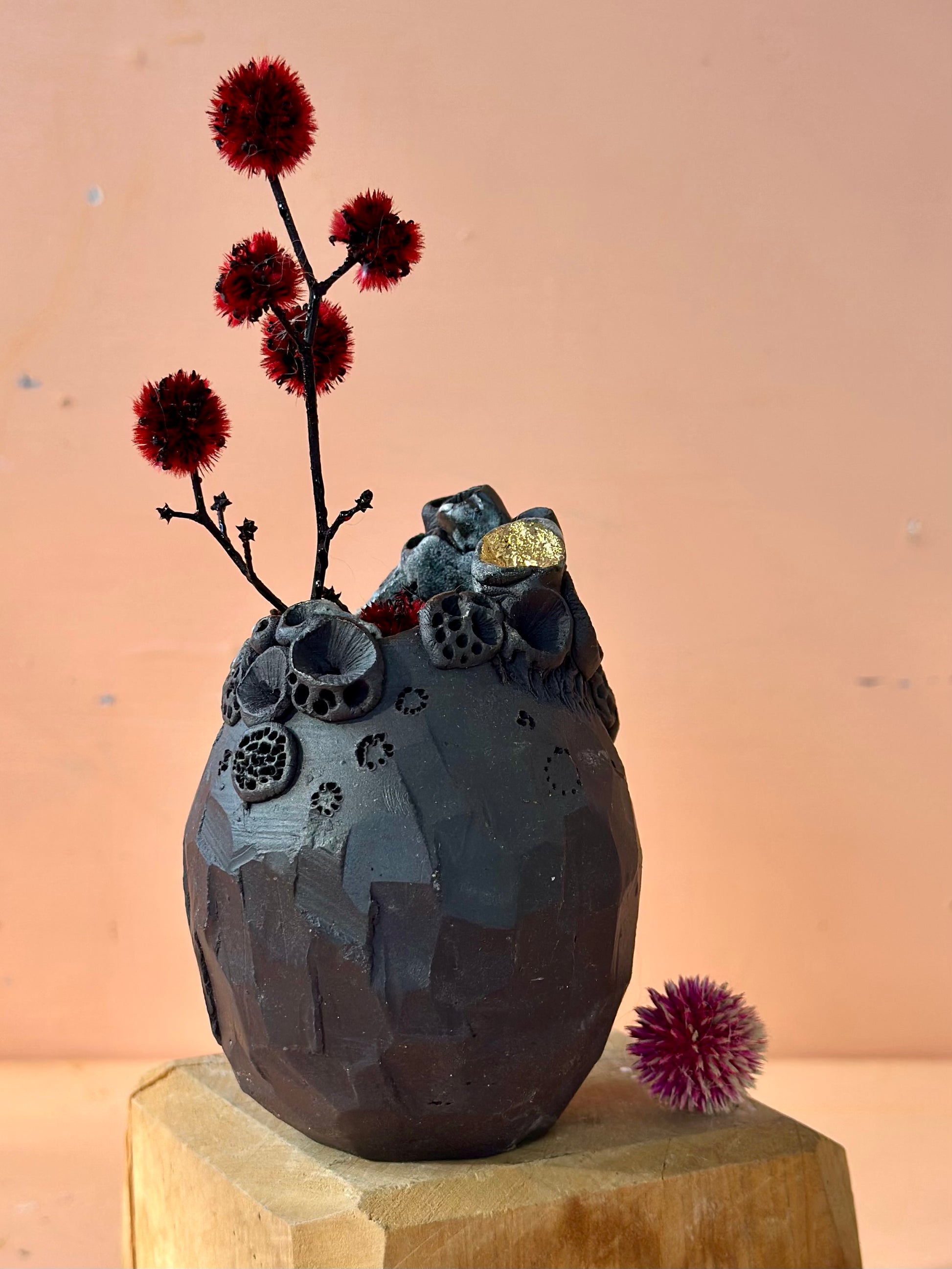 A one of a kind hand formed ceramic vase, made by katherine in her home studio in castlemaine, central Vic.