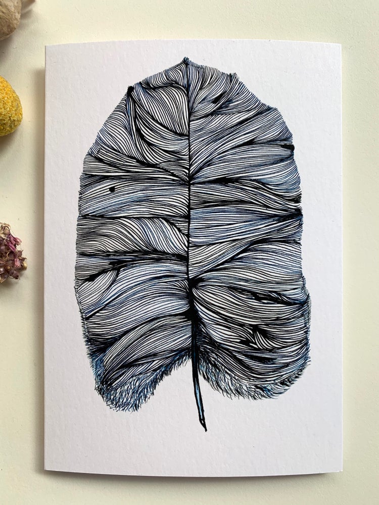 The illustration is a high quality reproduction, on a matte thick card, of one of Katherine’s original pen and ink drawings.