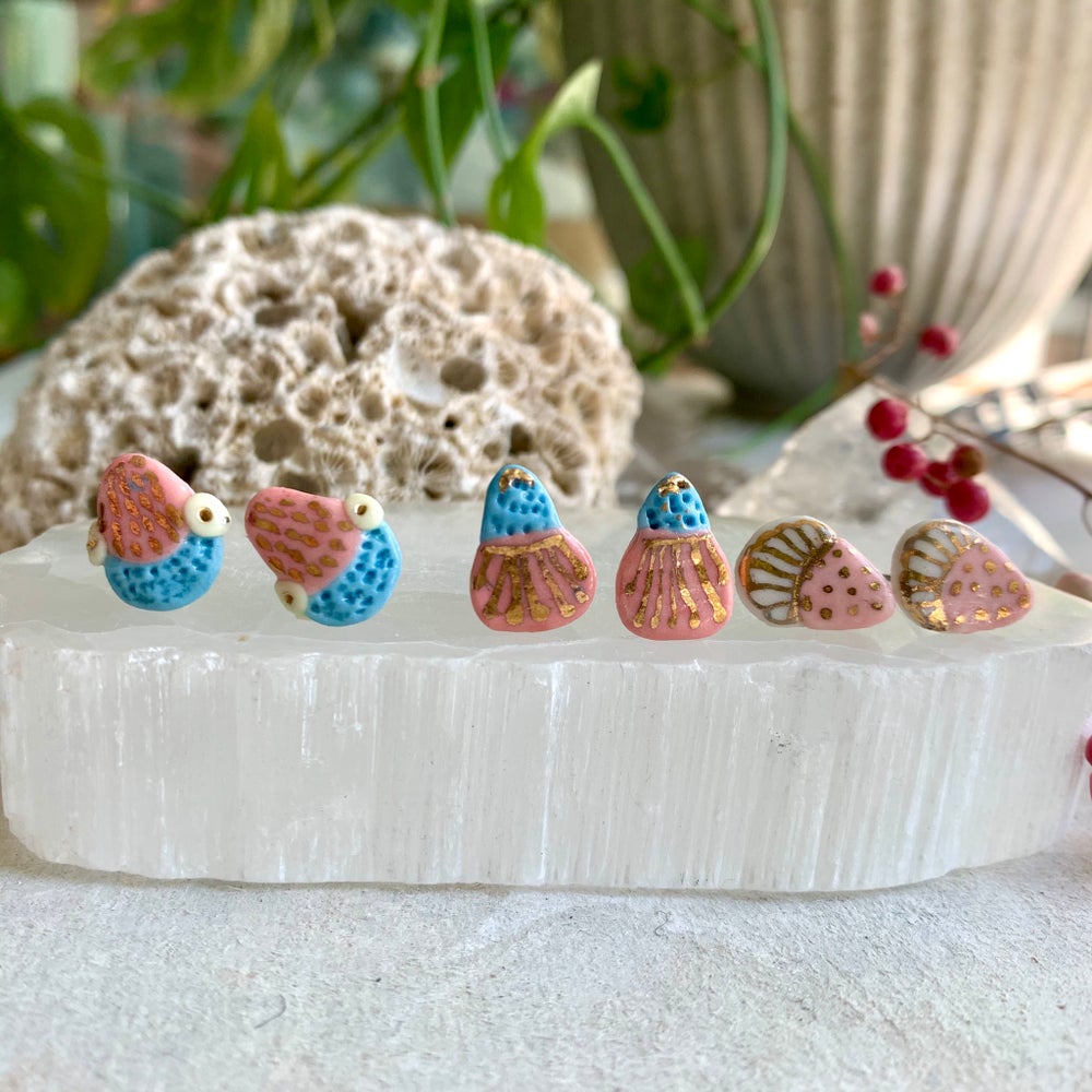 Each piece is hand crafted in coloured porcelain, mimicking the textures and shapes observed while beach combing.