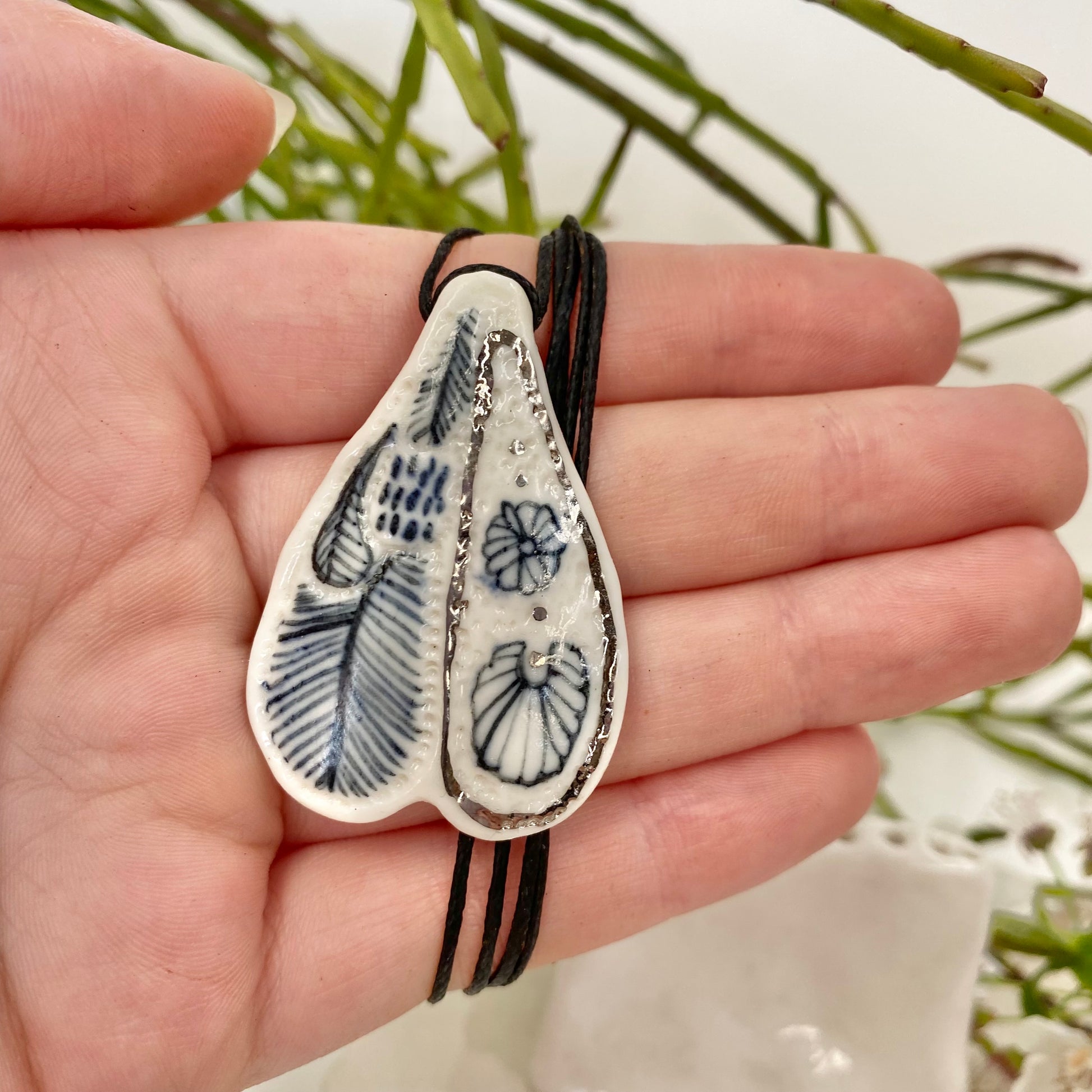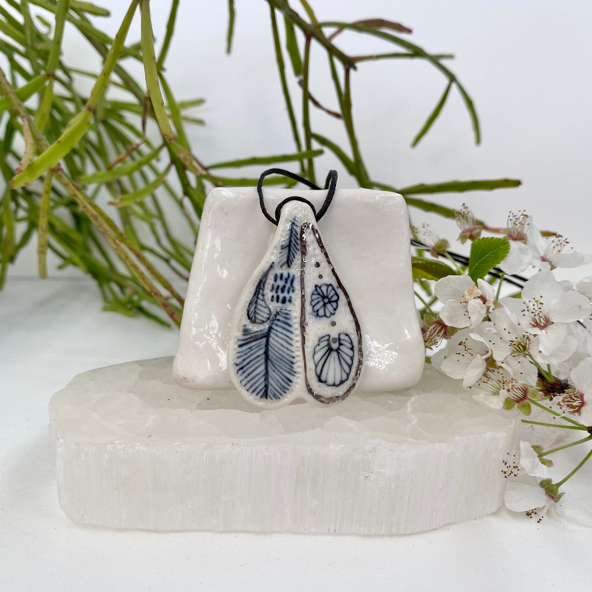 Porcelain pendant measures approximately 4.5 cm h x 3.5 cm w