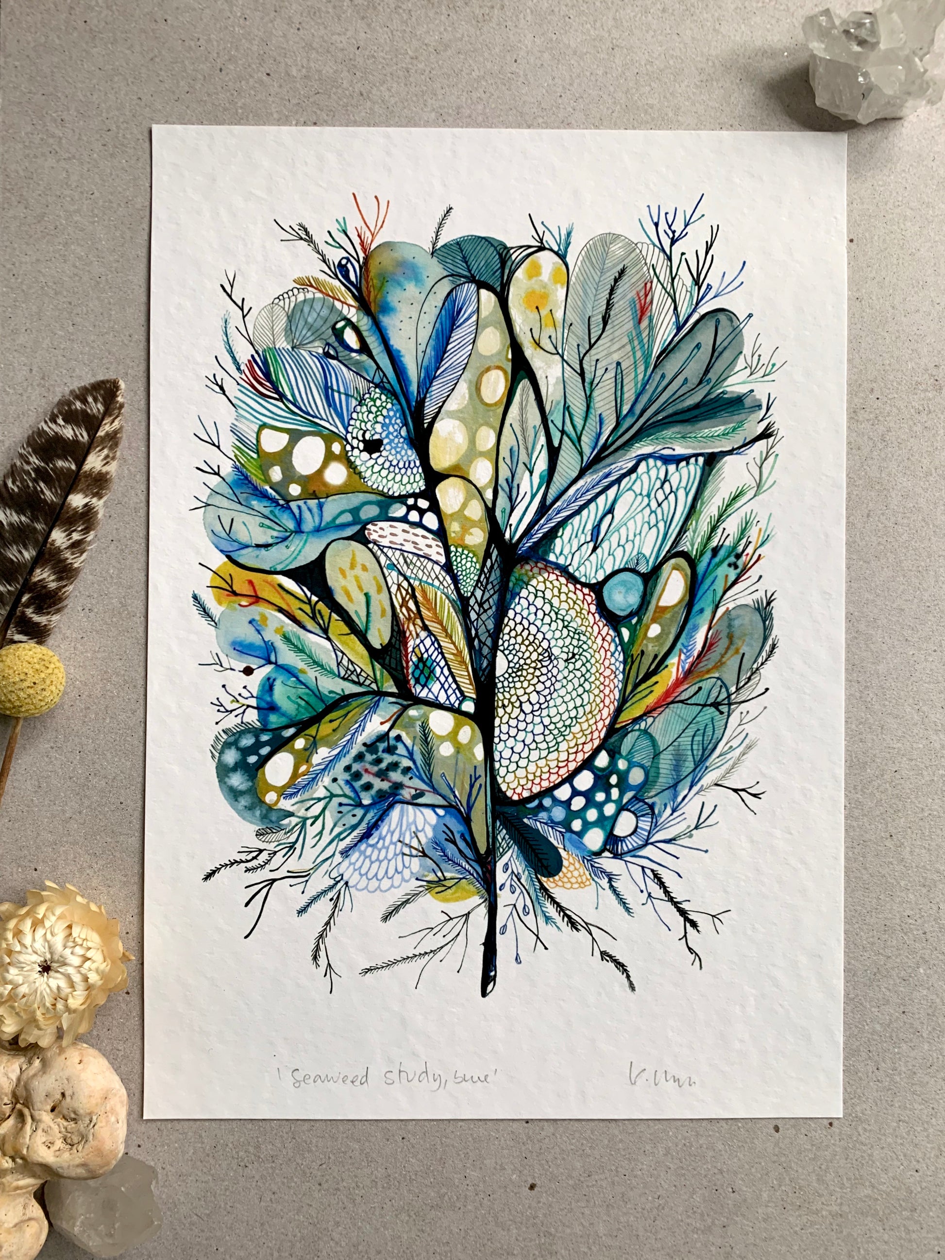 ‘Seaweed study, blue' giclee print in A3, A4 or a5
