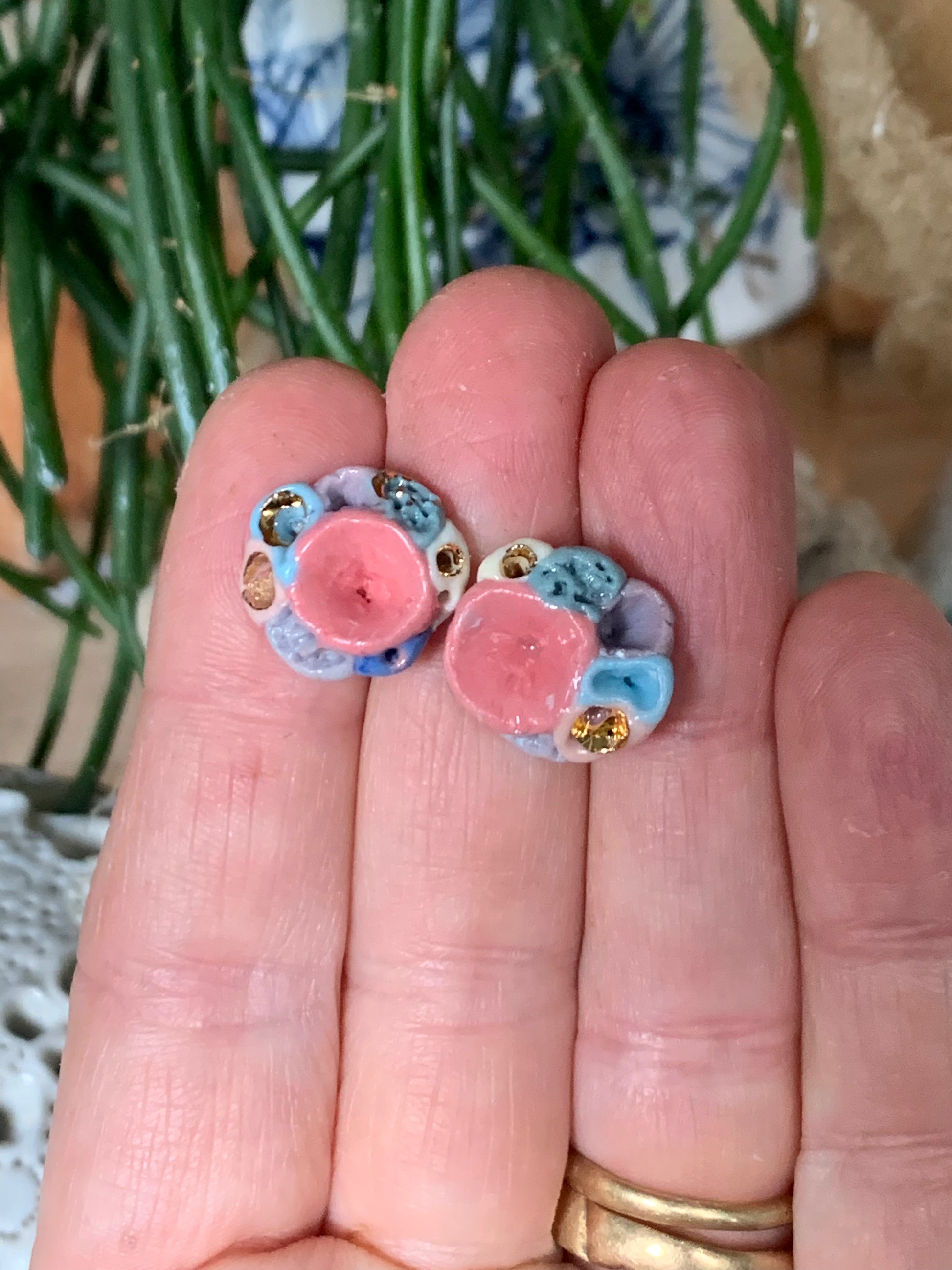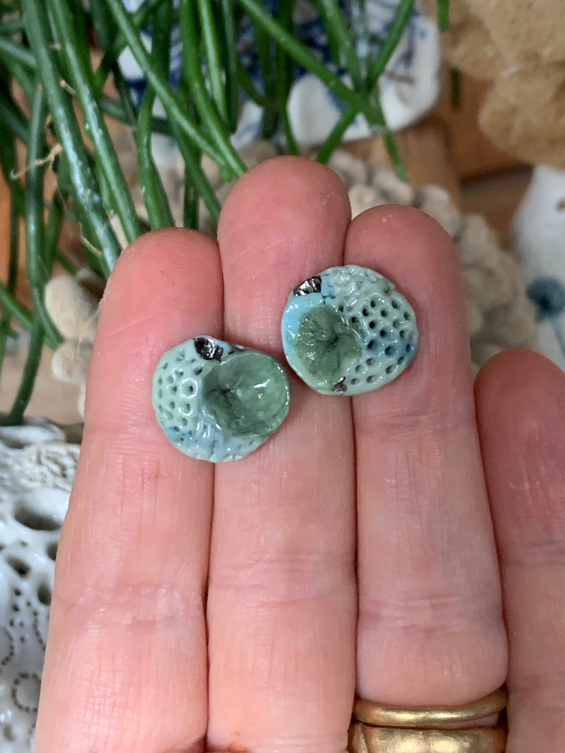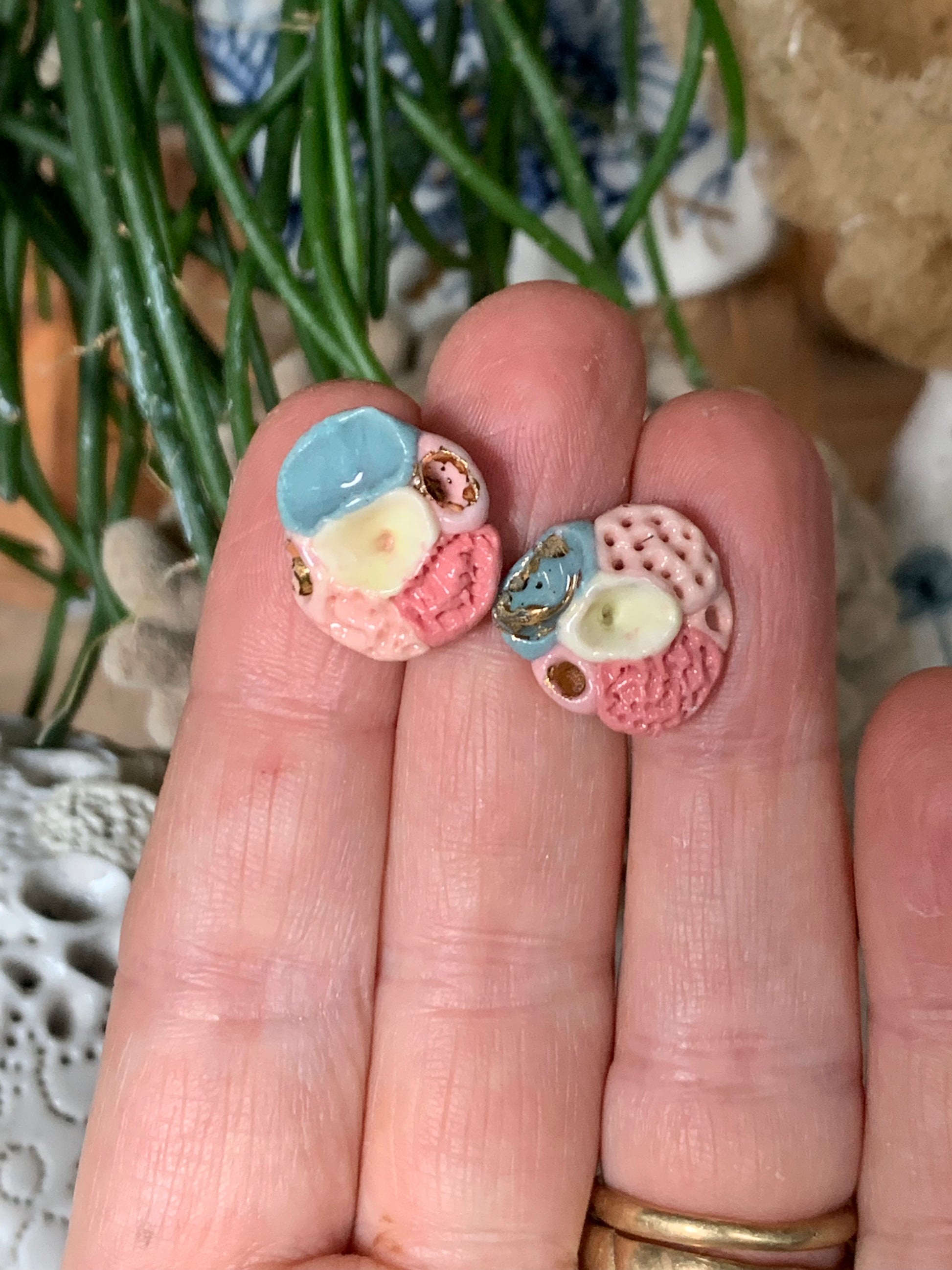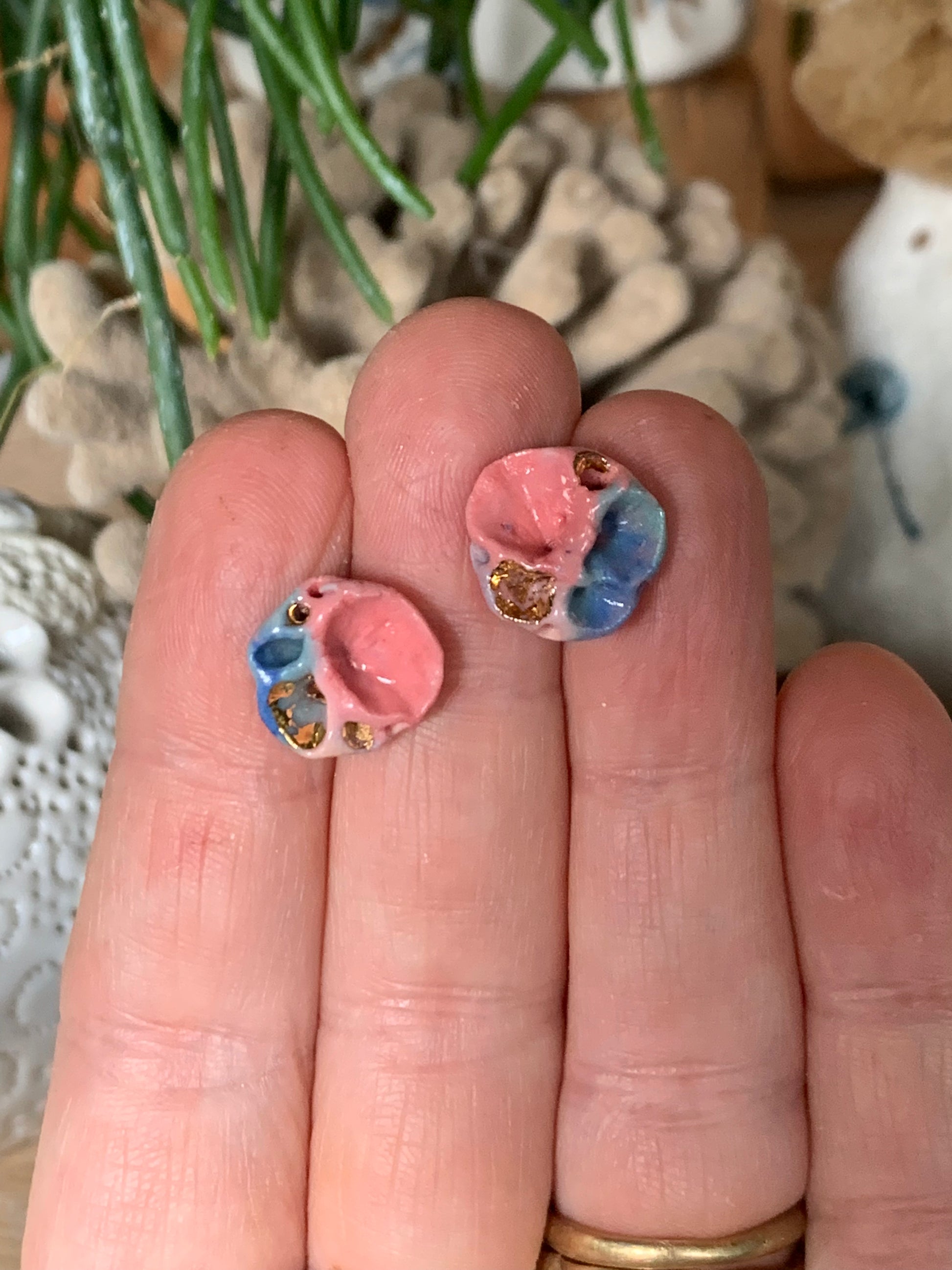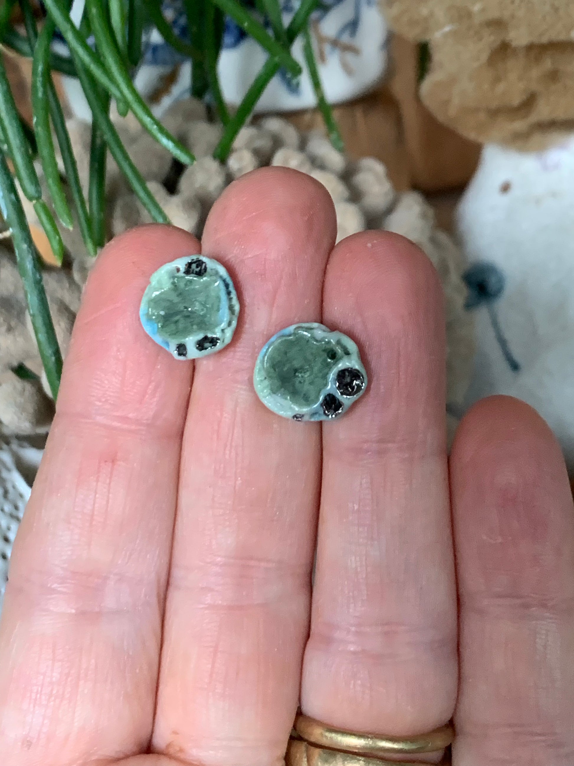 Hand made porcelain stud earrings, on surgical steel posts.