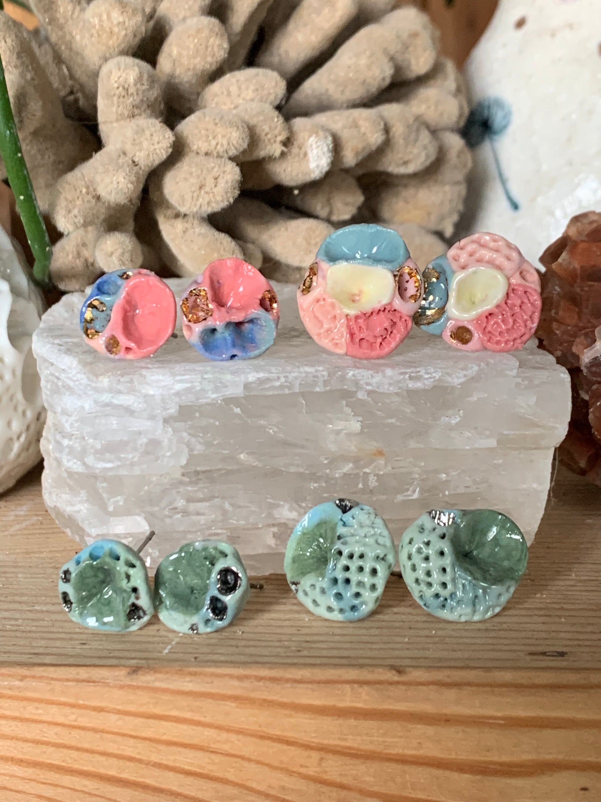 Coral and gold lustre porcelain ‘coral’ studs, choose a pair