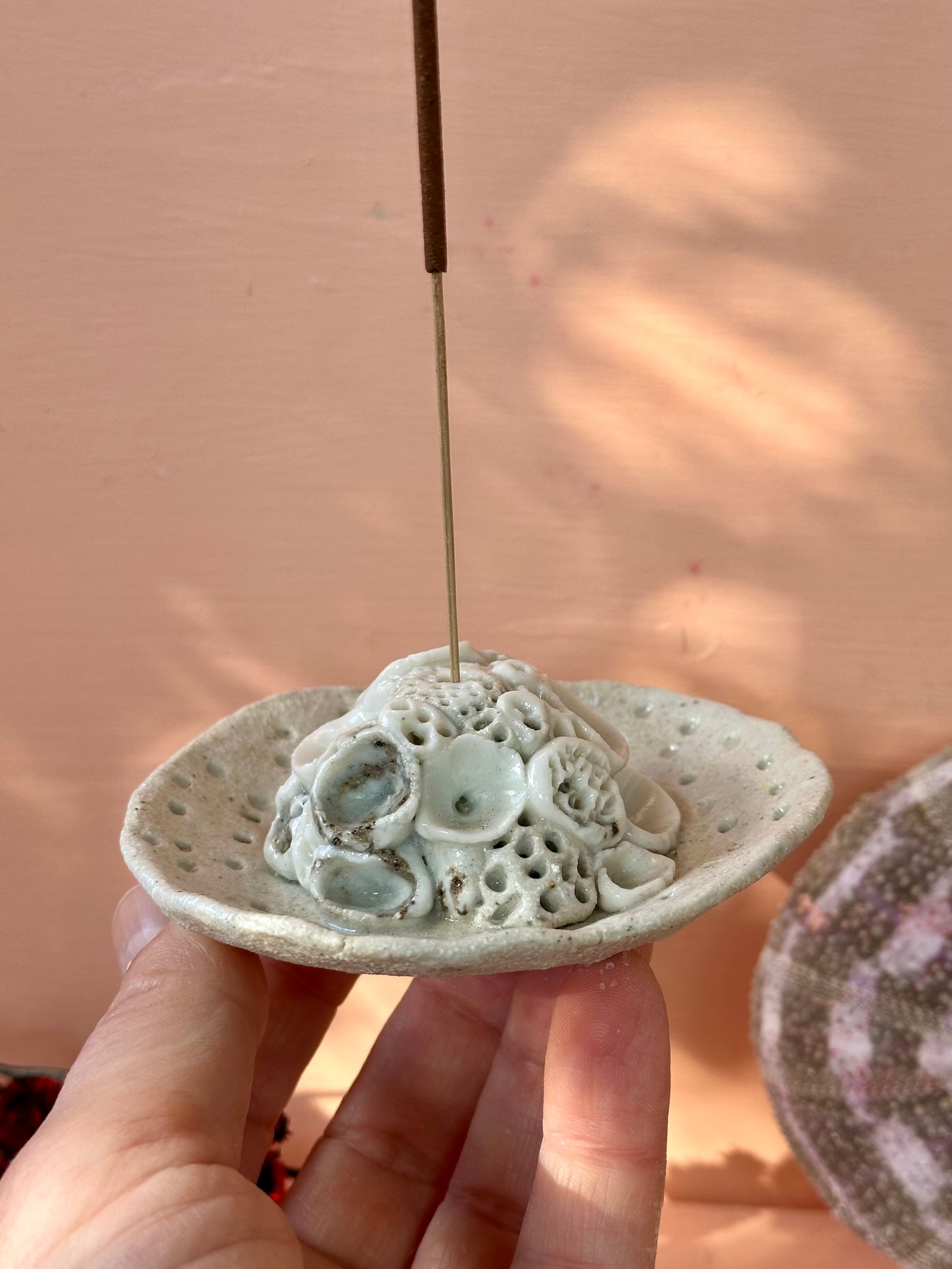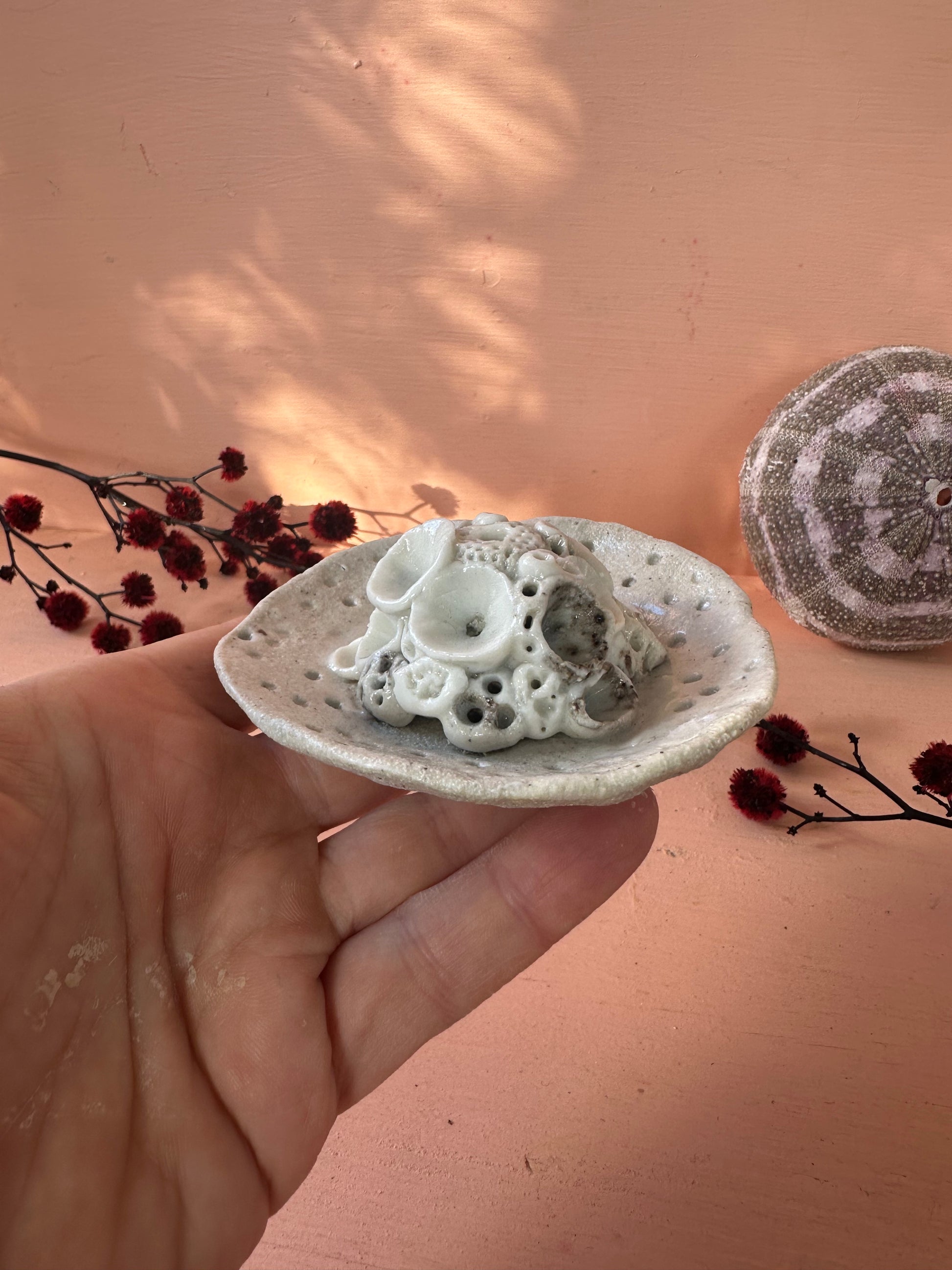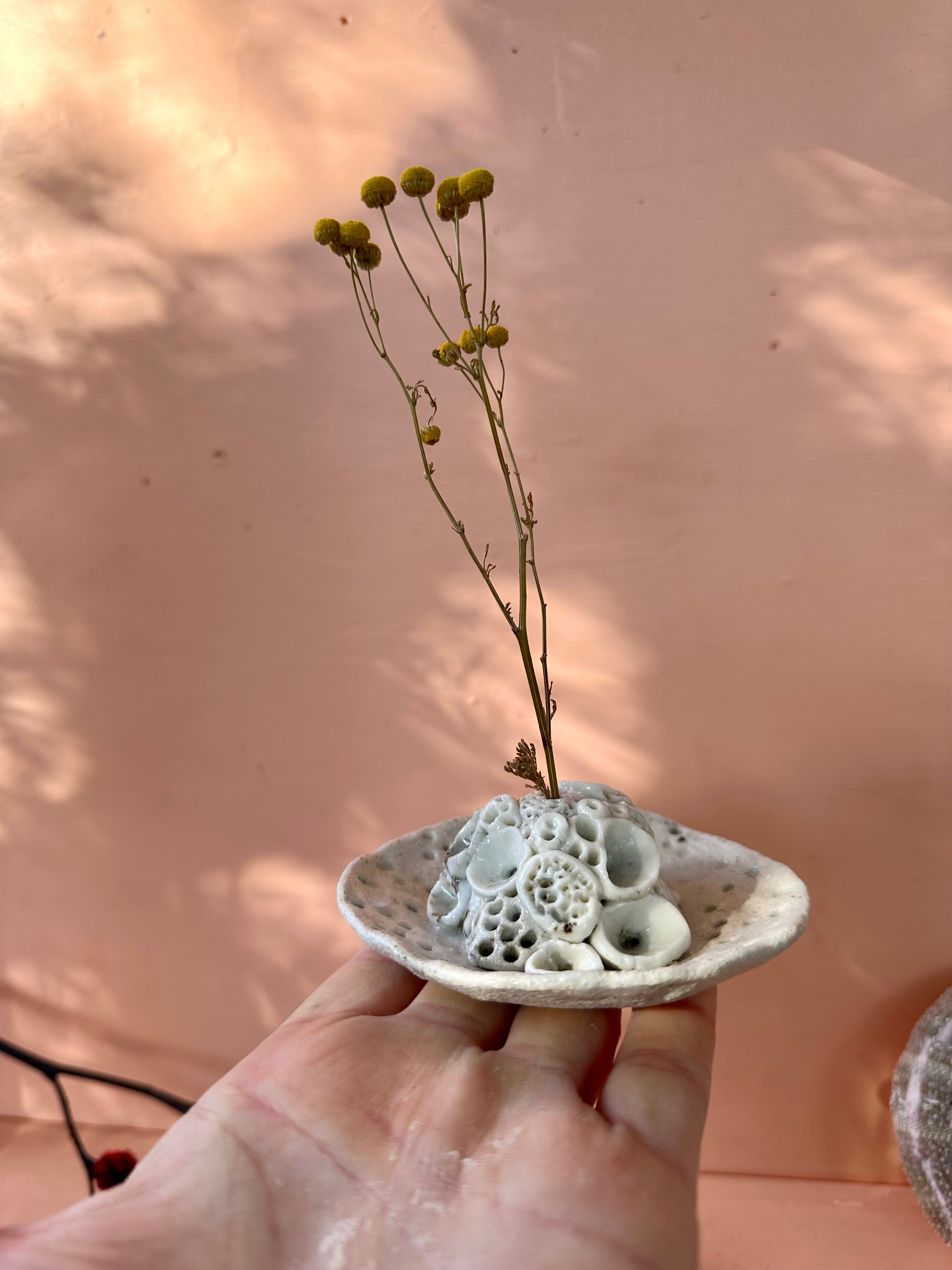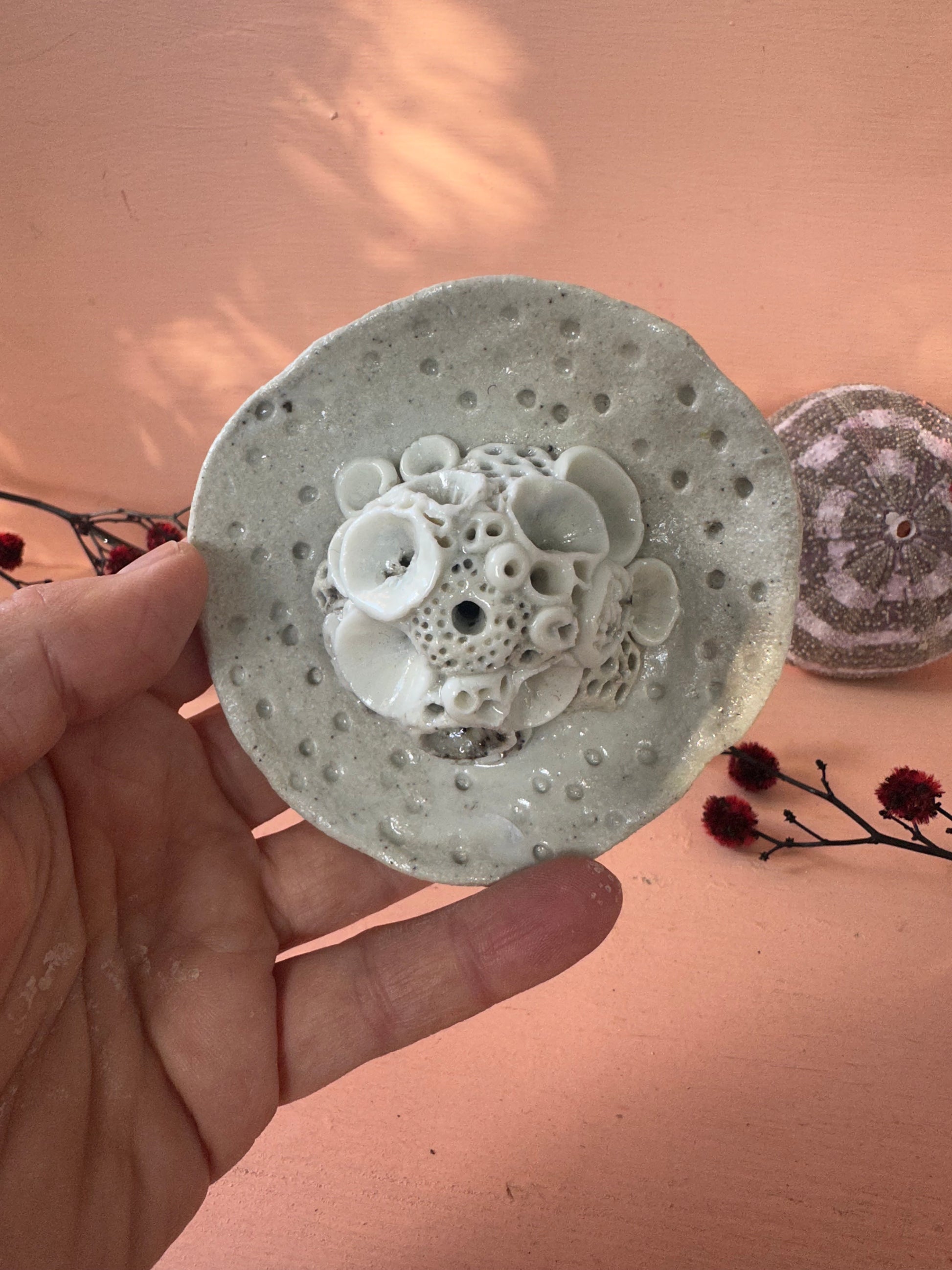 Hand made and hand detailed ceramic coral dish to add a flower/ feather or incense!