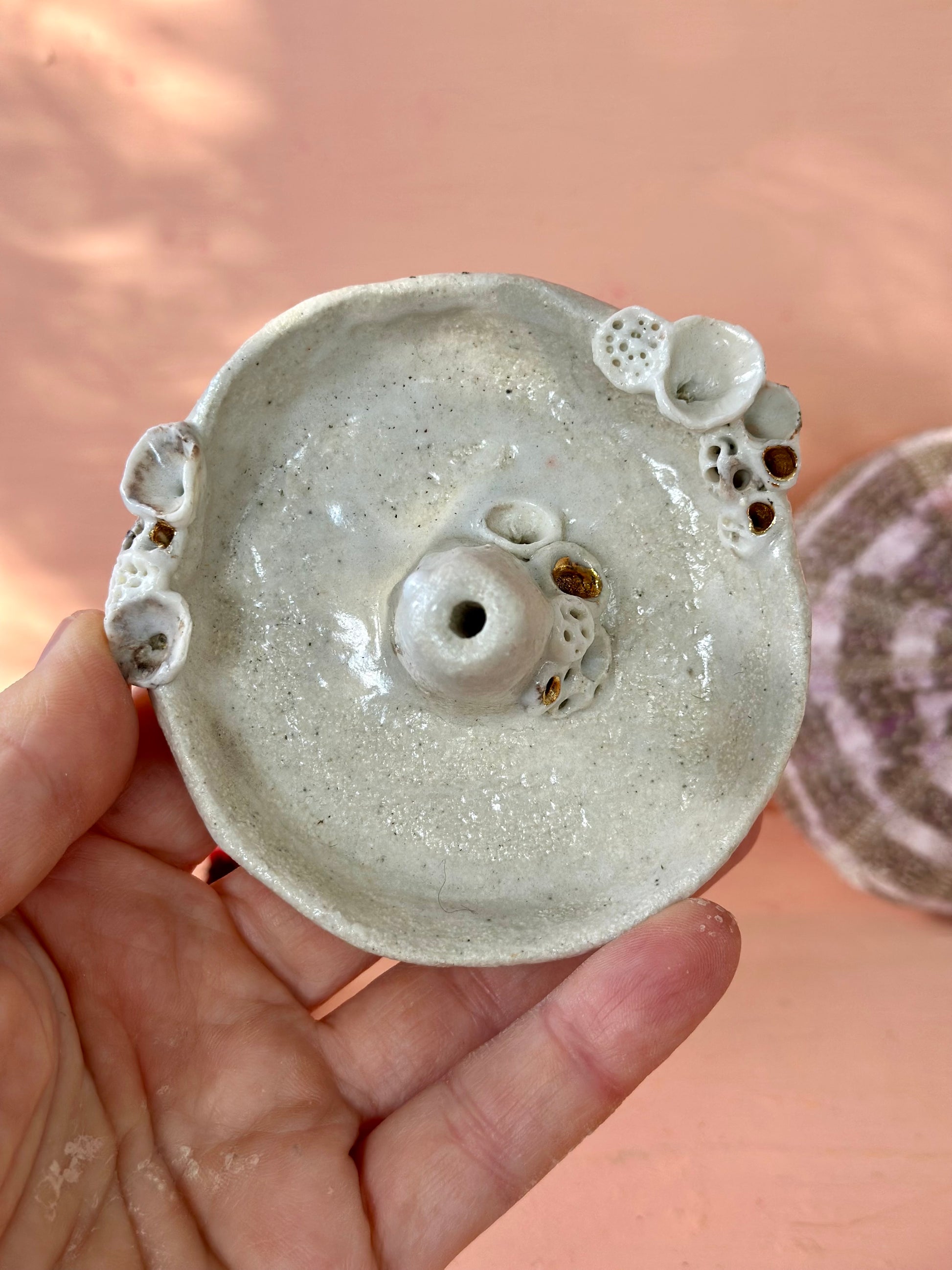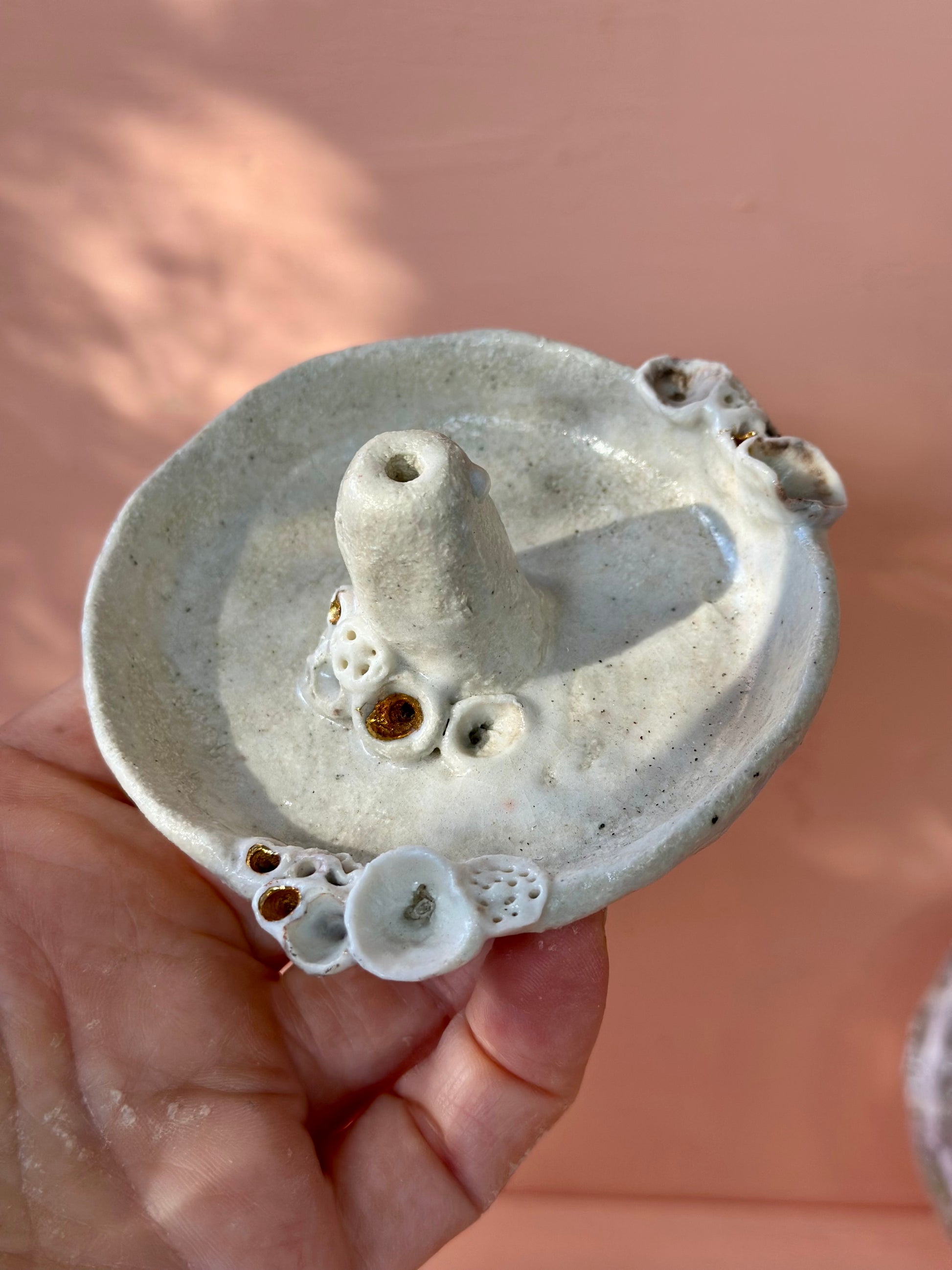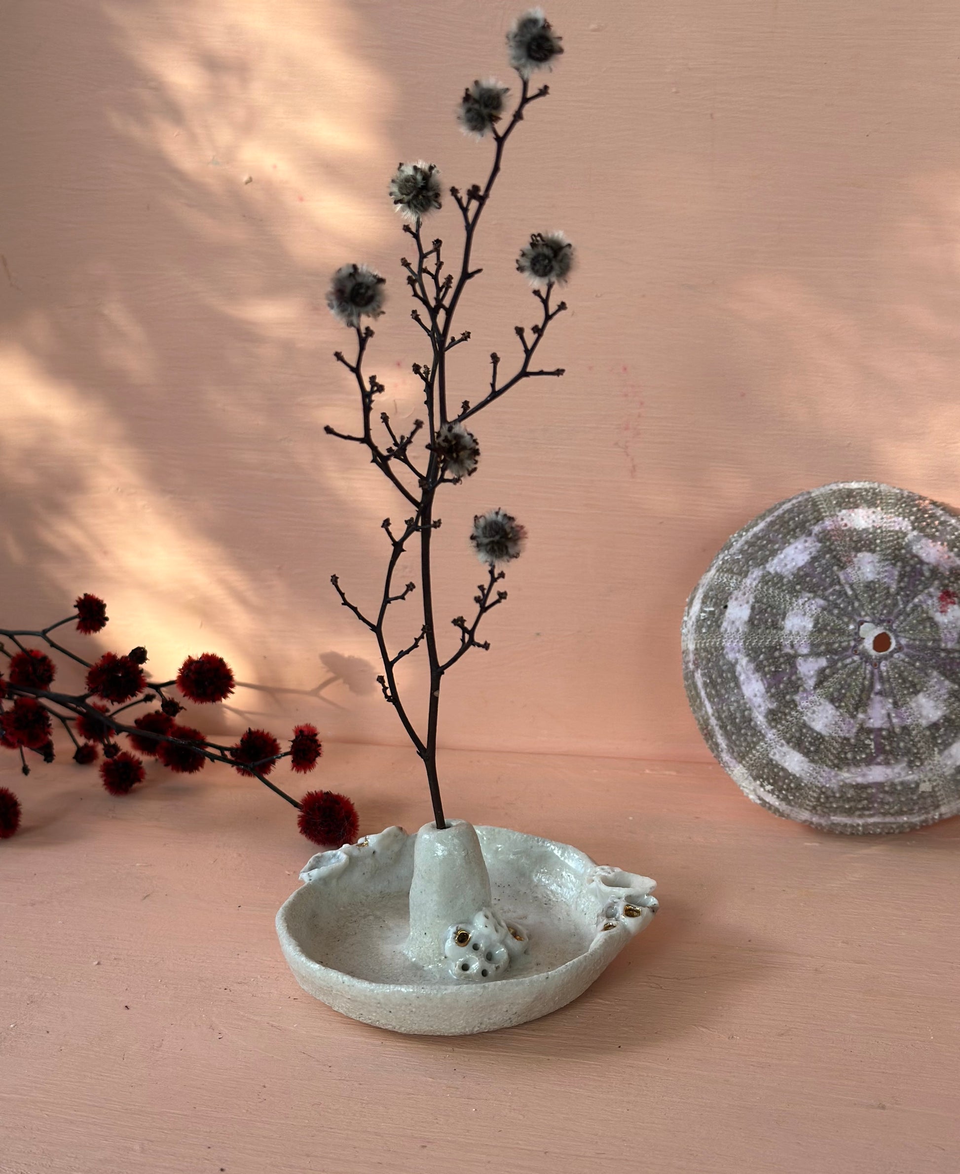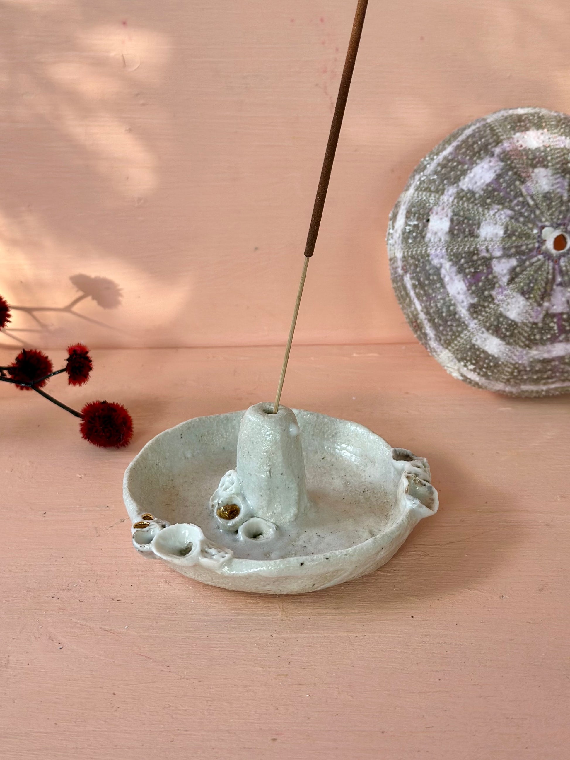 Hand made and hand detailed ceramic coral dish to add a flower/ feather or incense!