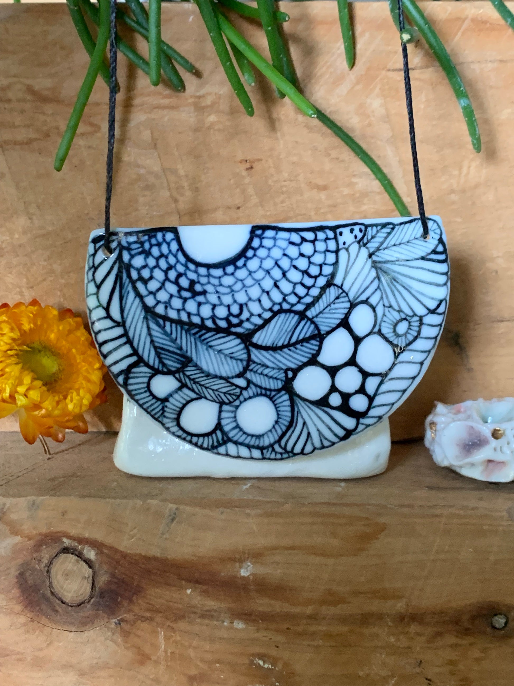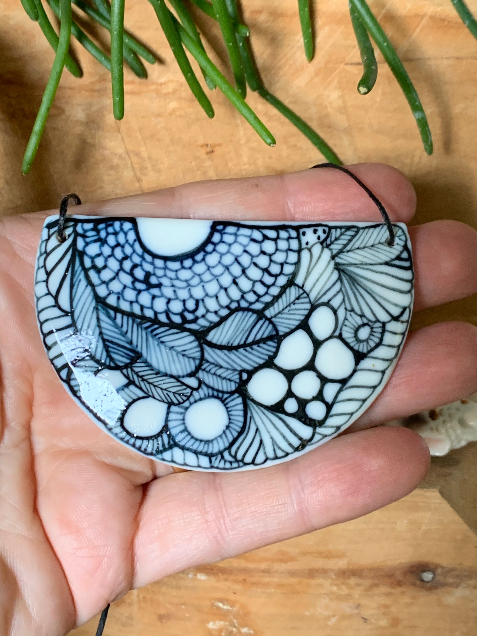 Crescent Porcelain Hand Painted ‘Seafoam’ pendant