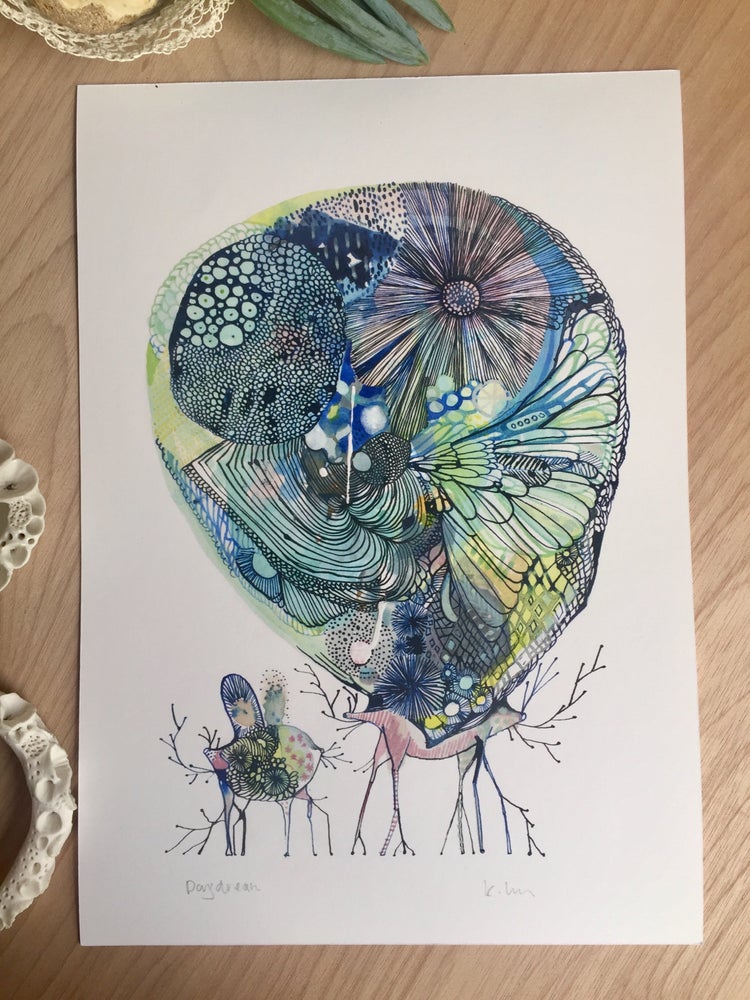 An A5, A4 or A3 standard sized, archival, high quality Giclee print of my original pen and ink / brush and ink drawing.