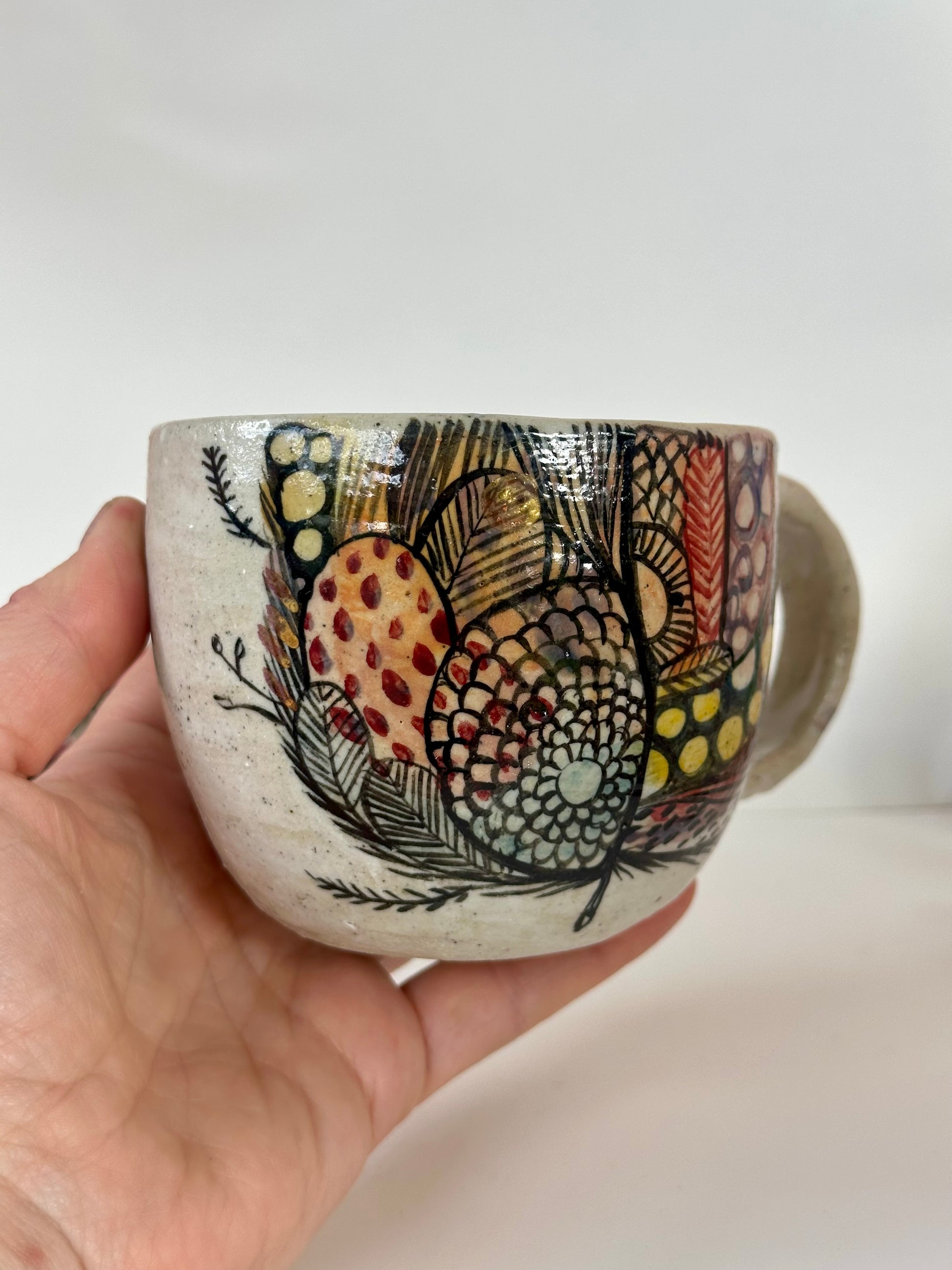 ‘Feather’ hand painted cup