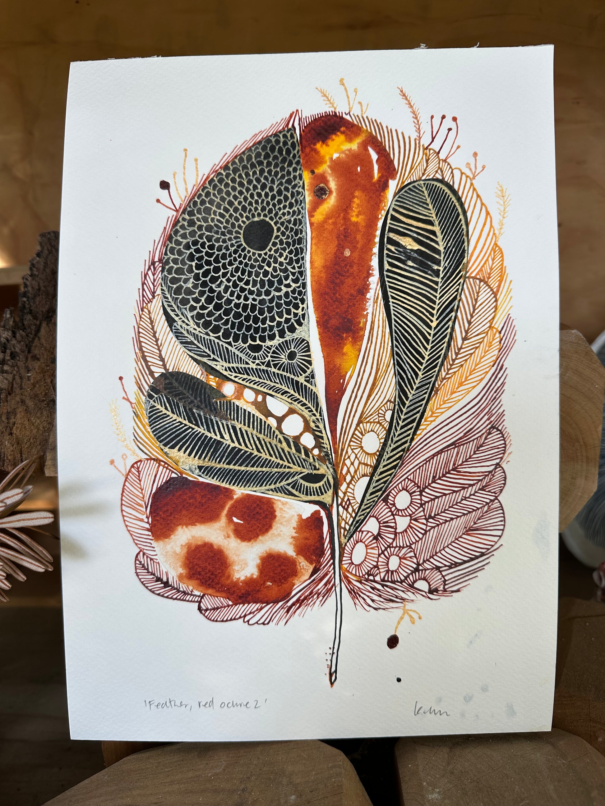 Feather, red ochre series (A4)