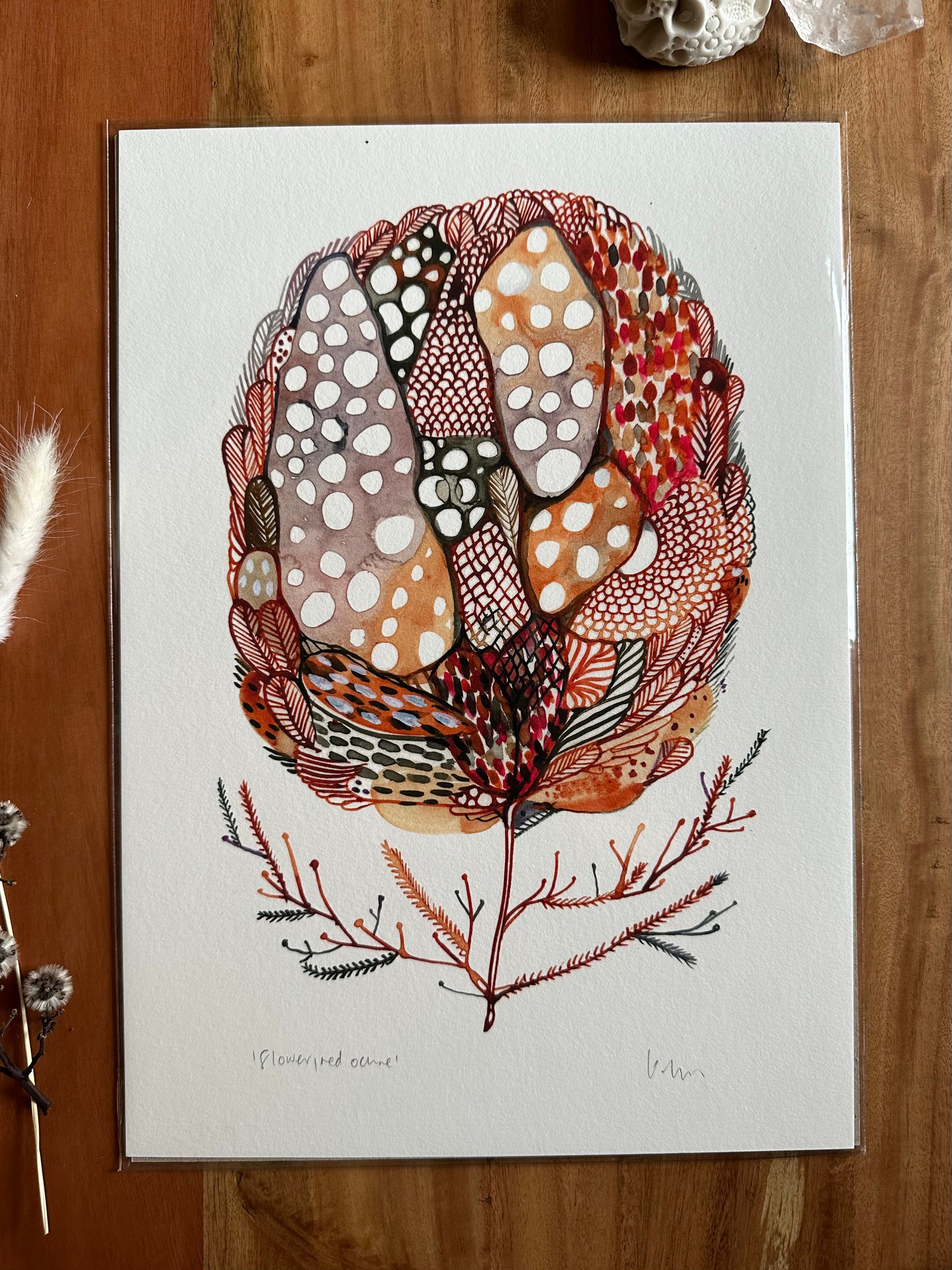 ‘Flower, red ochre’ giclee print in A3, A4 or a5