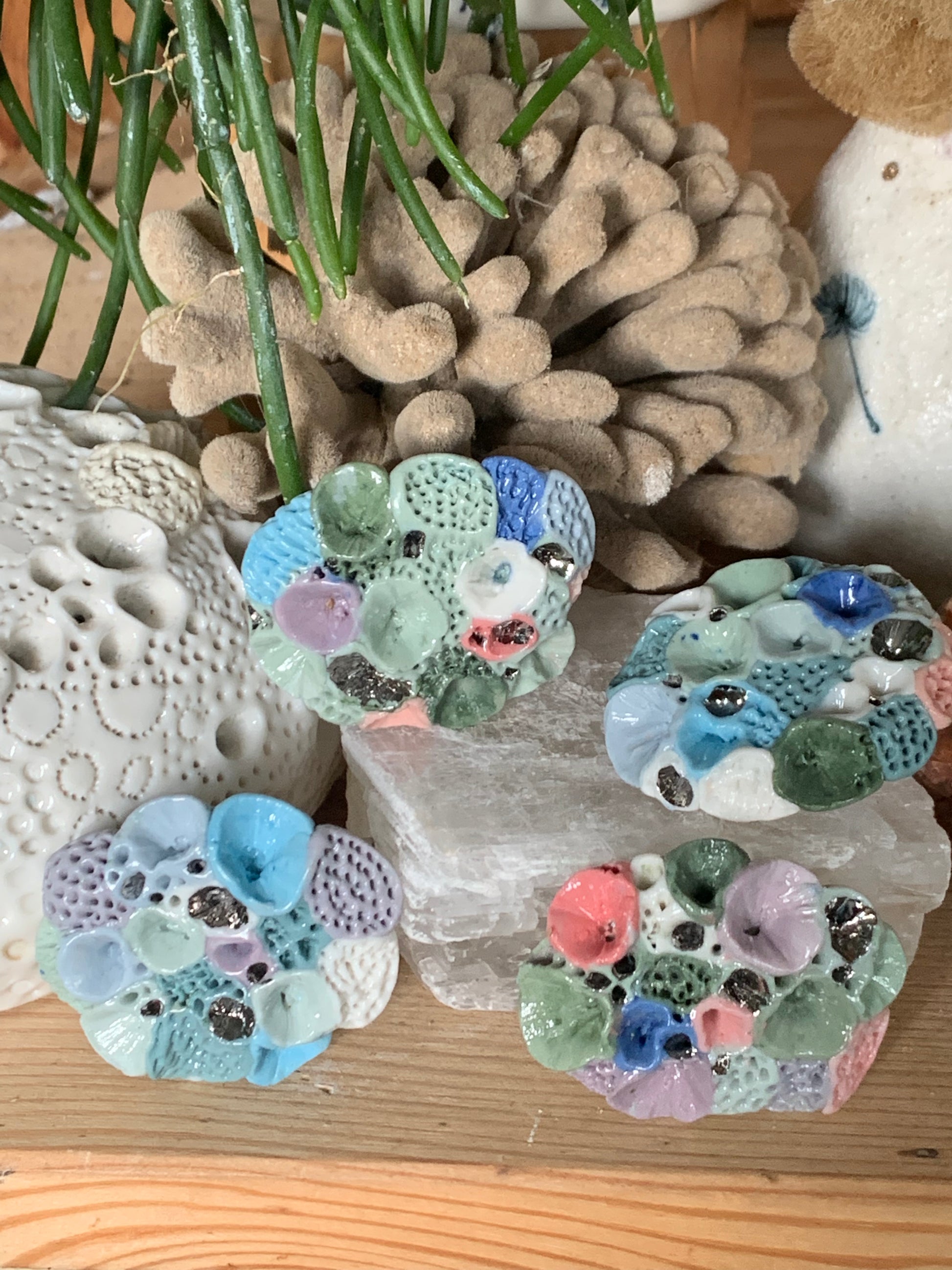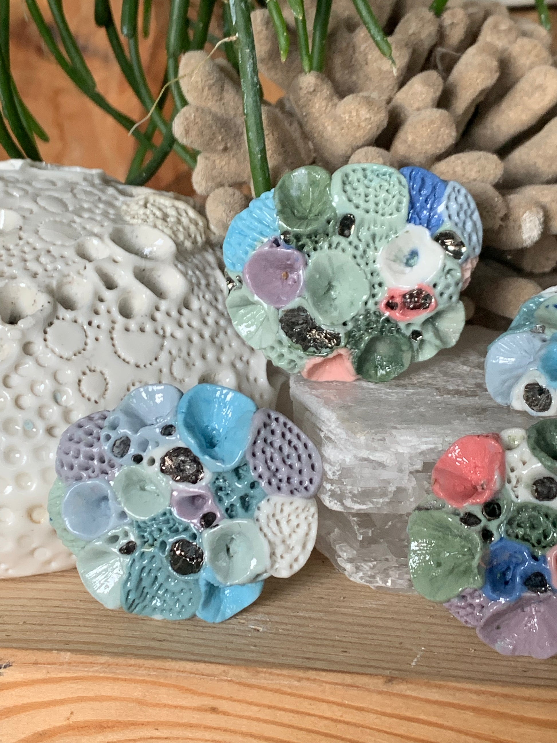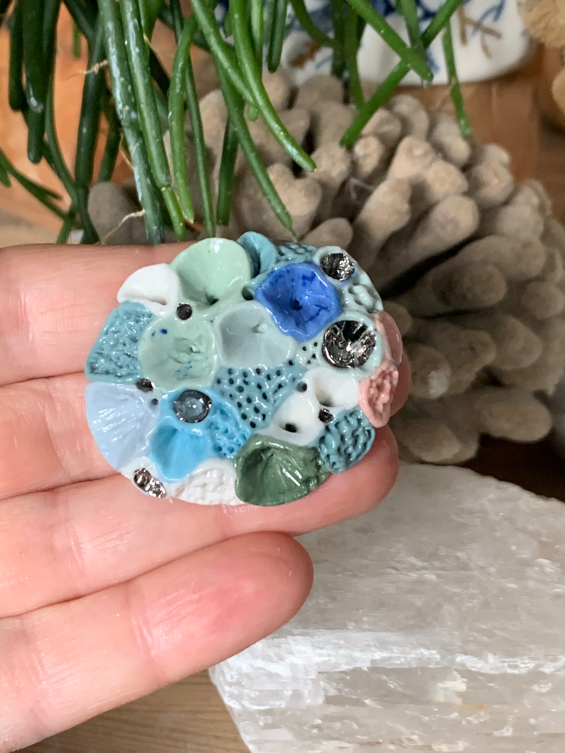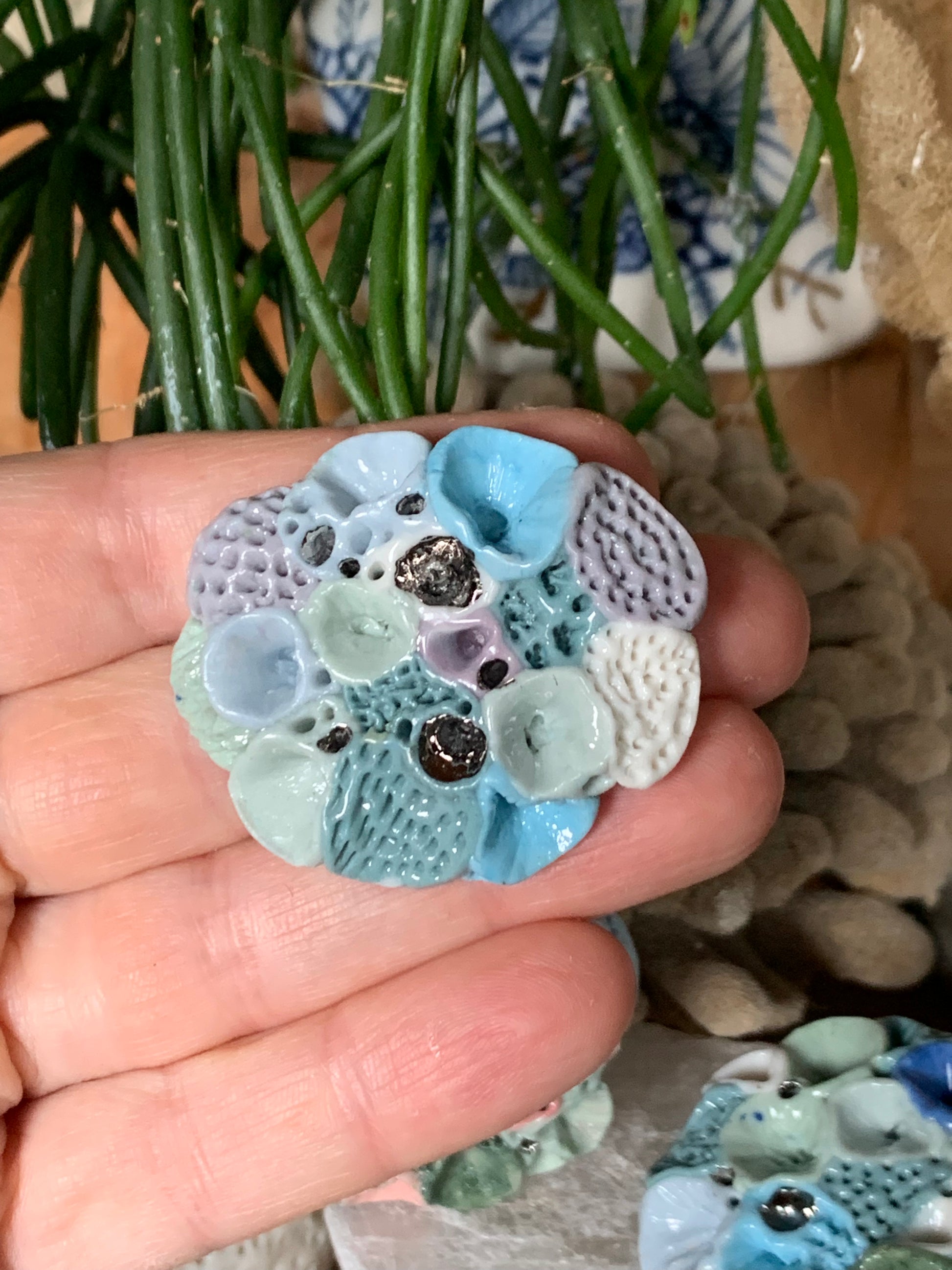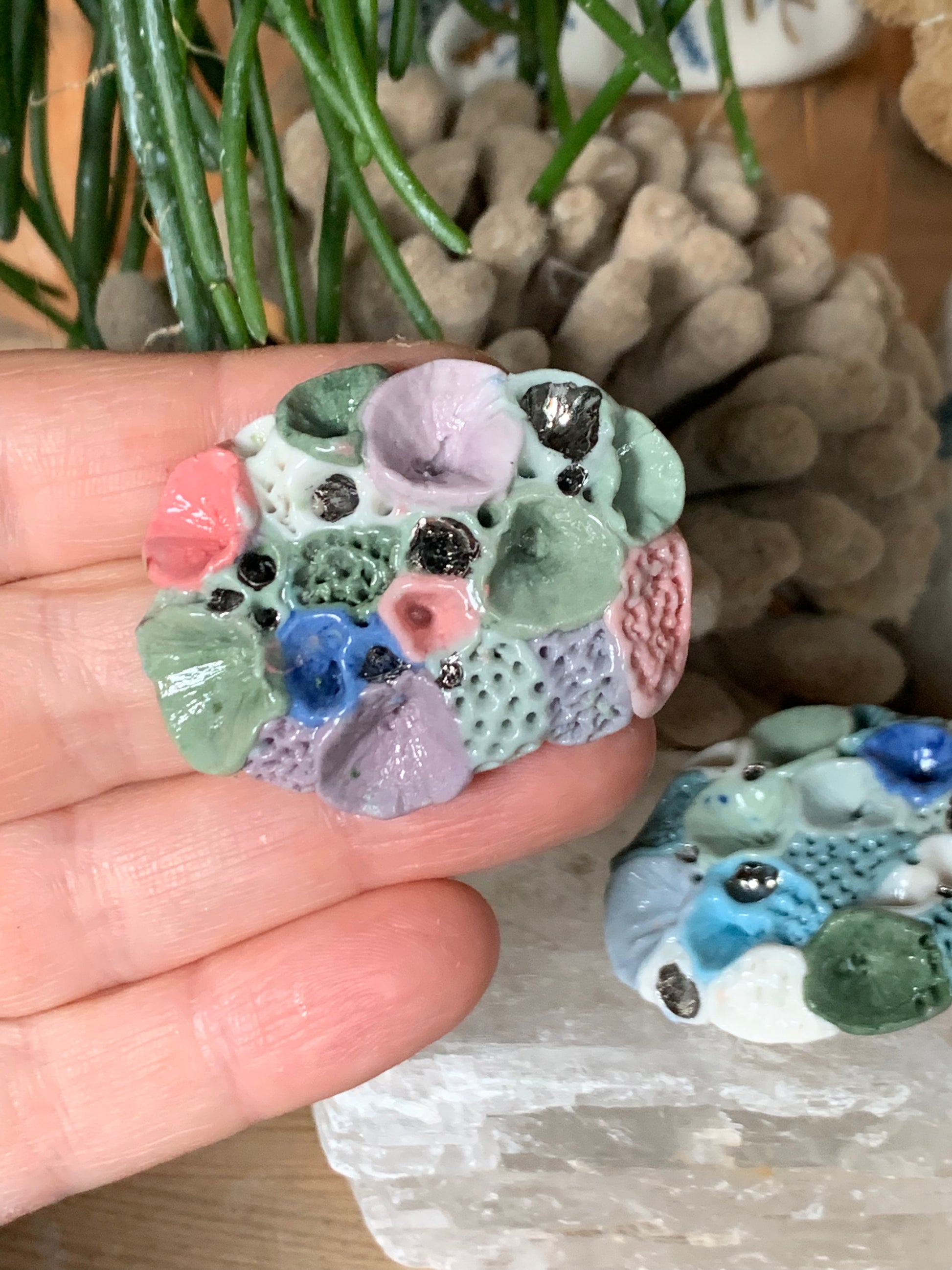 Green and lilac tones ‘Rock coral’ coloured porcelain brooch, choose one