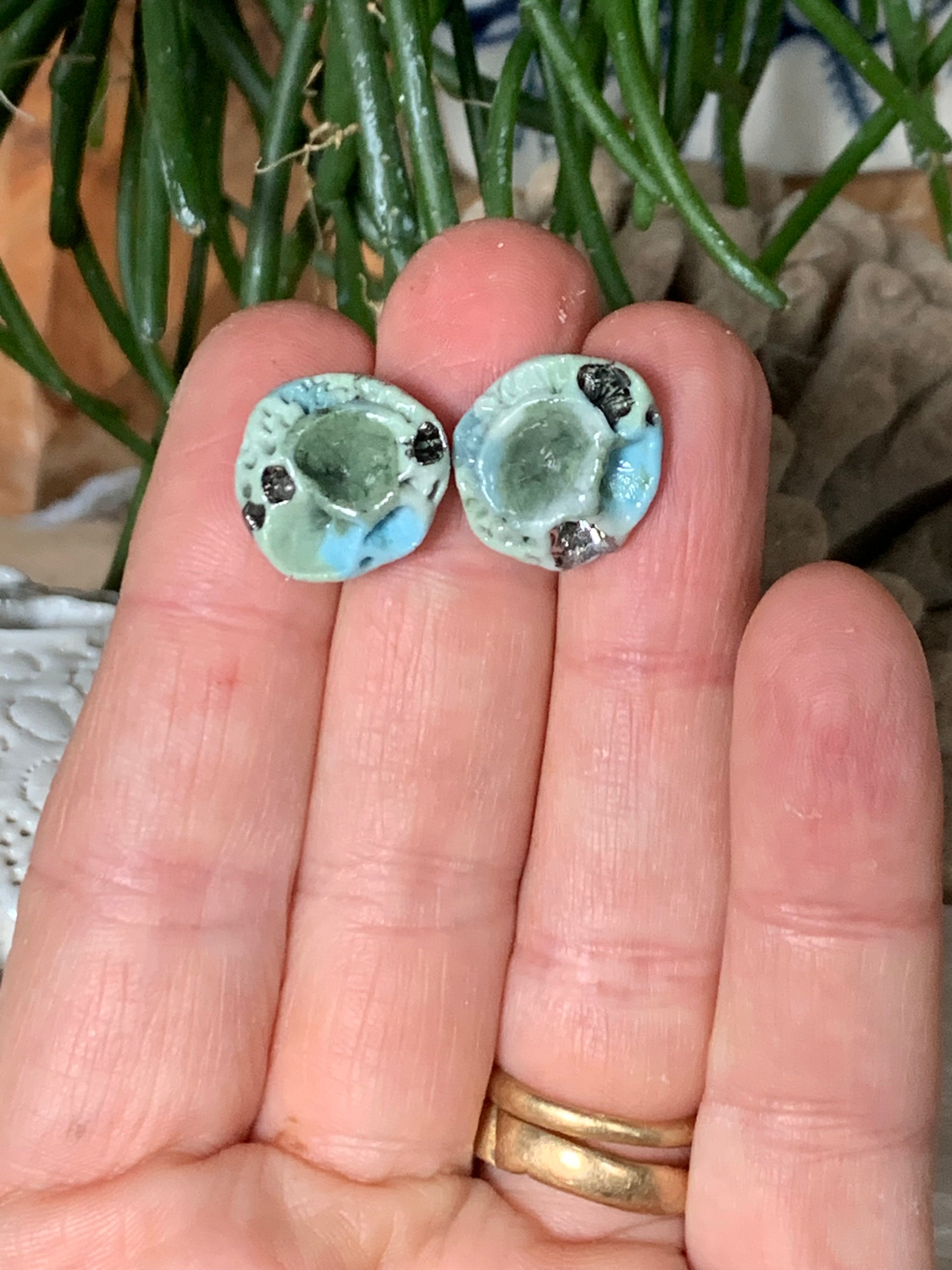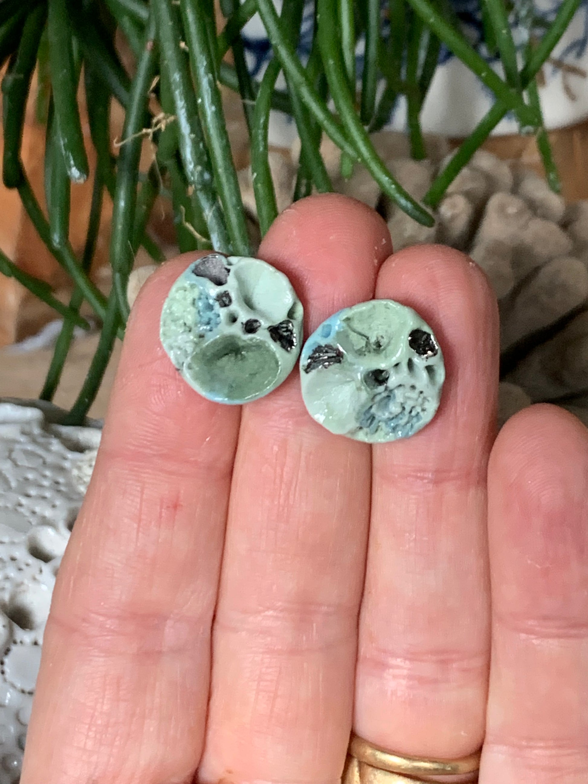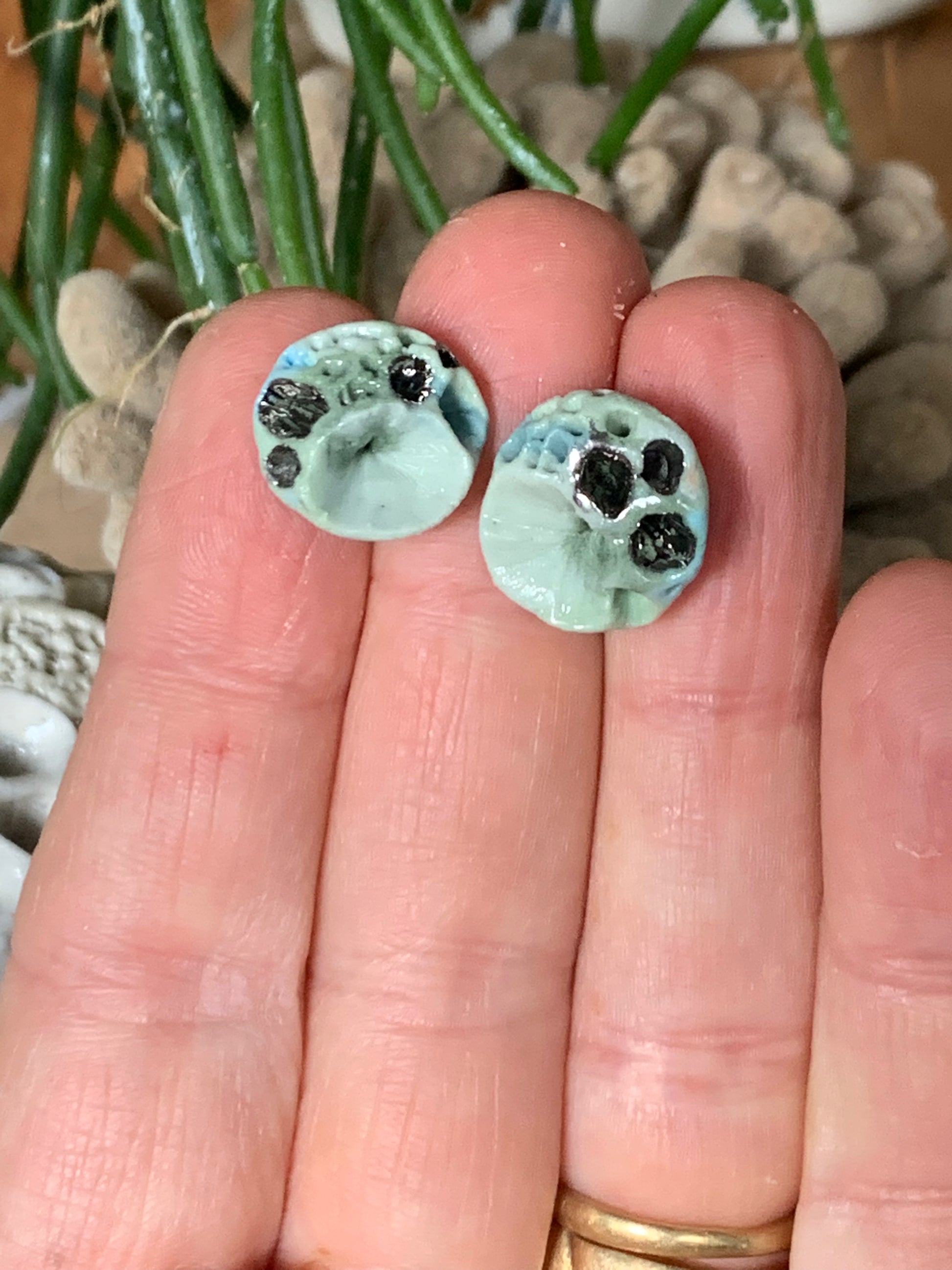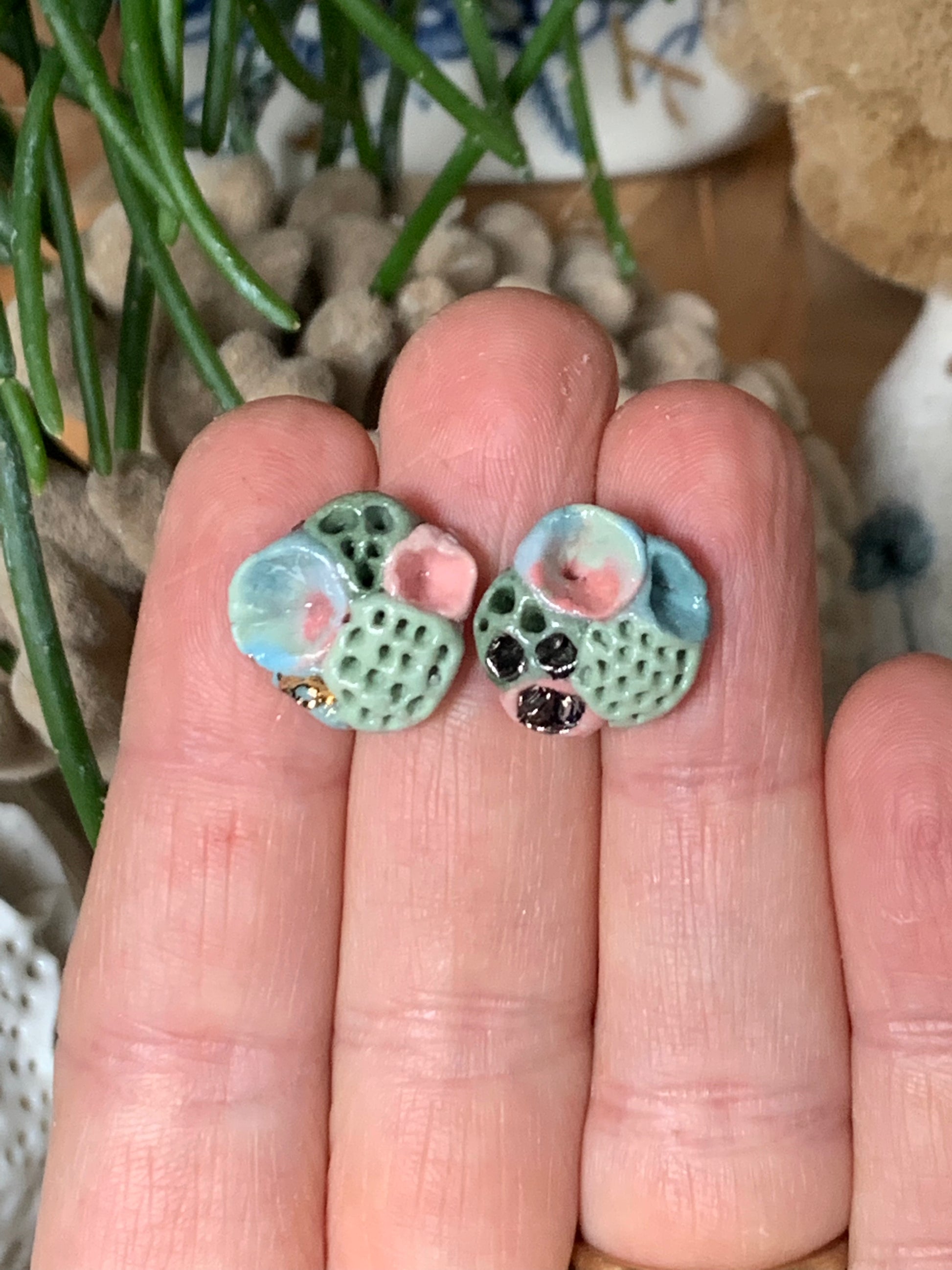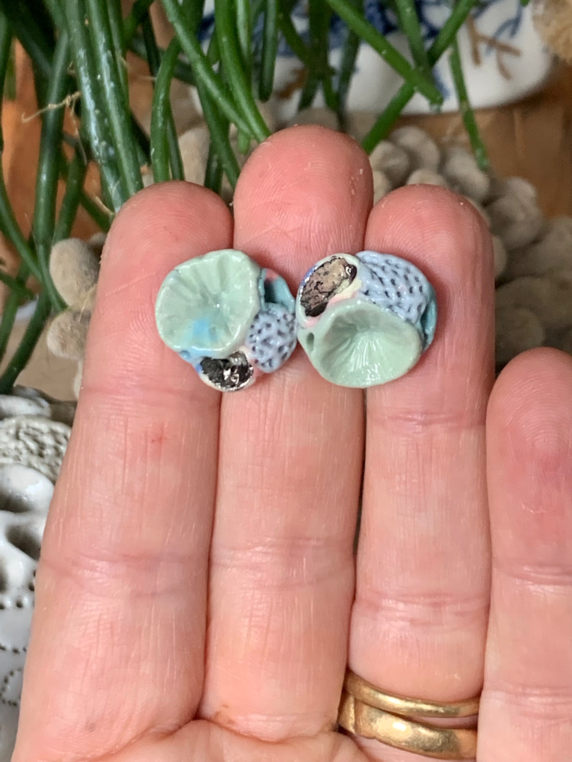 Green tones and silver lustre porcelain ‘coral’ studs, choose a pair