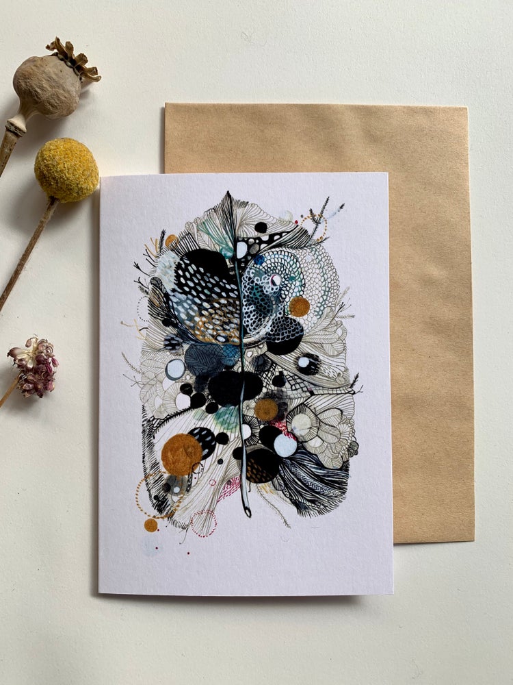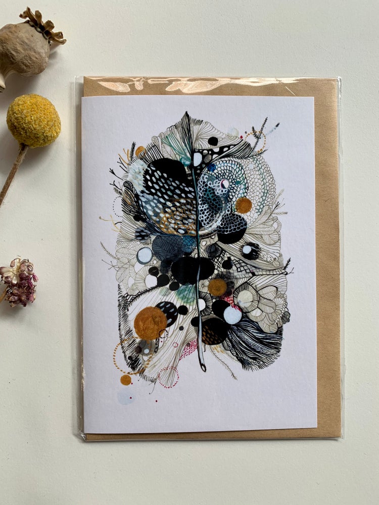‘Grey leaf’ greeting card, c6 size and blank inside.