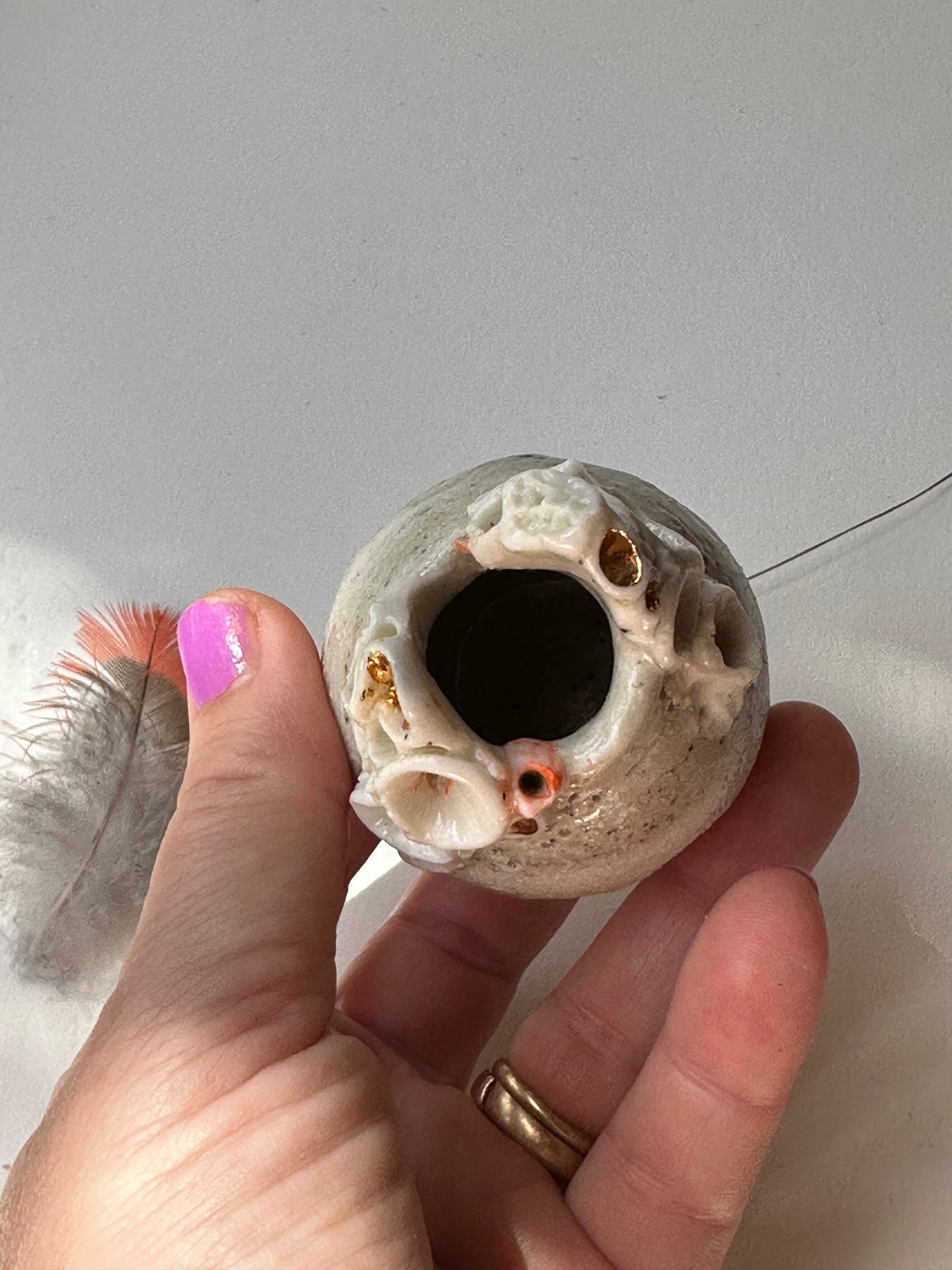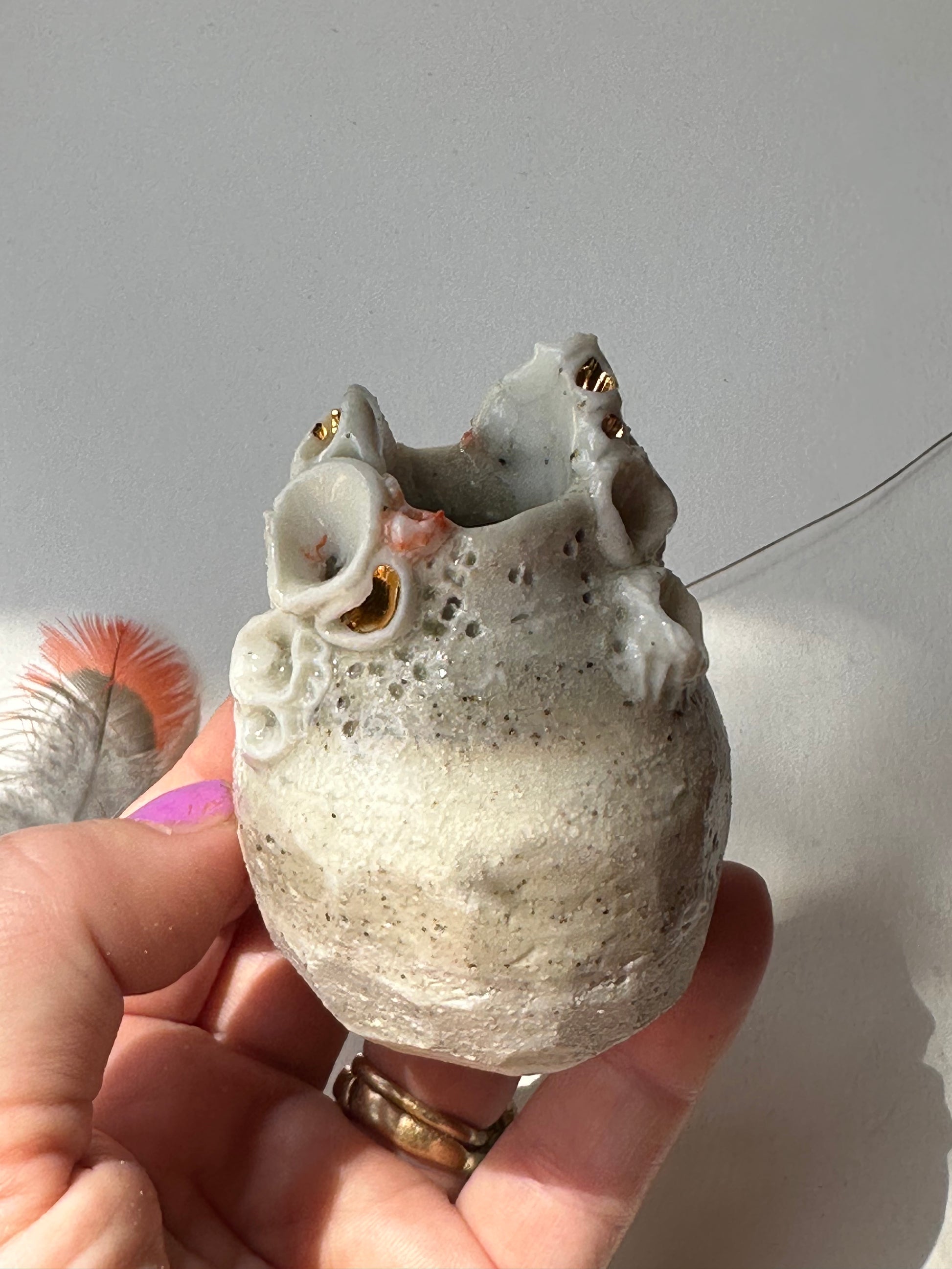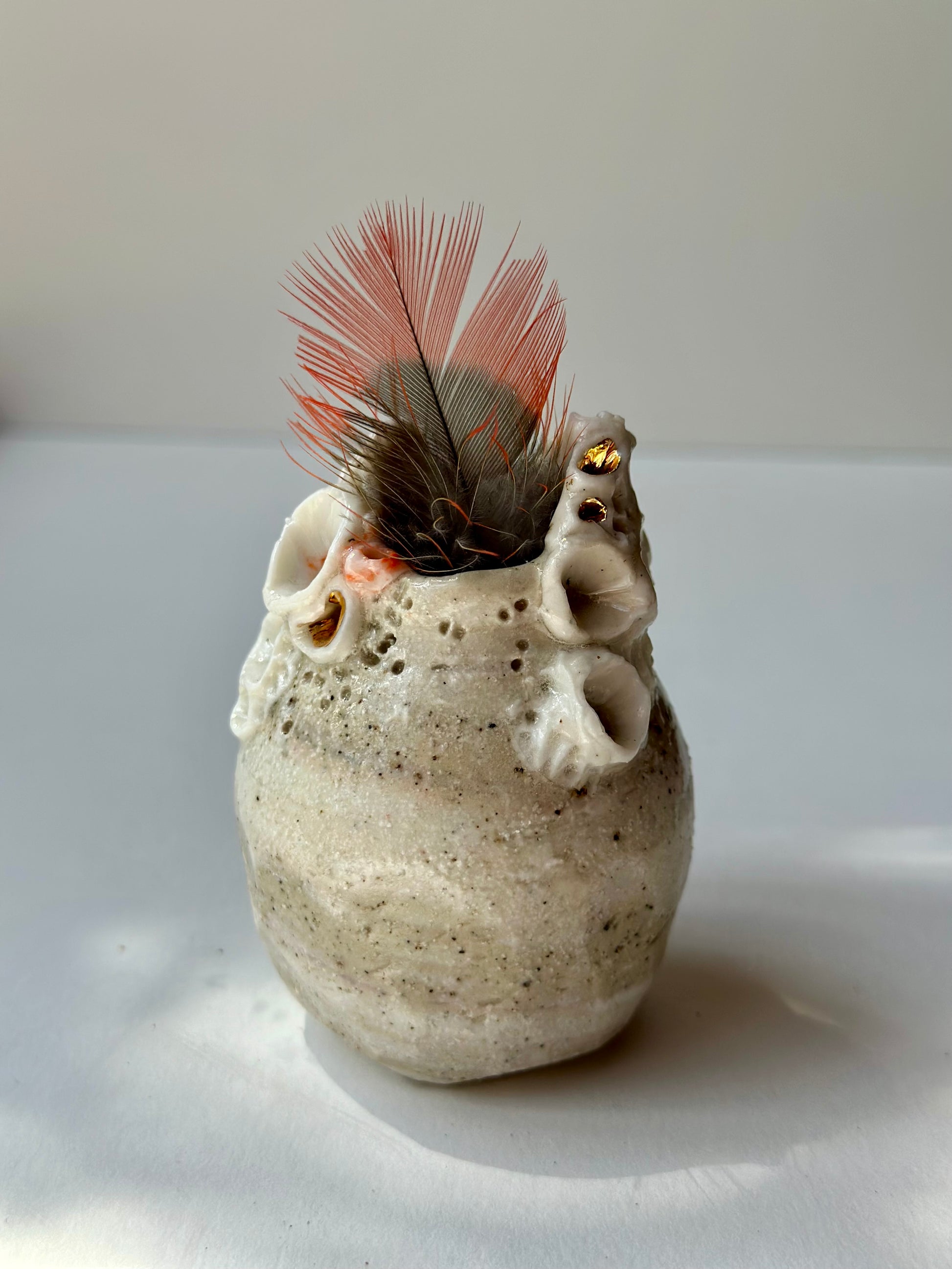 A one of a kind hand formed and hand painted porcelain vase, made by katherine in her home studio in castlemaine, central Vic.