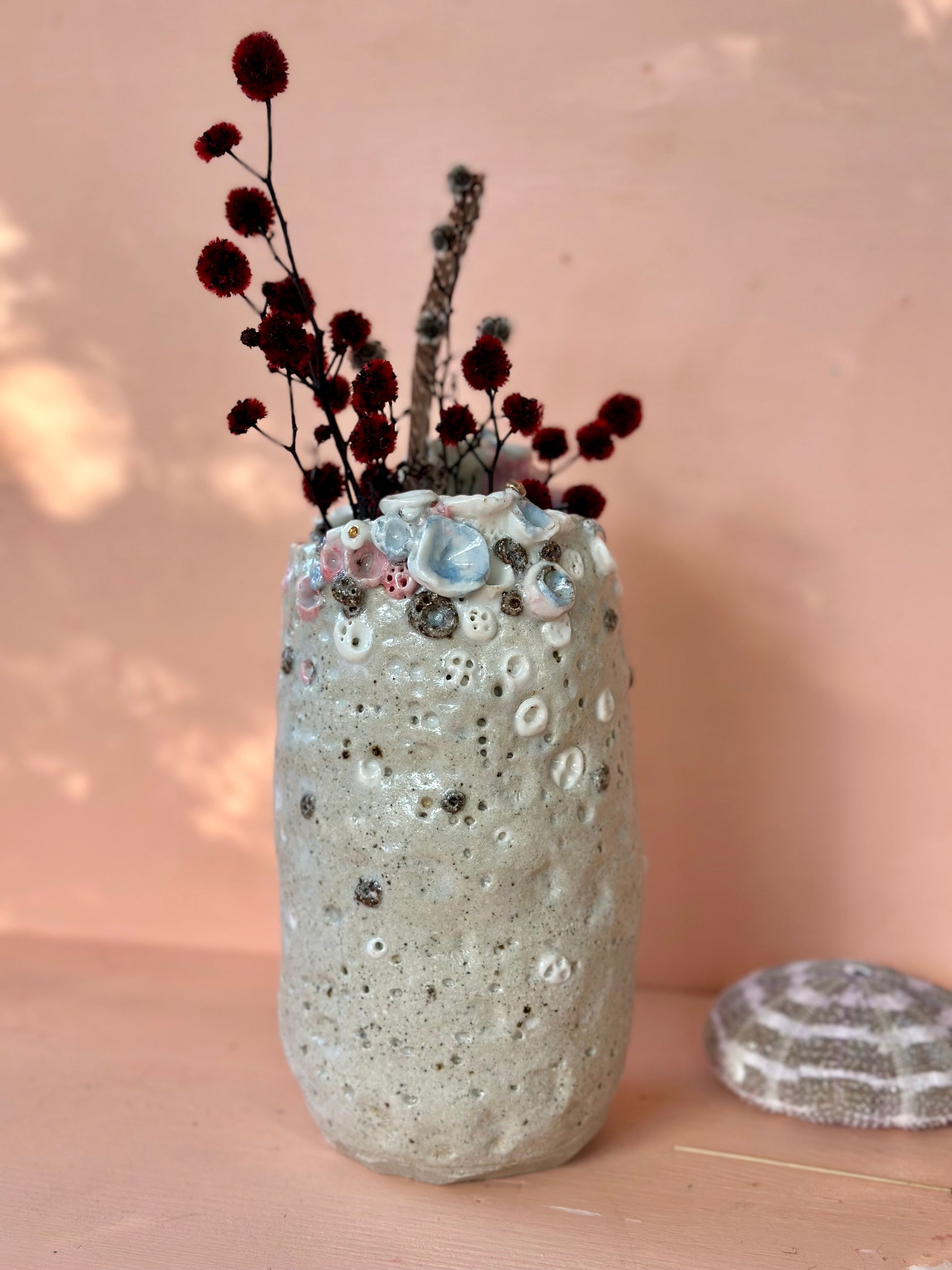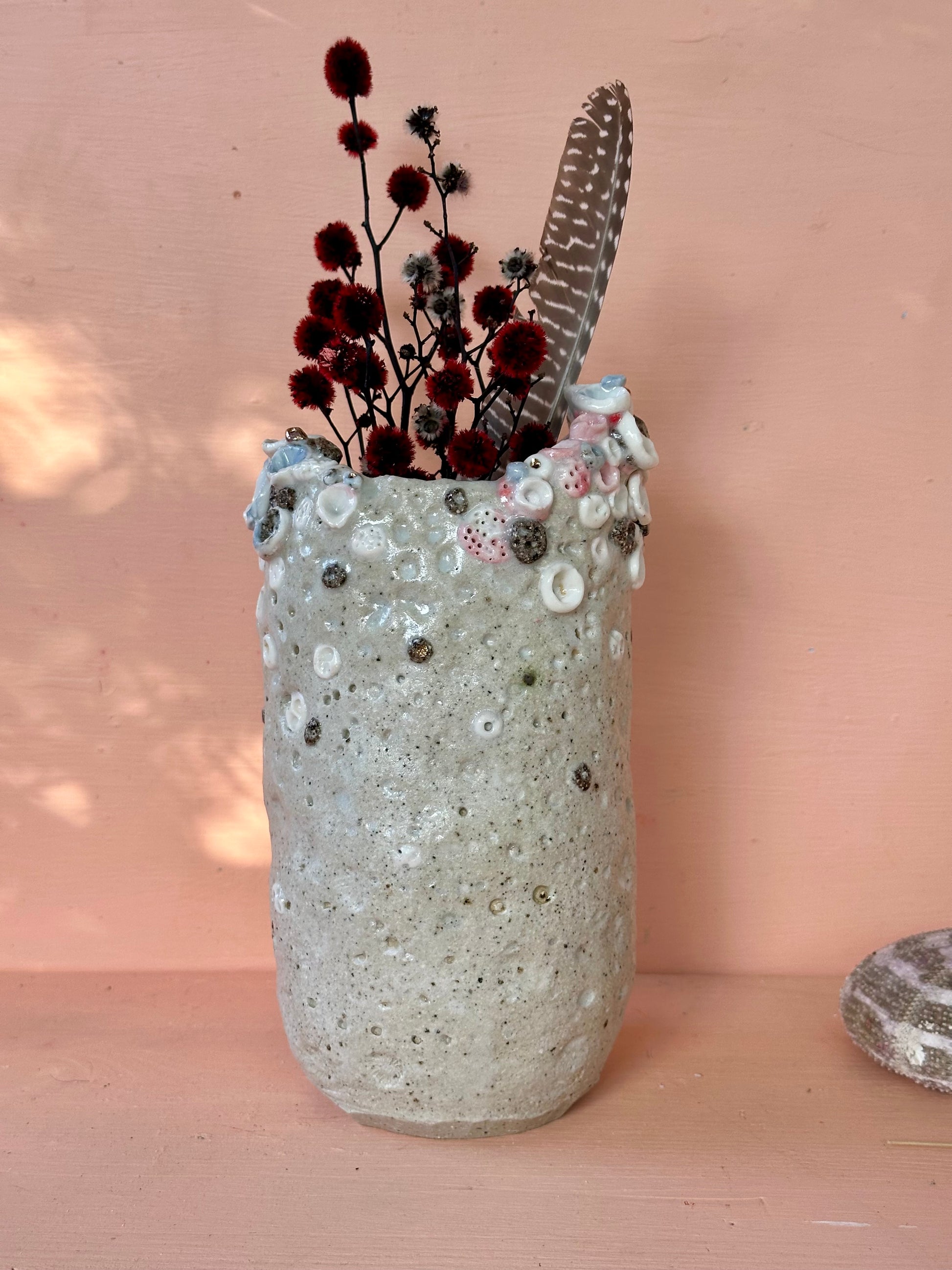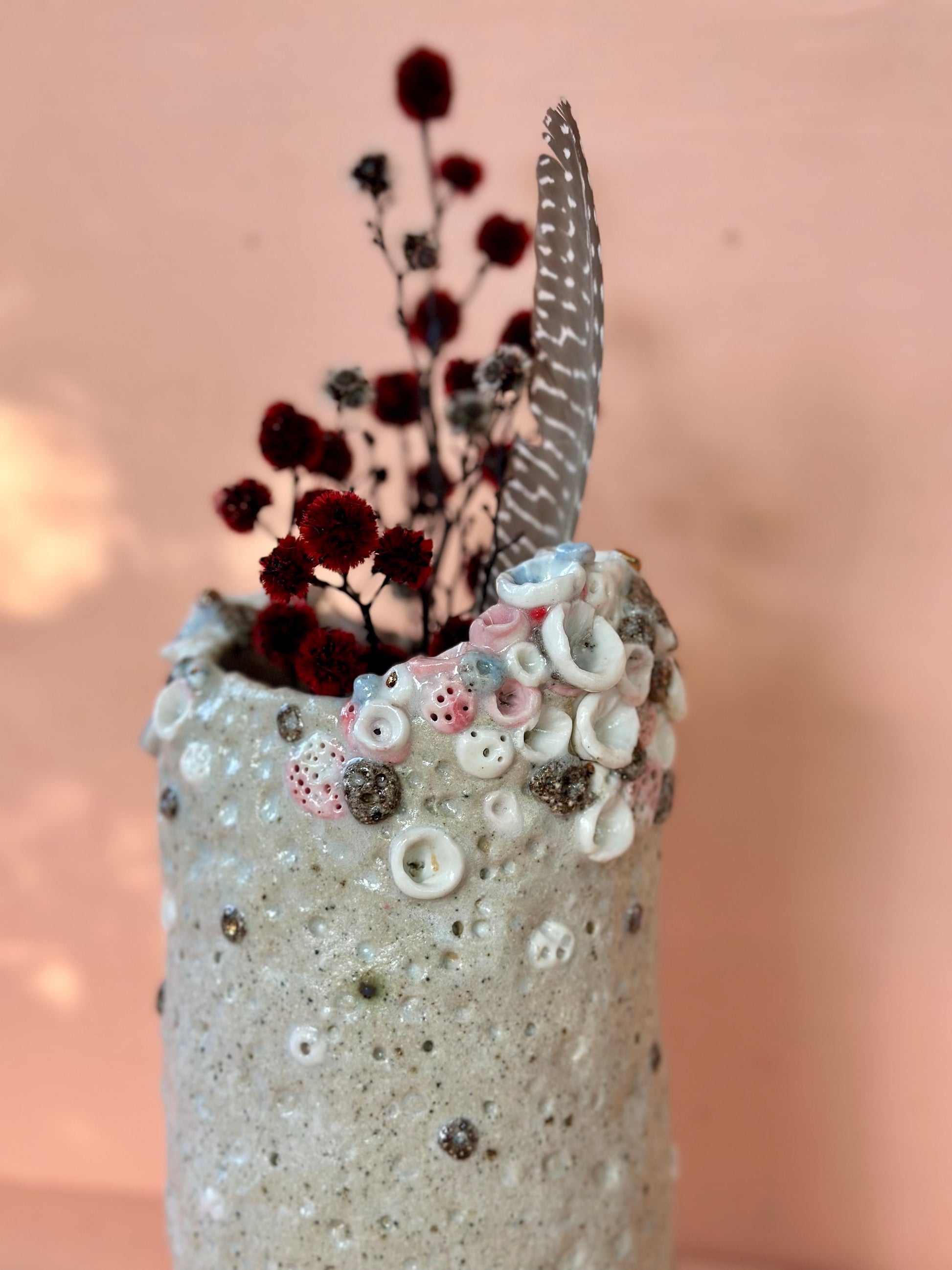 Ppl A one of a kind hand formed and hand painted porcelain vase, made by katherine in her home studio in castlemaine, central Vic.