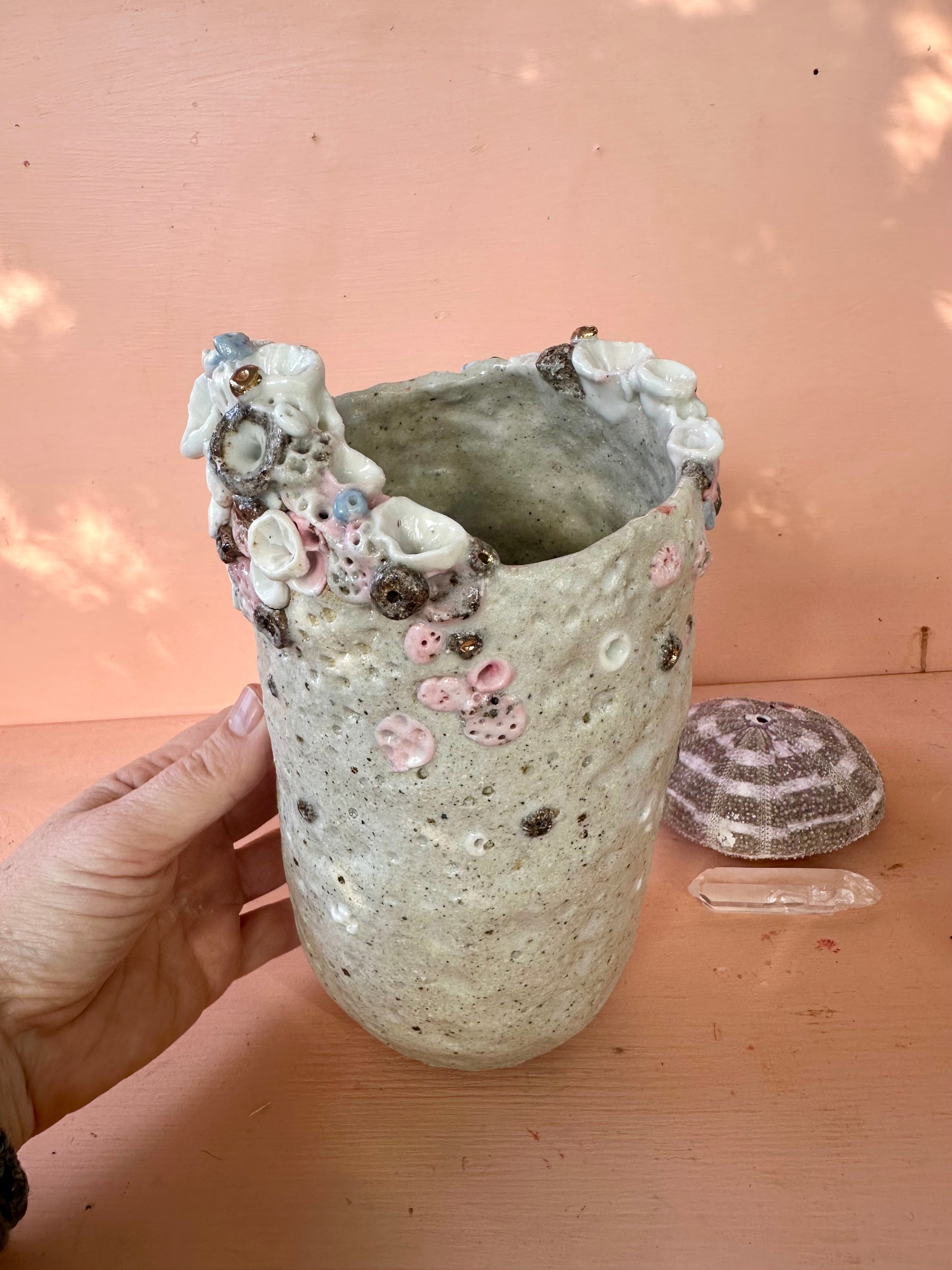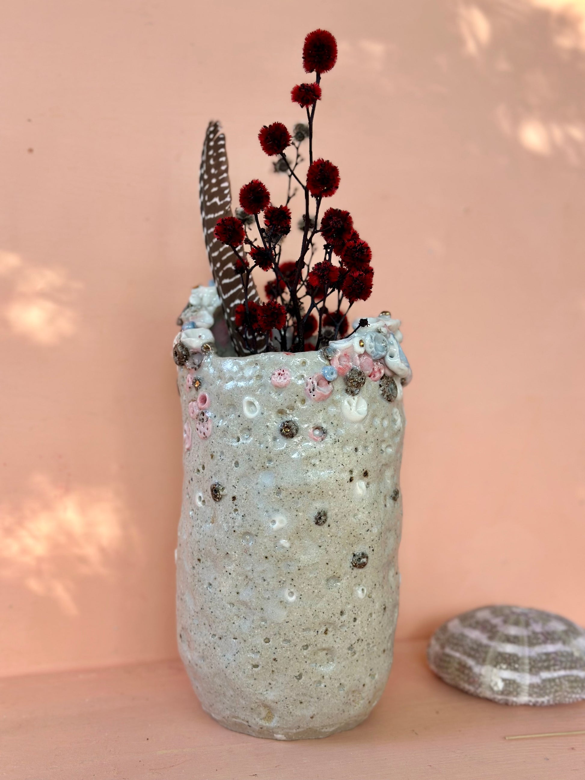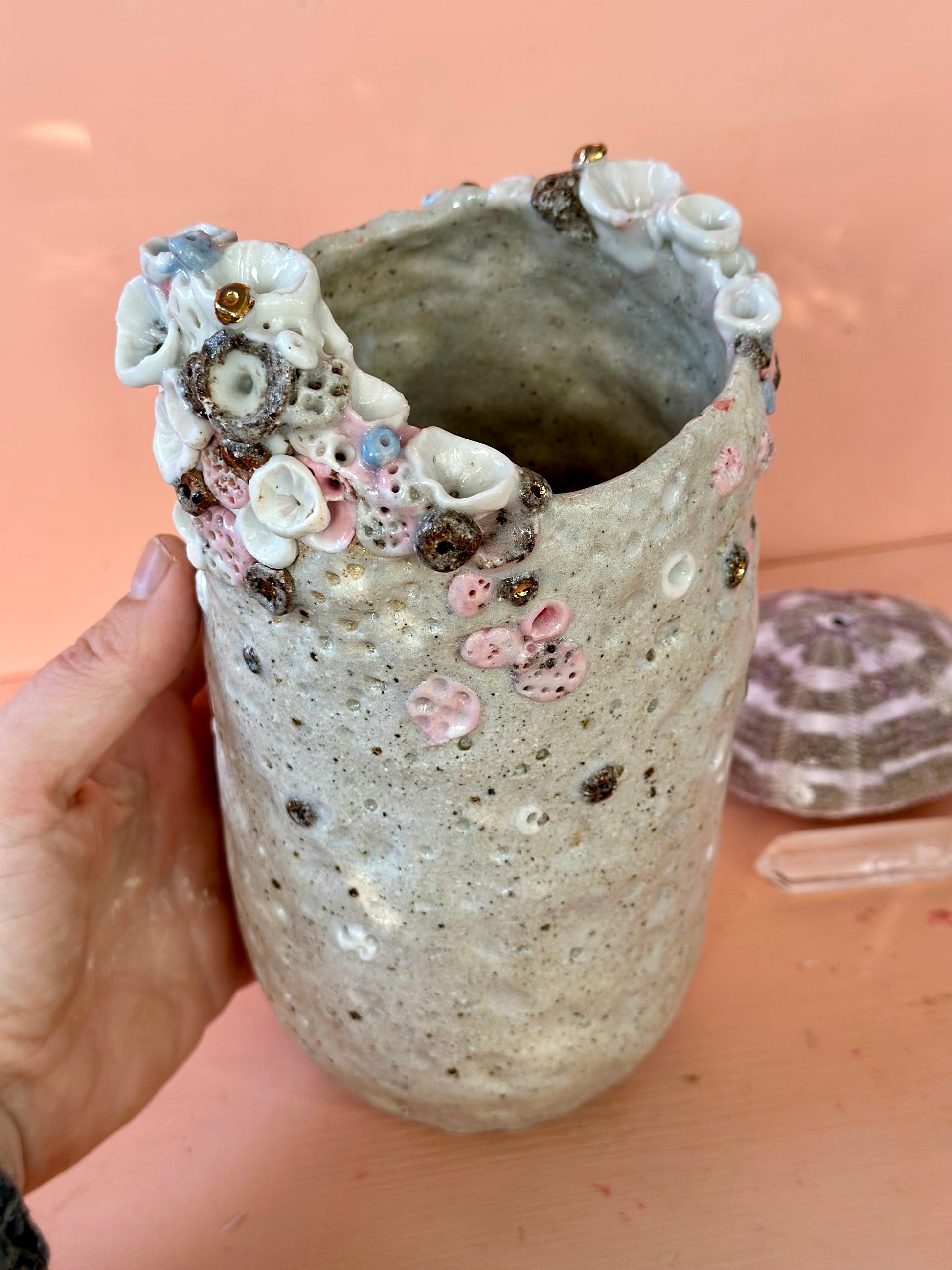 Ppl A one of a kind hand formed and hand painted porcelain vase, made by katherine in her home studio in castlemaine, central Vic.