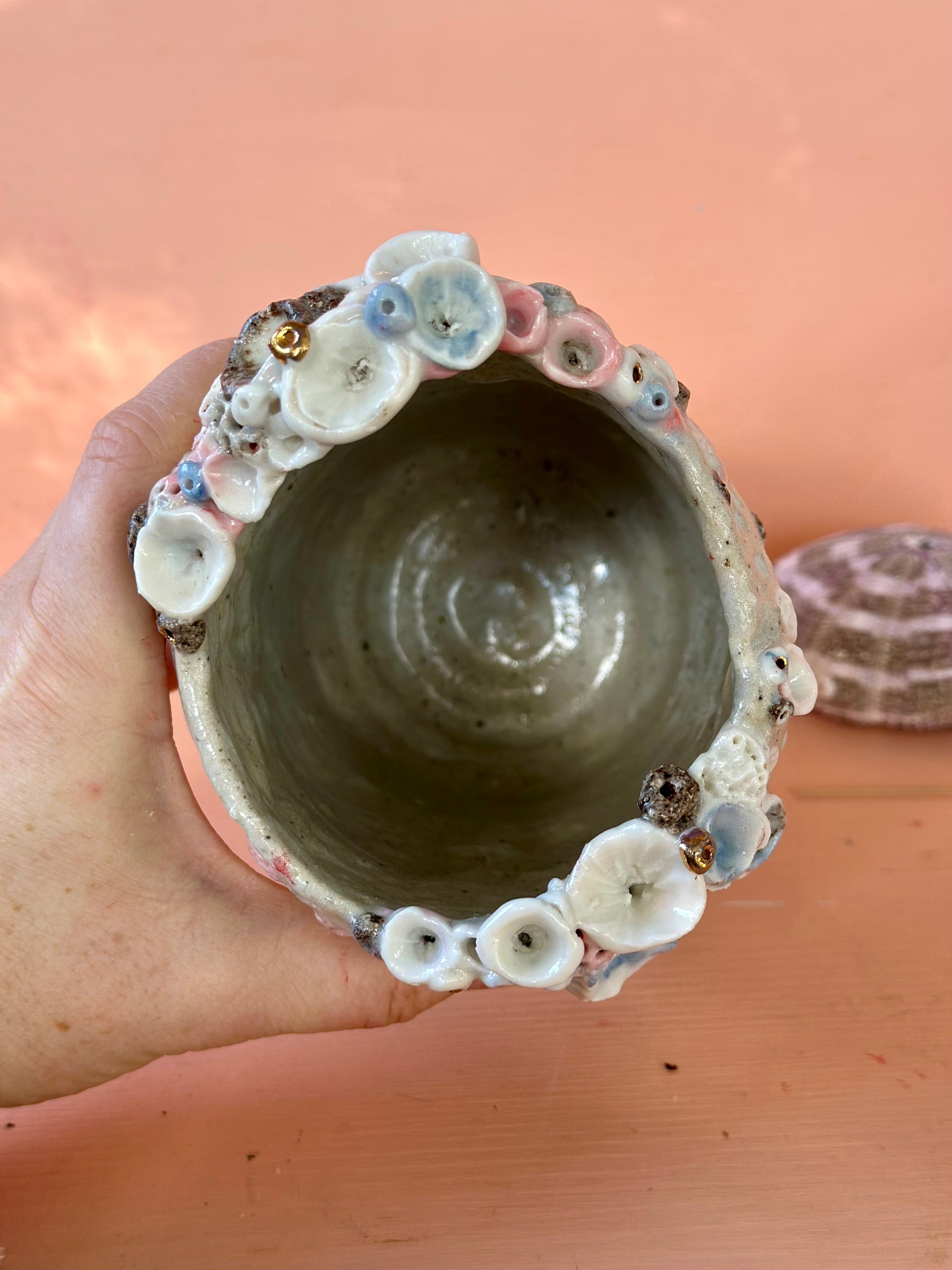 Care: these pieces are fired to high stoneware temperatures, (1260 - 1300 degrees c) to ensure that they are strong and durable. They will withstand normal wear and tear - but will most likely not survive being dropped on hard surfaces ie: tiles or hconcrete. They can be washed in warm water and soap if they become dirty - especially on any unglazed /matte surfaces.