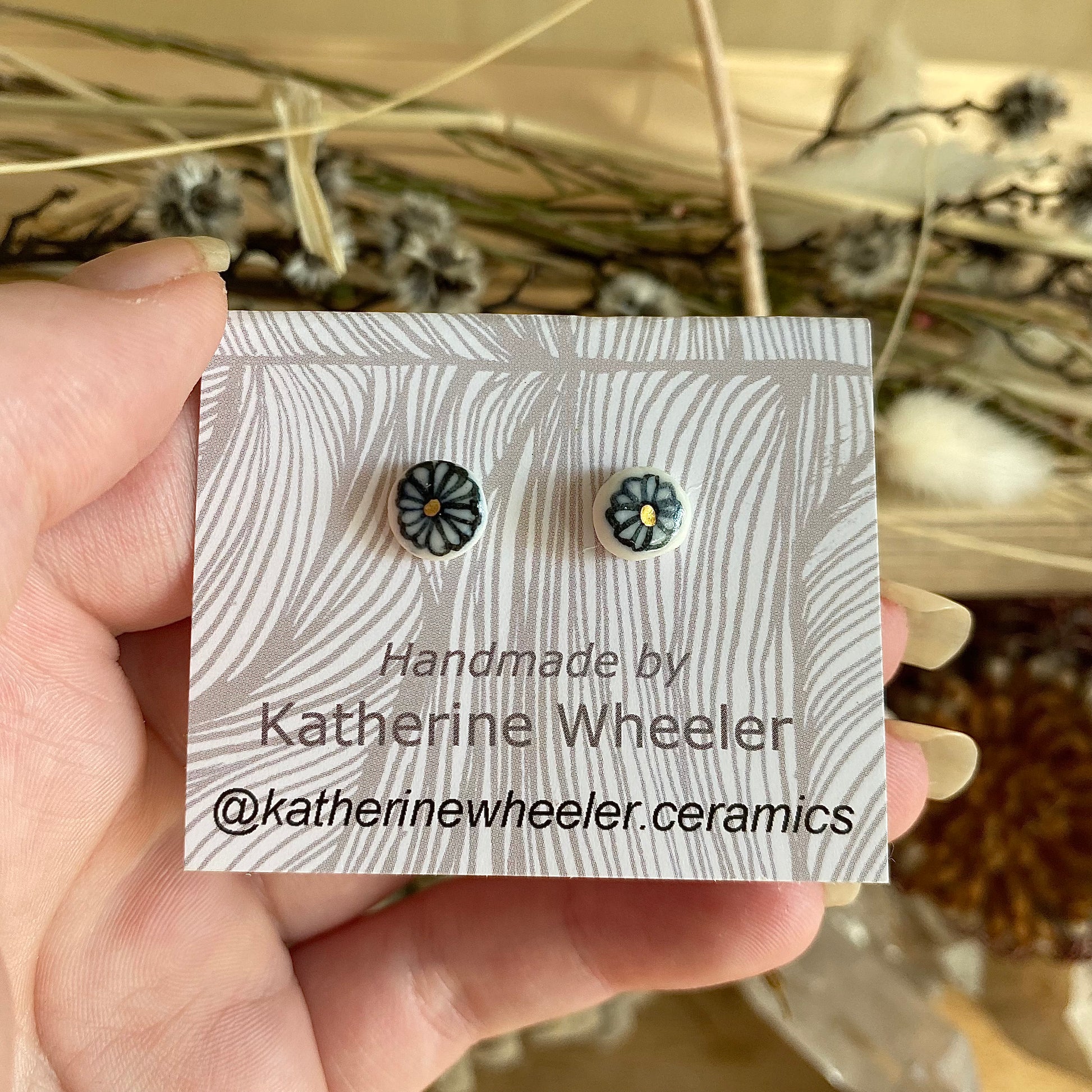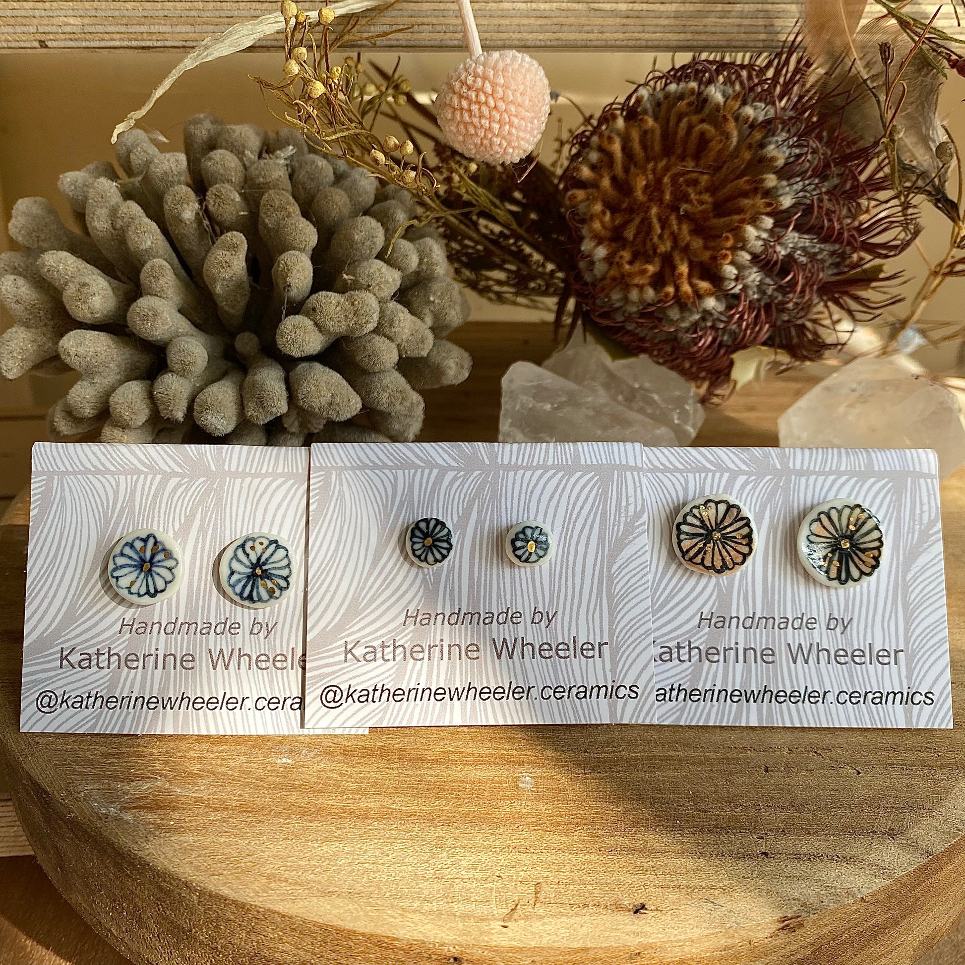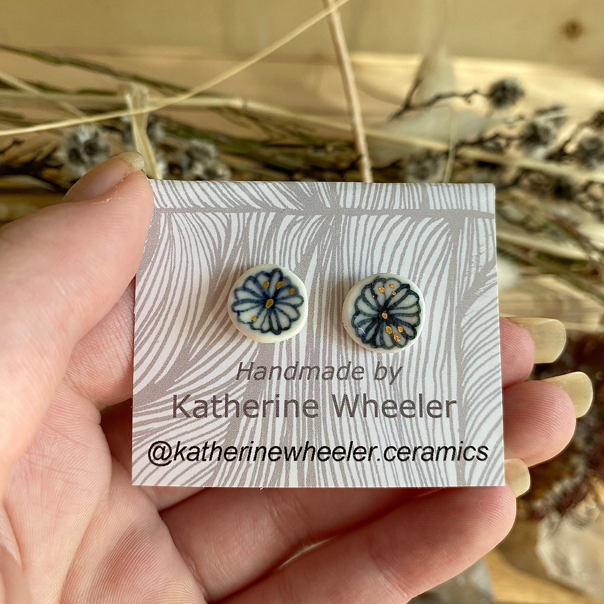 Hand made porcelain stud earrings, on surgical steel posts. Each piece is hand painted on southern ice porcelain, the illustrated design is inspired by the textures and shapes observed while beach combing.