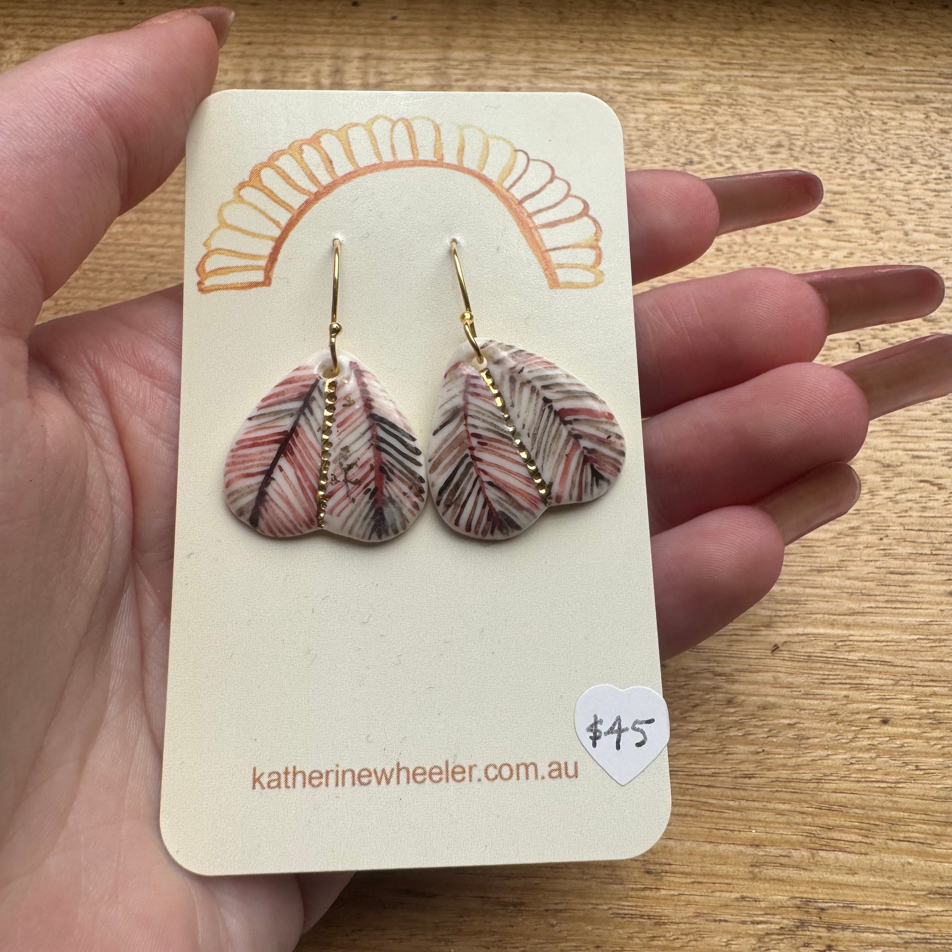 These fun earrings are individually painted in ‘feather’ design, and high fired.