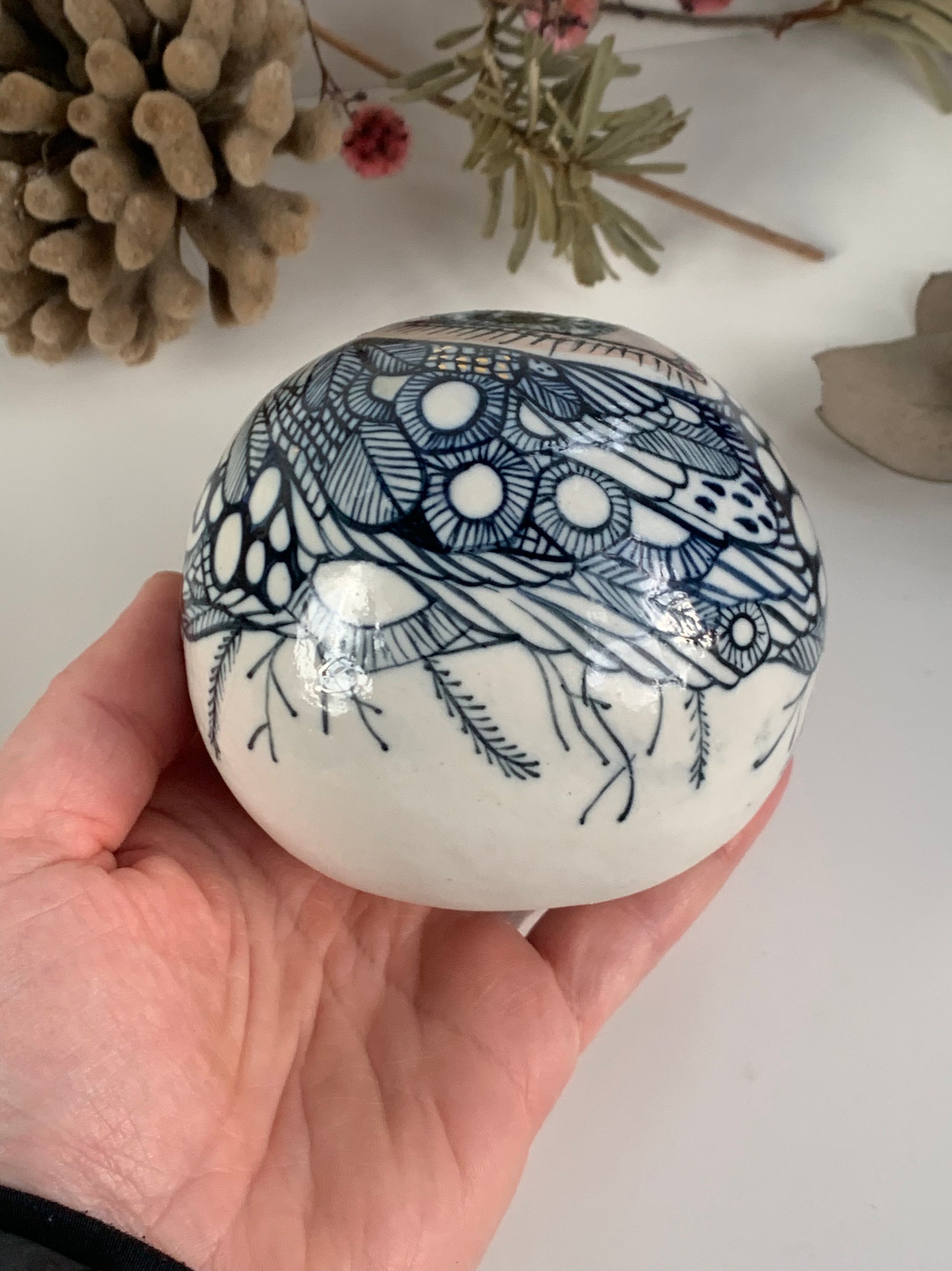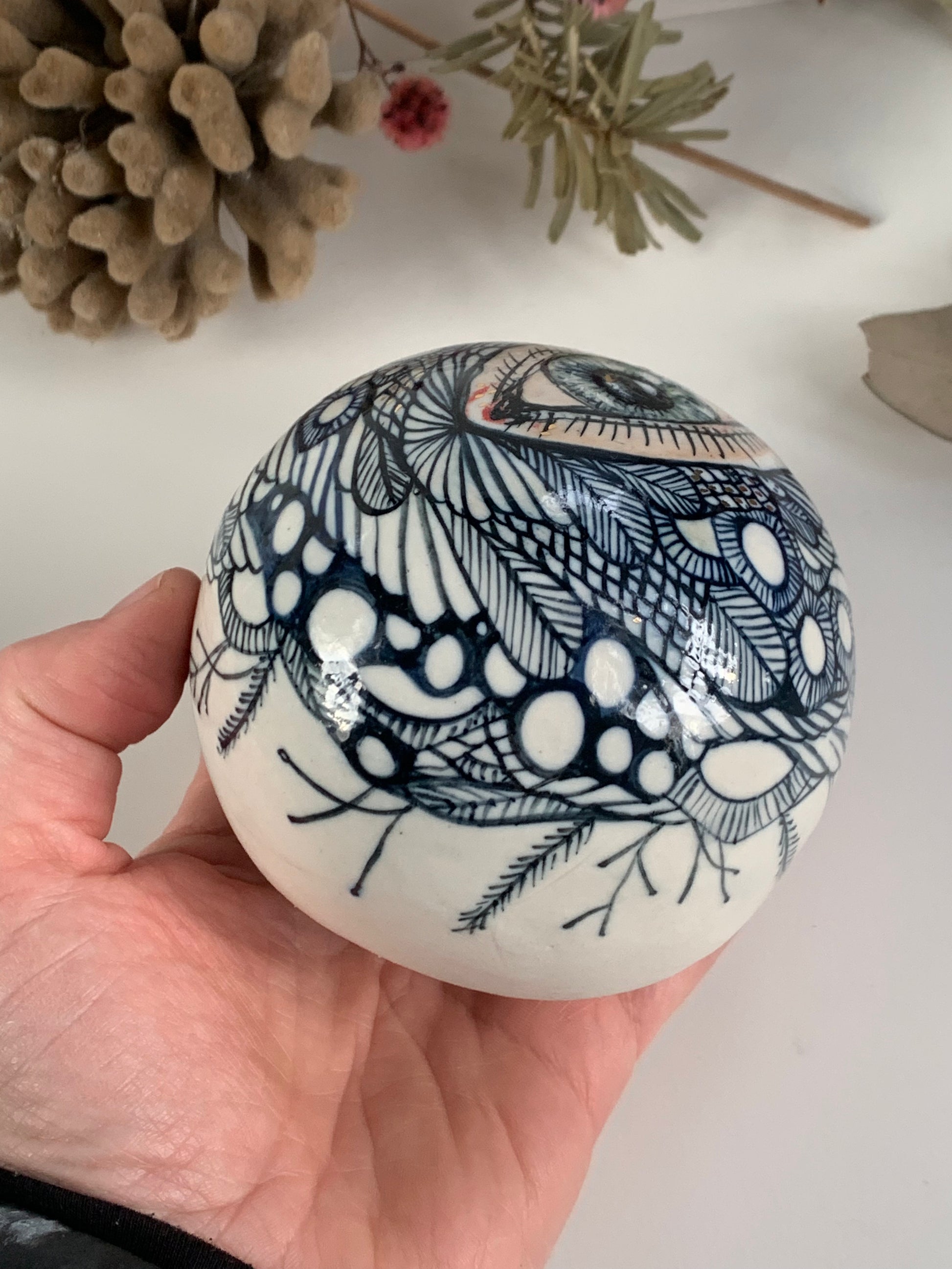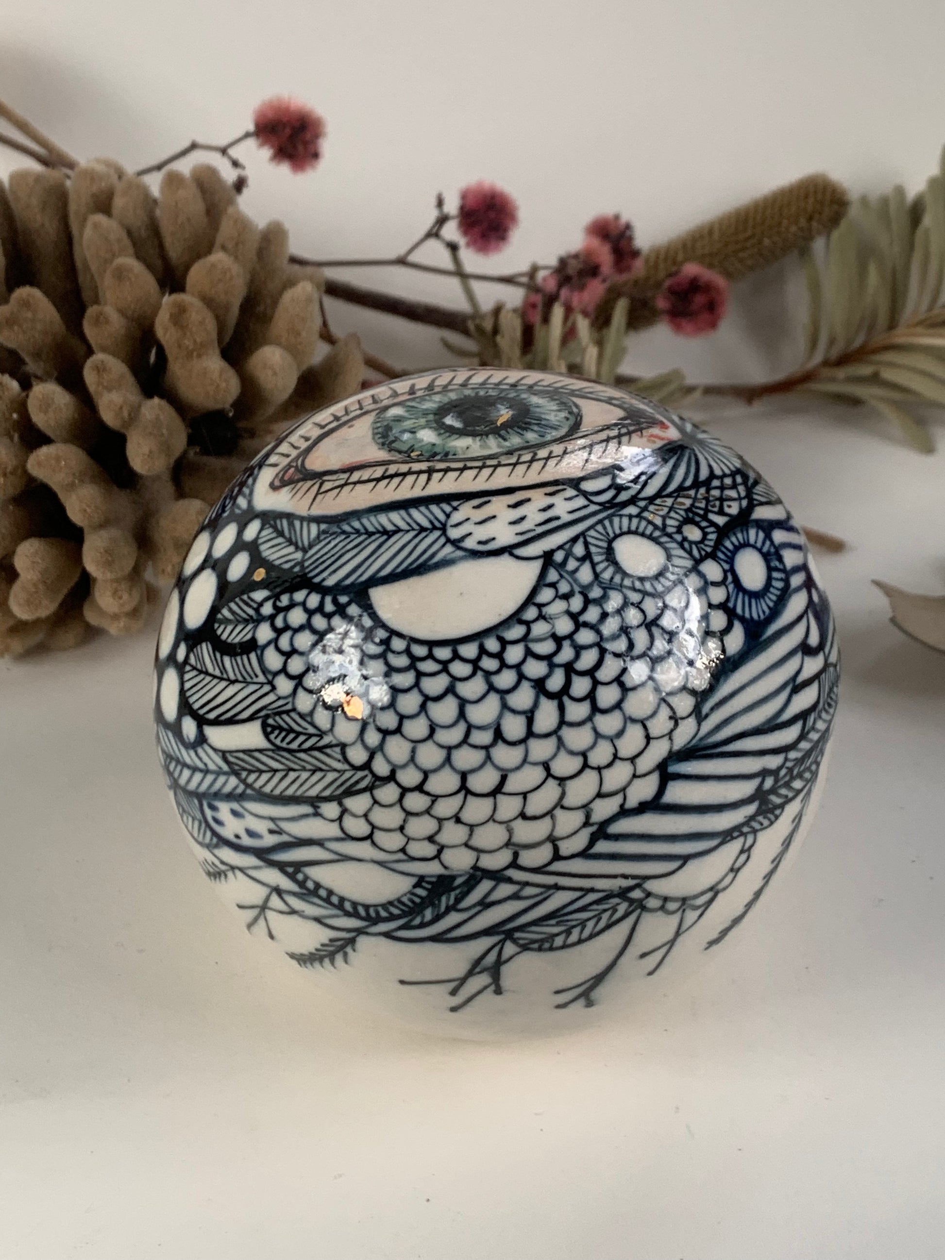 A one of a kind hand formed and hand painted porcelain paper weight/ ornament, made by katherine in her home studio in castlemaine, central Victoria.