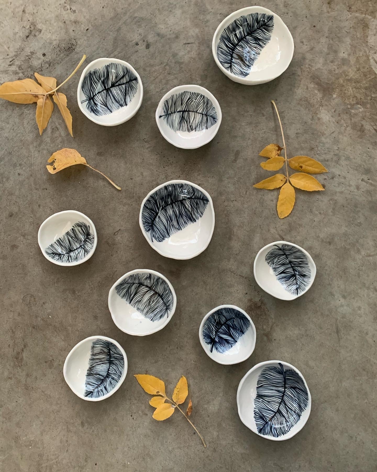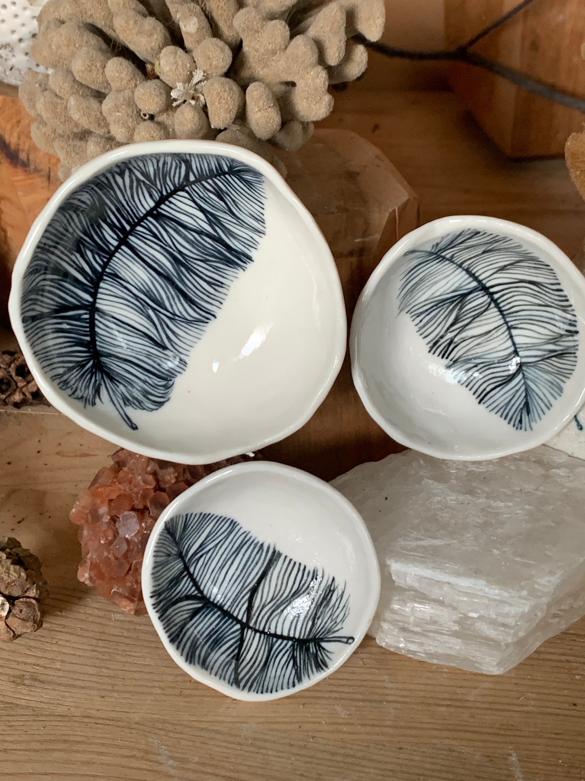Hand Painted Small ‘feather’ Bowl /trinket dish