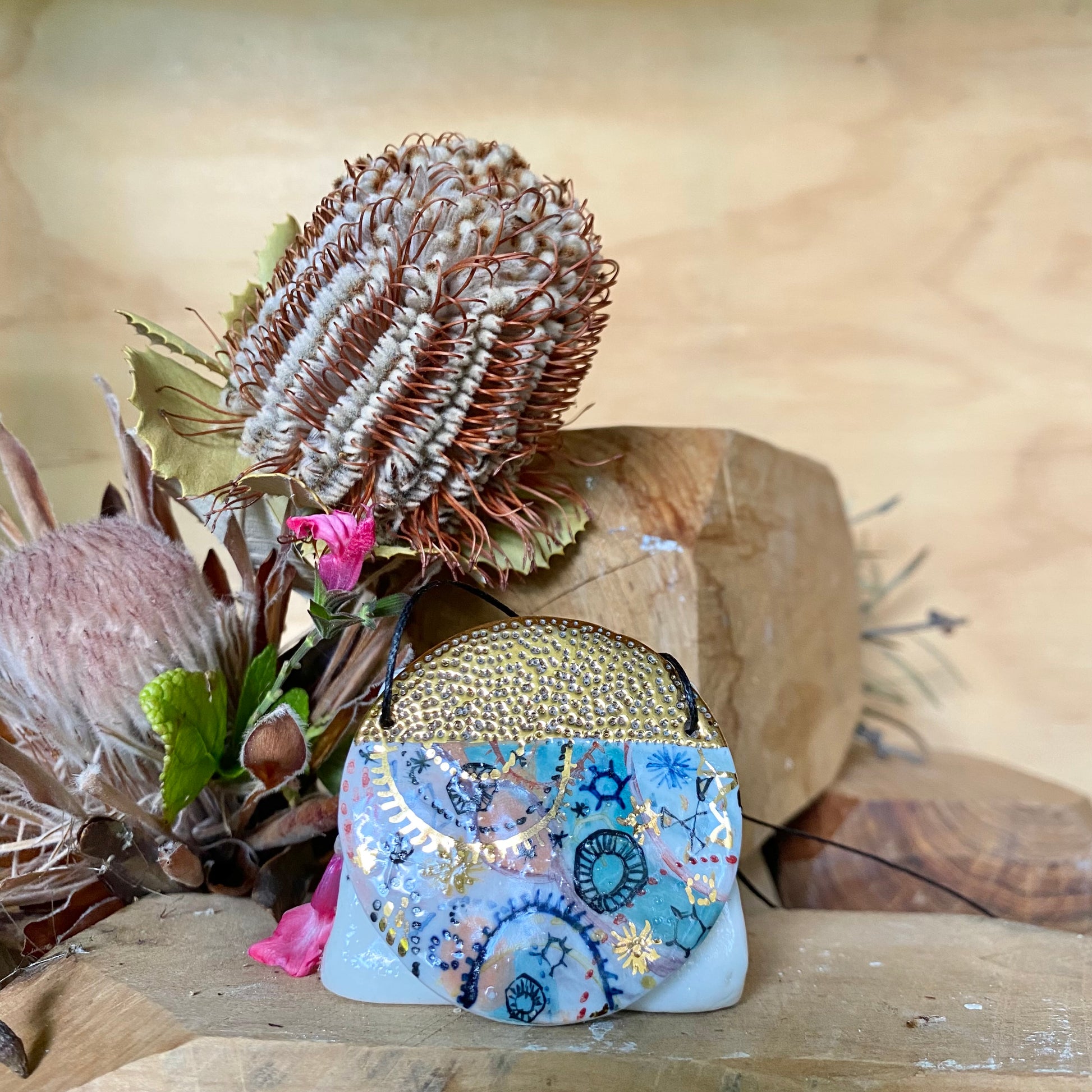 This pendant is a one off piece made by Katherine in her studio in Castlemaine, Victoria.