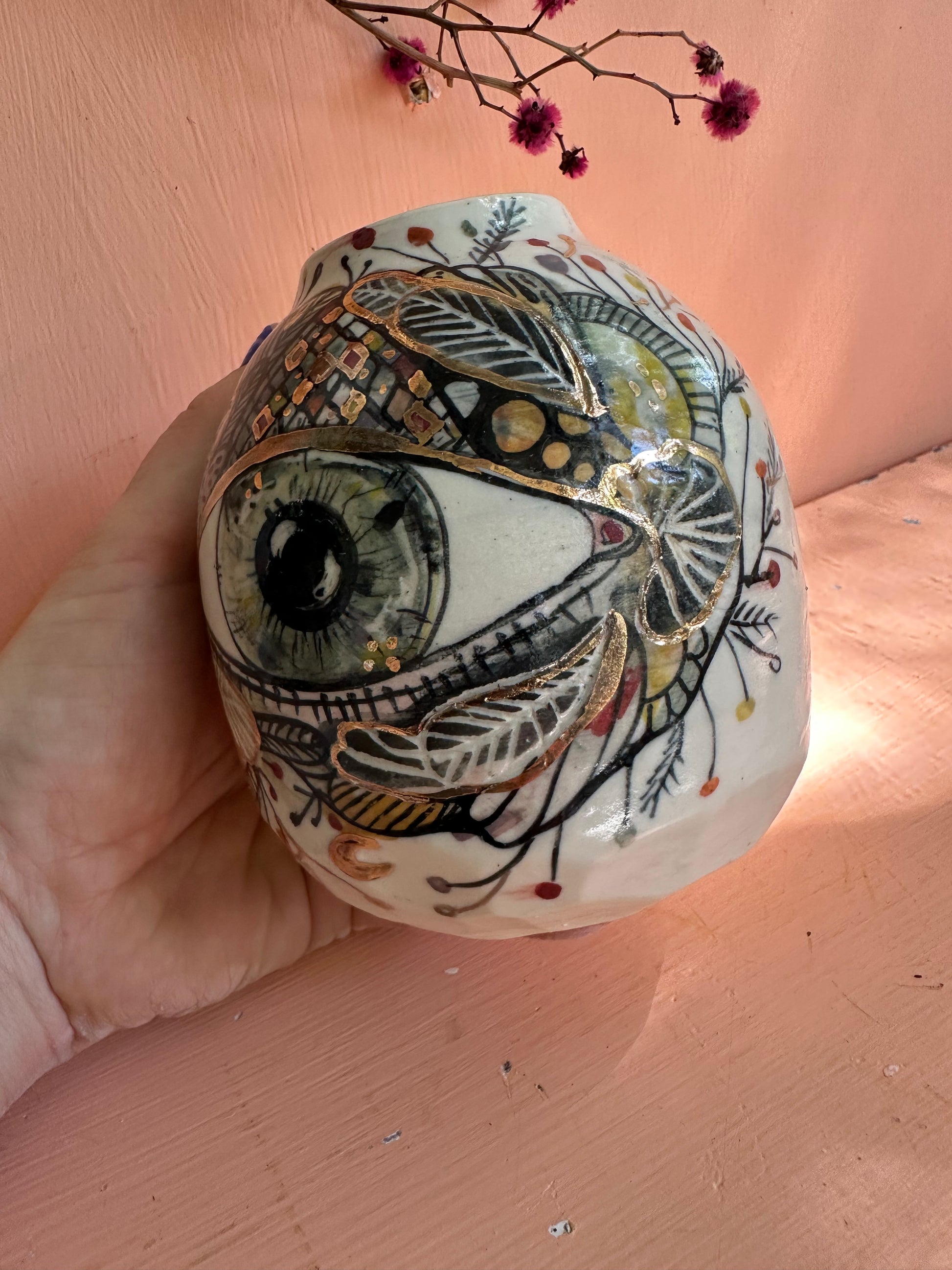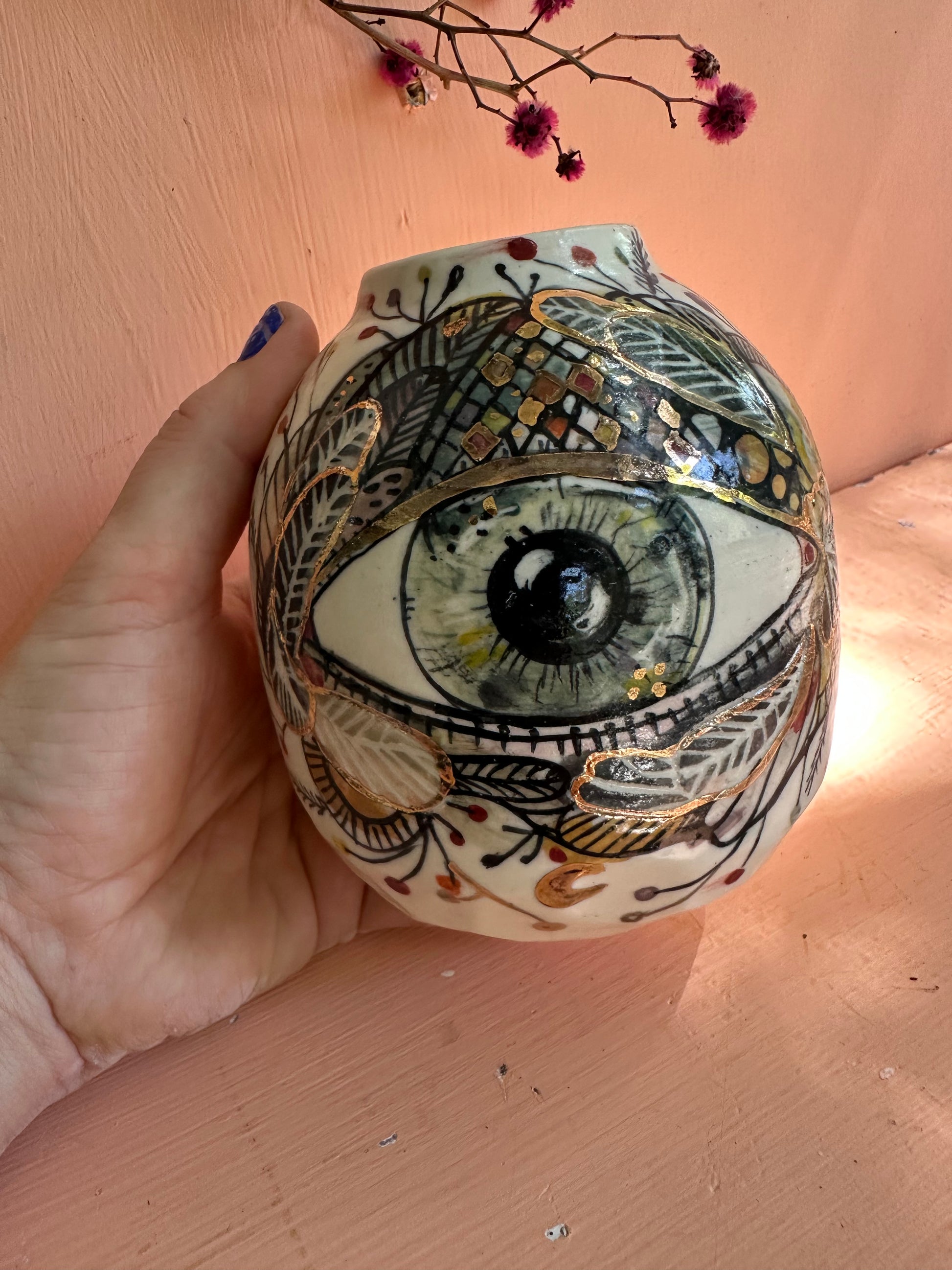 ‘Hand painted ‘the protective eye’ vase