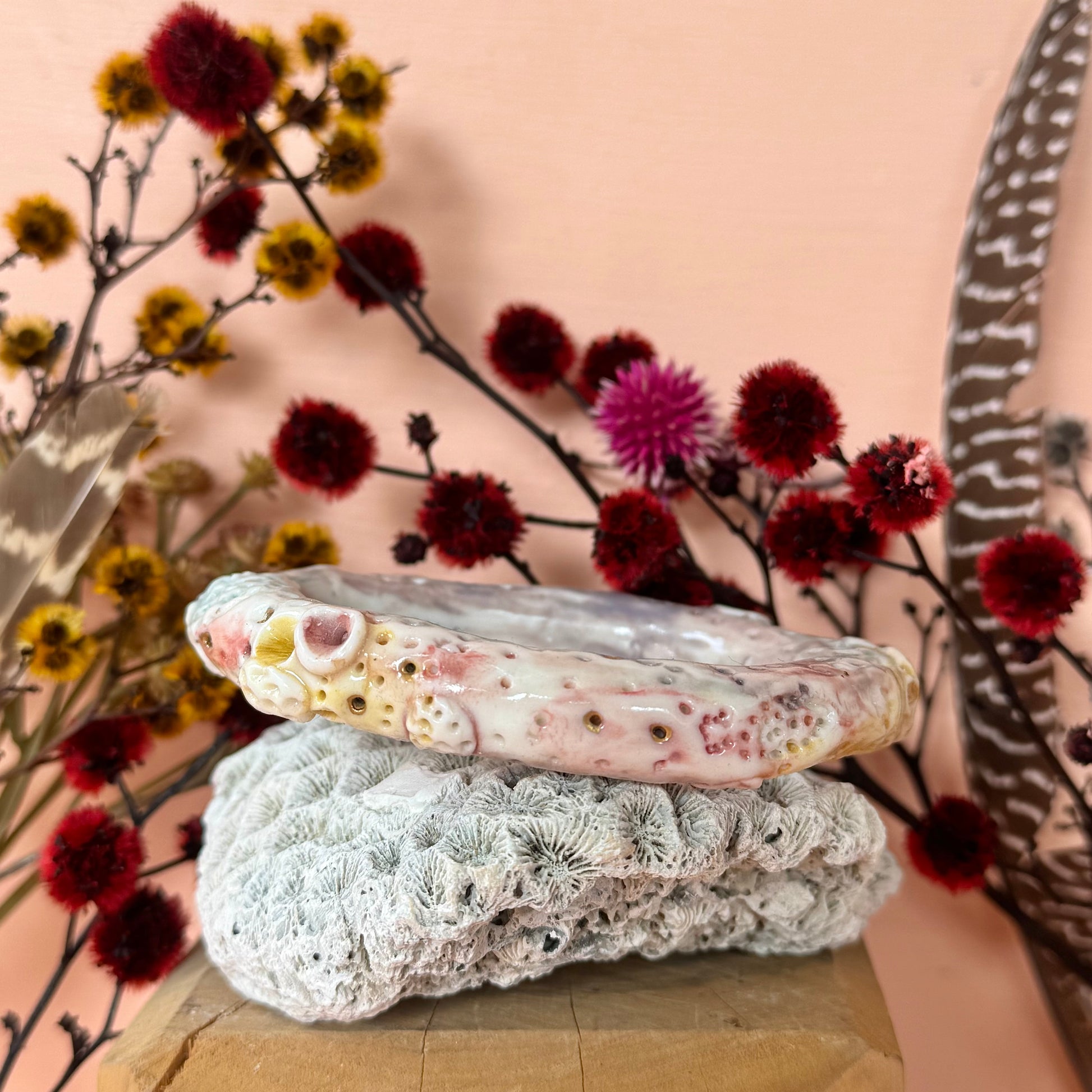 Hand painted ‘coral’ porcelain bangle.