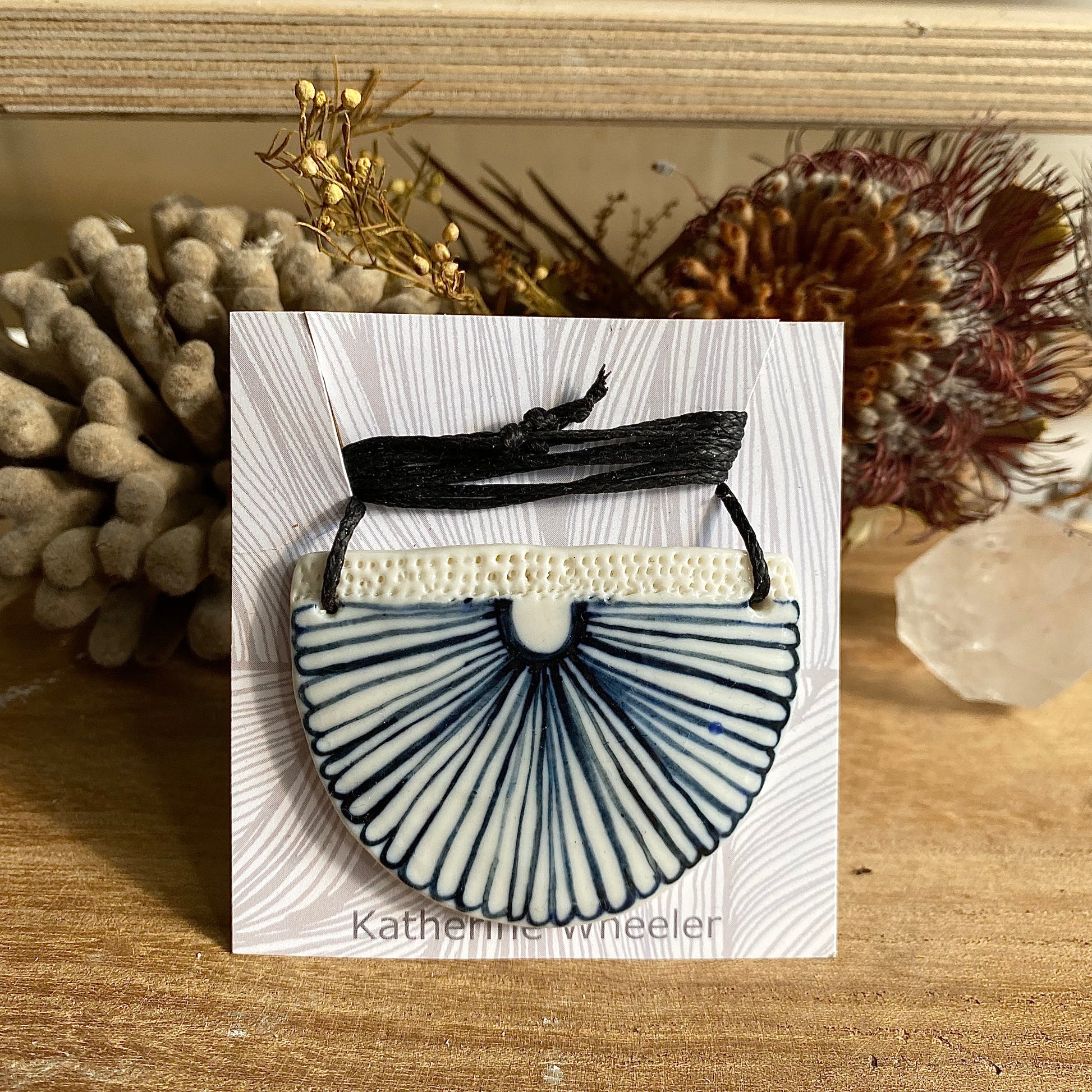 This pendant is a one off piece made by Katherine in her studio in Castlemaine, Victoria.