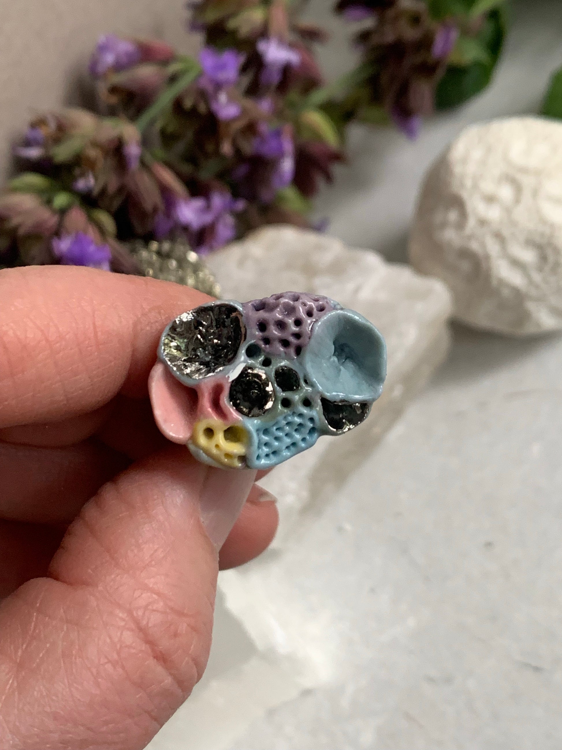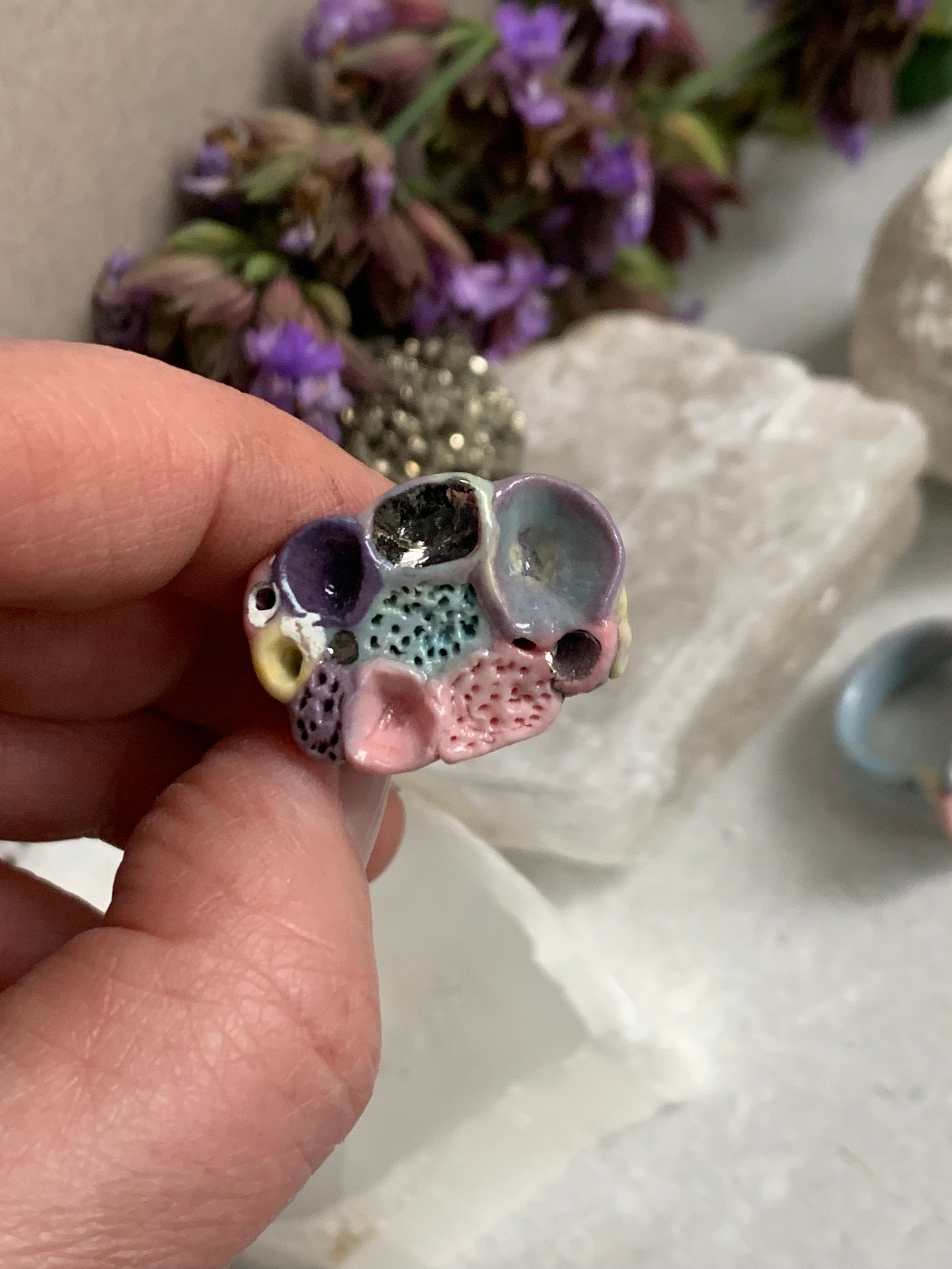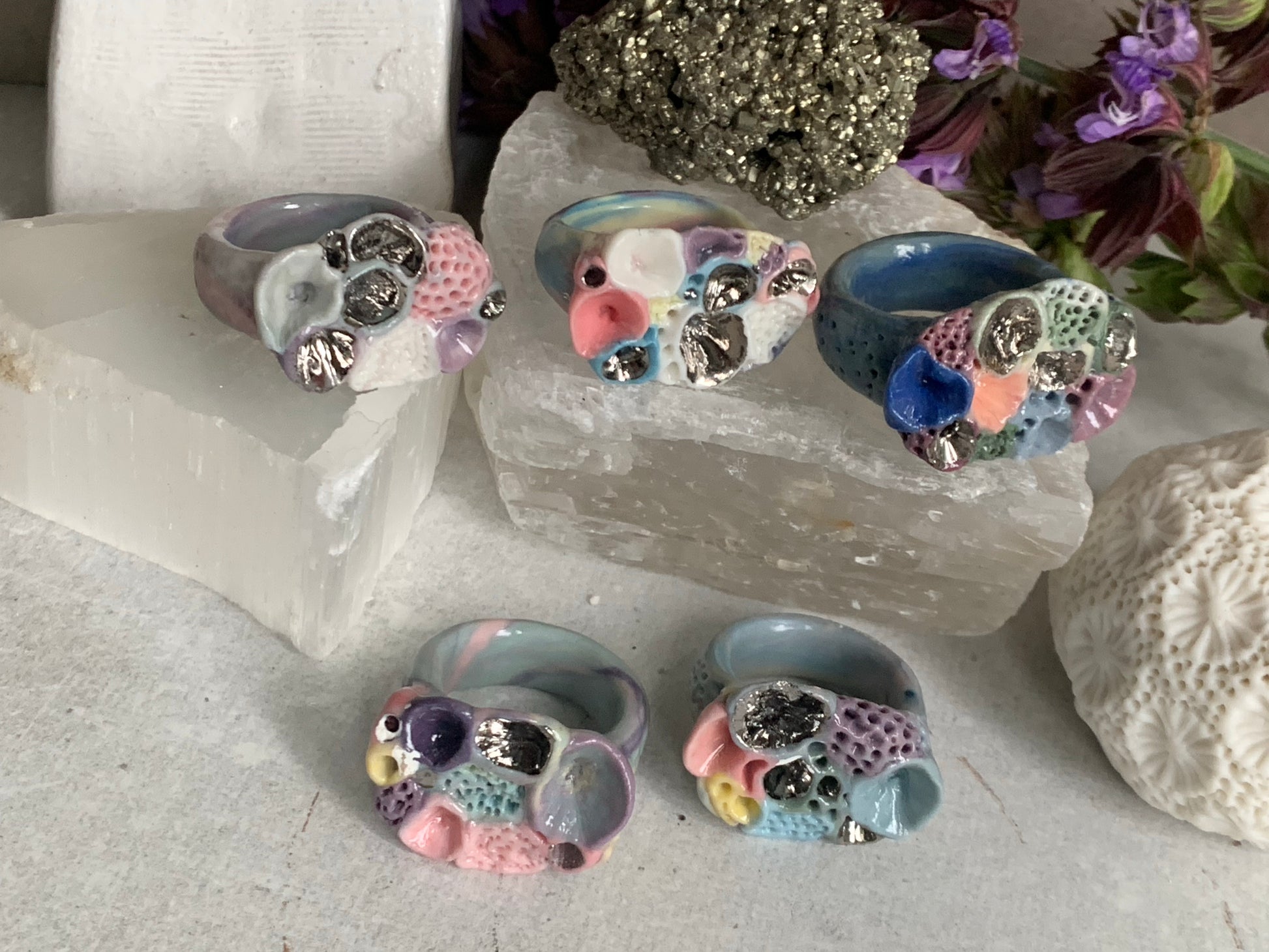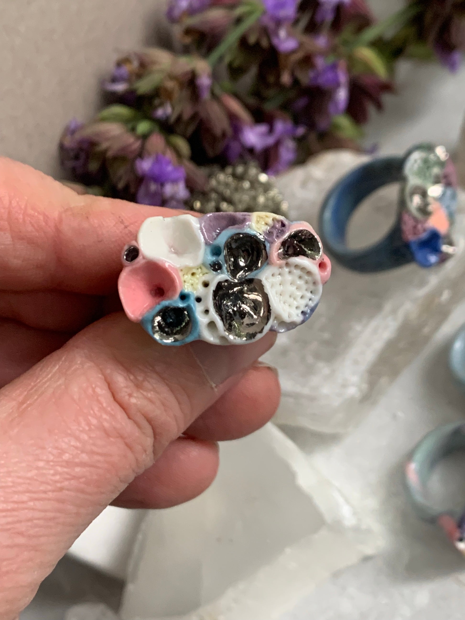 One silver lustre with Blue/ pink / purple tones ‘rock coral’ porcelain ring