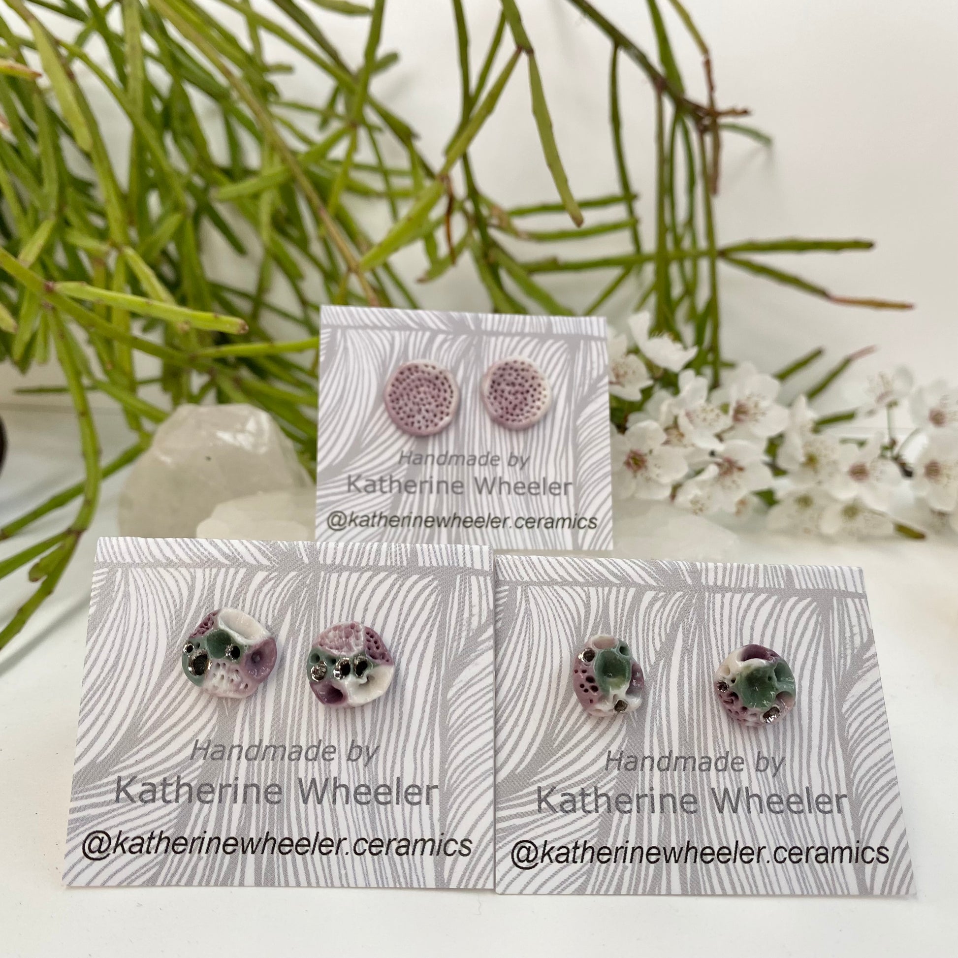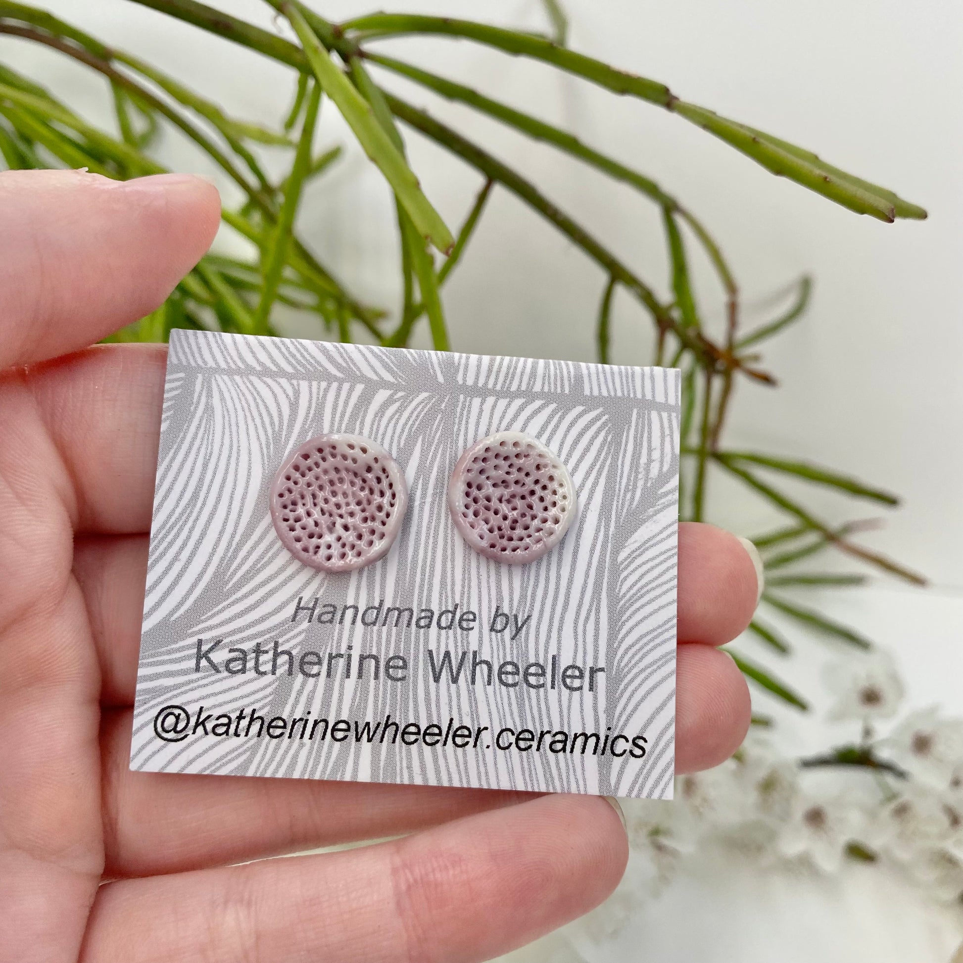 Hand made porcelain stud earrings, on surgical steel posts. Each piece is hand painted on southern ice porcelain, the illustrated design is inspired by the textures and shapes observed while beach combing.