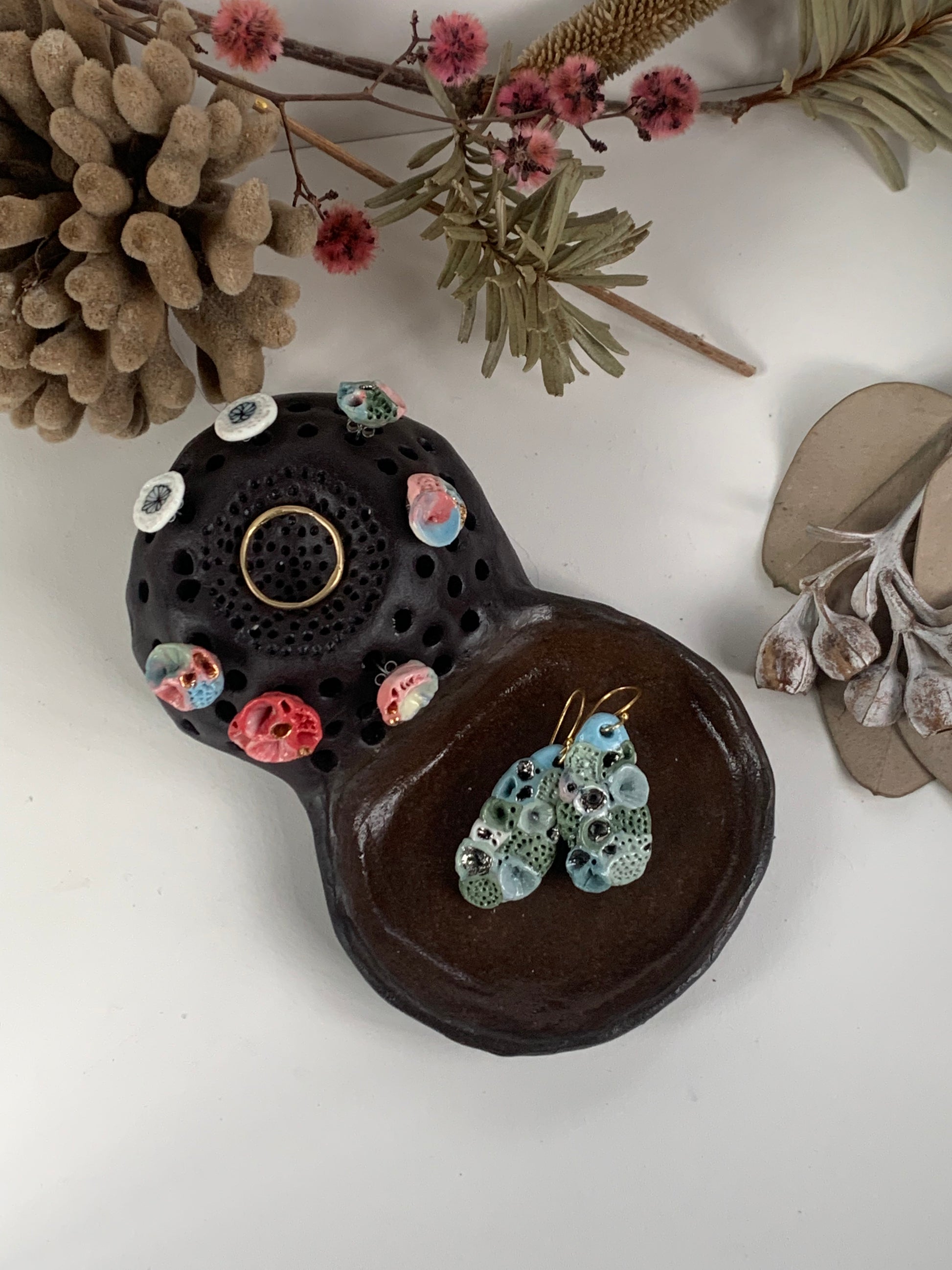 ‘Rock pool’ earring / feather /jewellery dried flower stand.