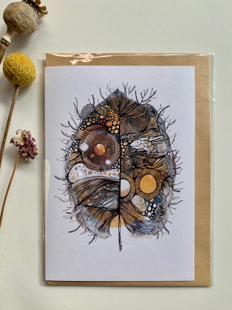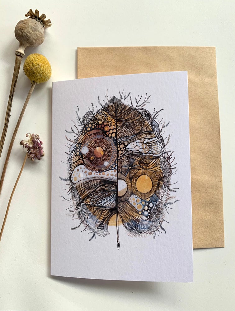 ‘Sepia leaf’ greeting card, c6 size and blank inside.