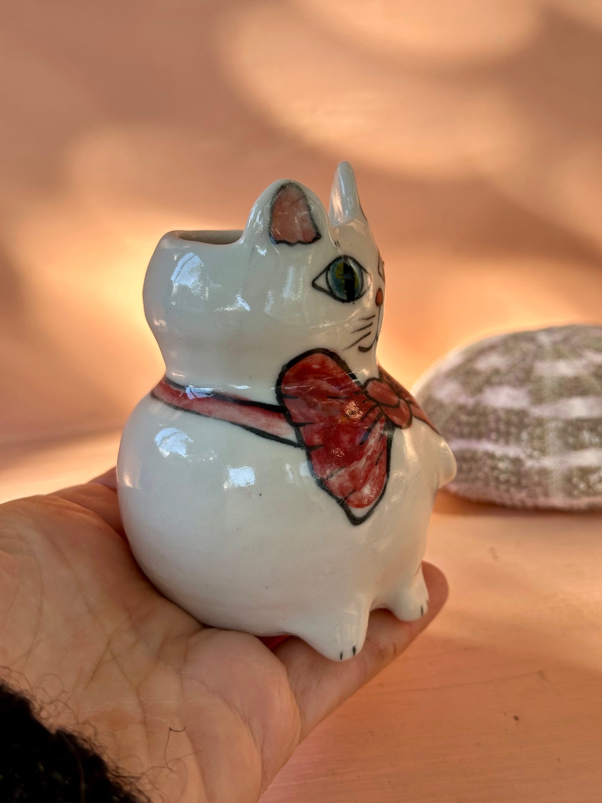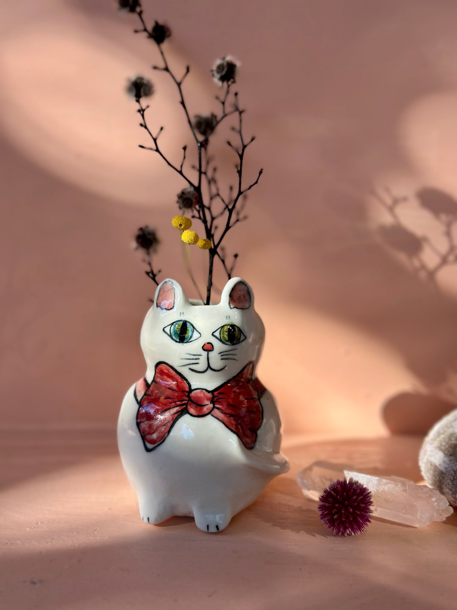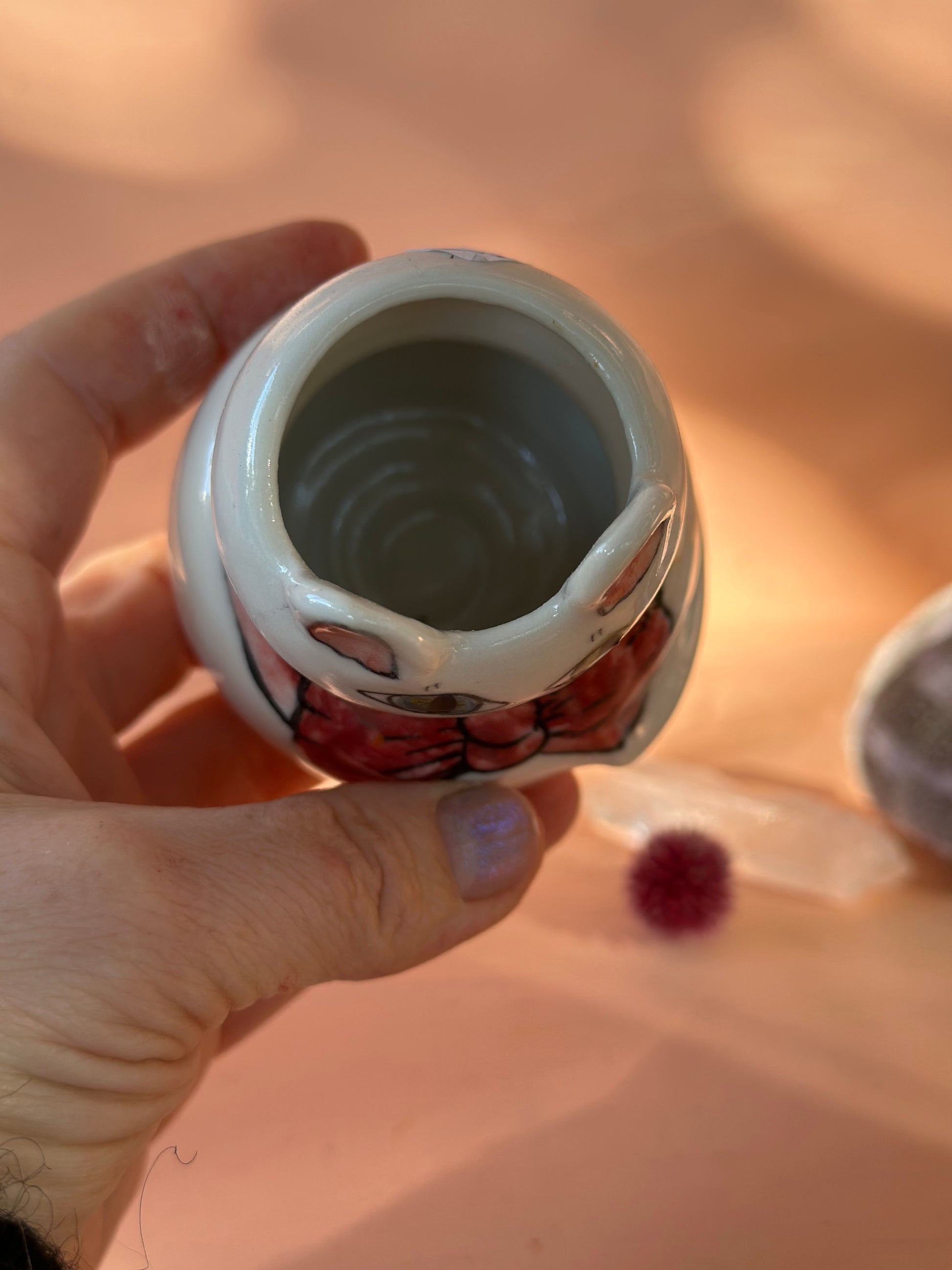 A one of a kind hand formed and hand painted porcelain vase, made by katherine in her home studio in castlemaine, central Vic.