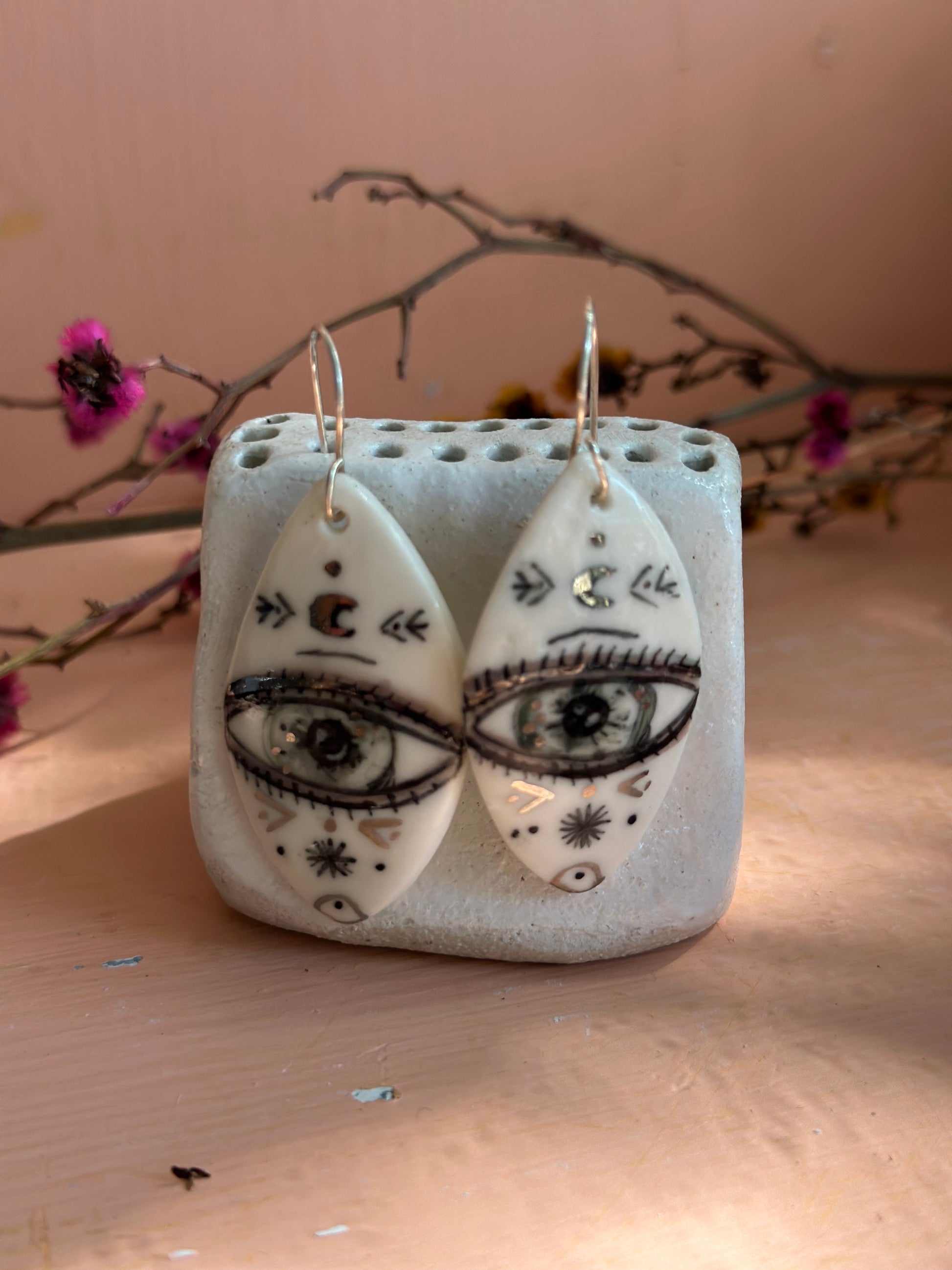‘The Protective Eye’ Porcelain Earrings With Platinum Detail