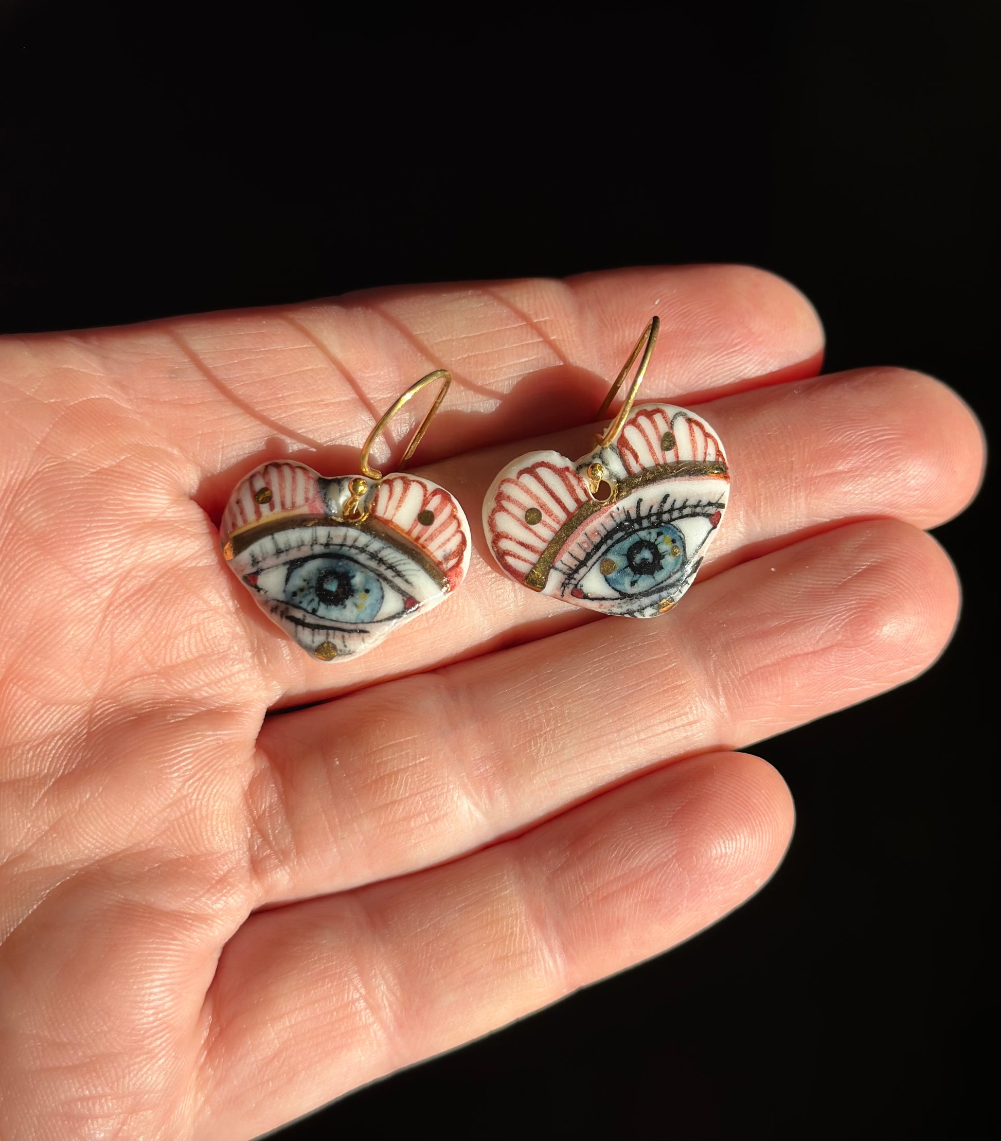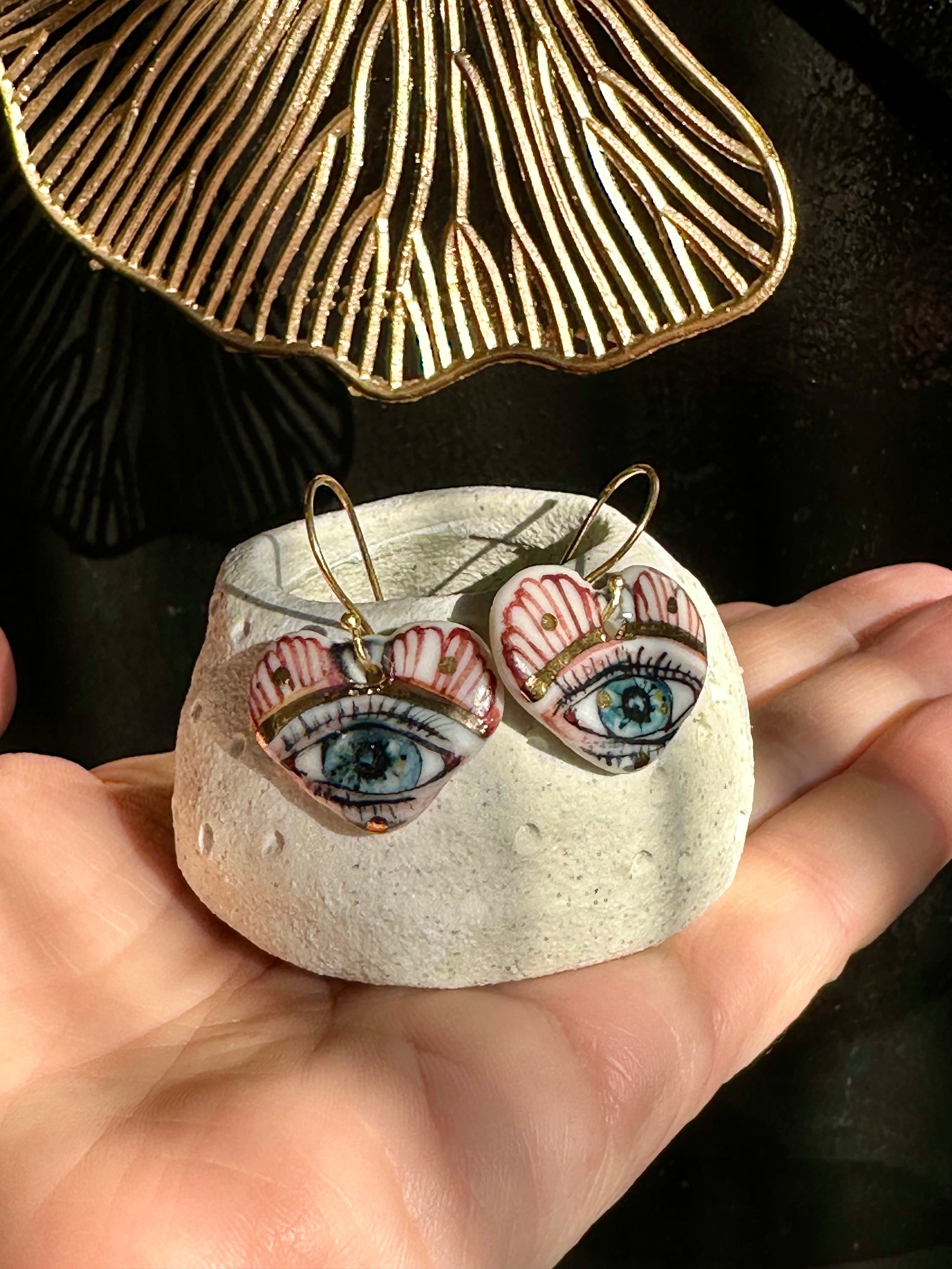 ‘The Protective Eye’ small Porcelain Earrings With Gold Detail